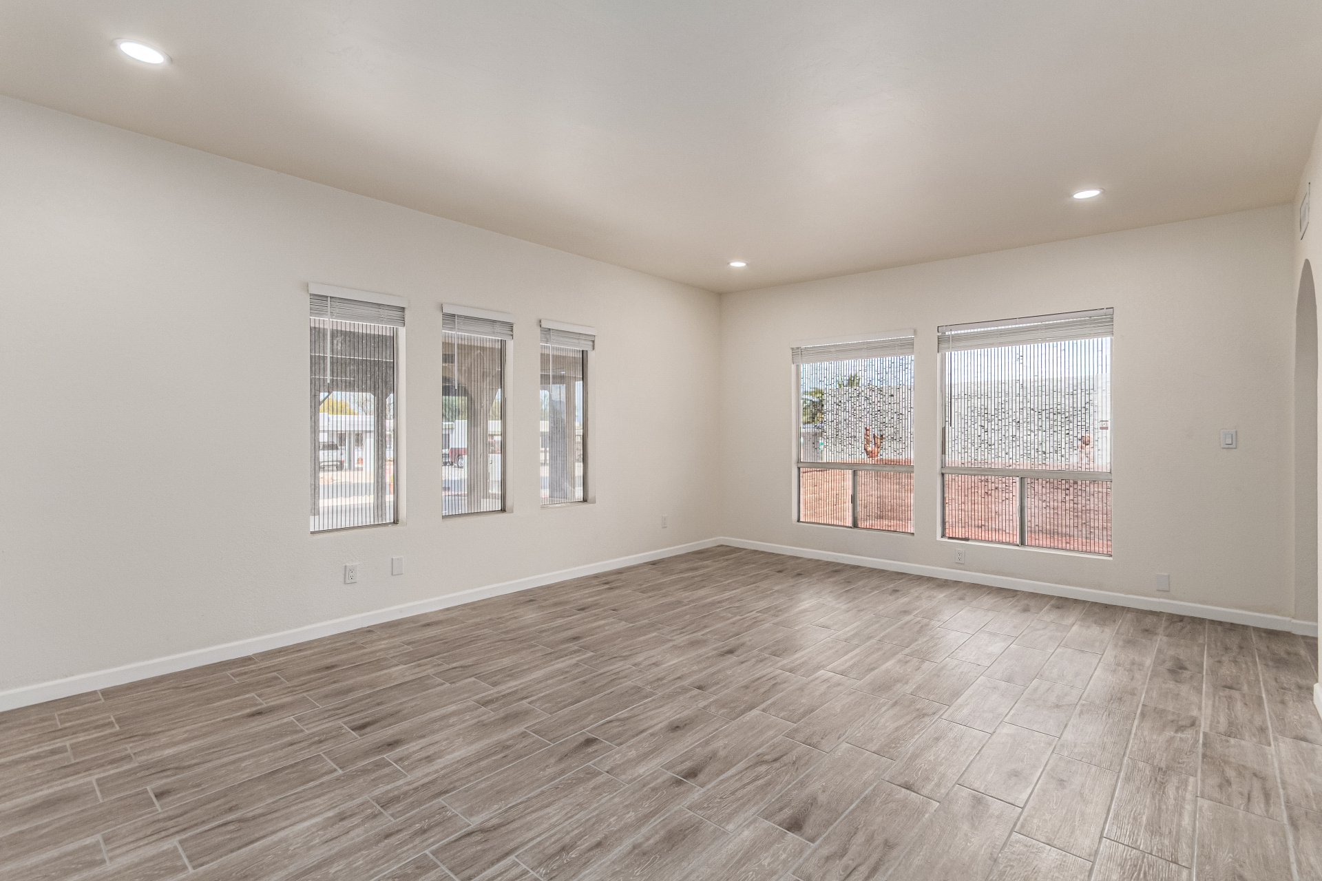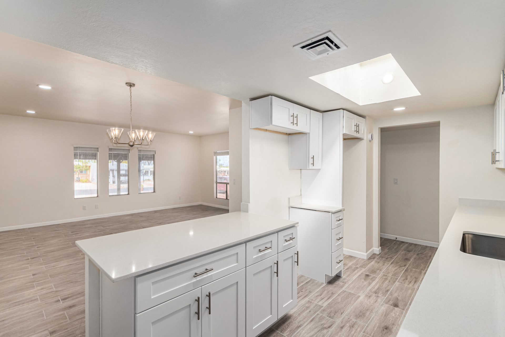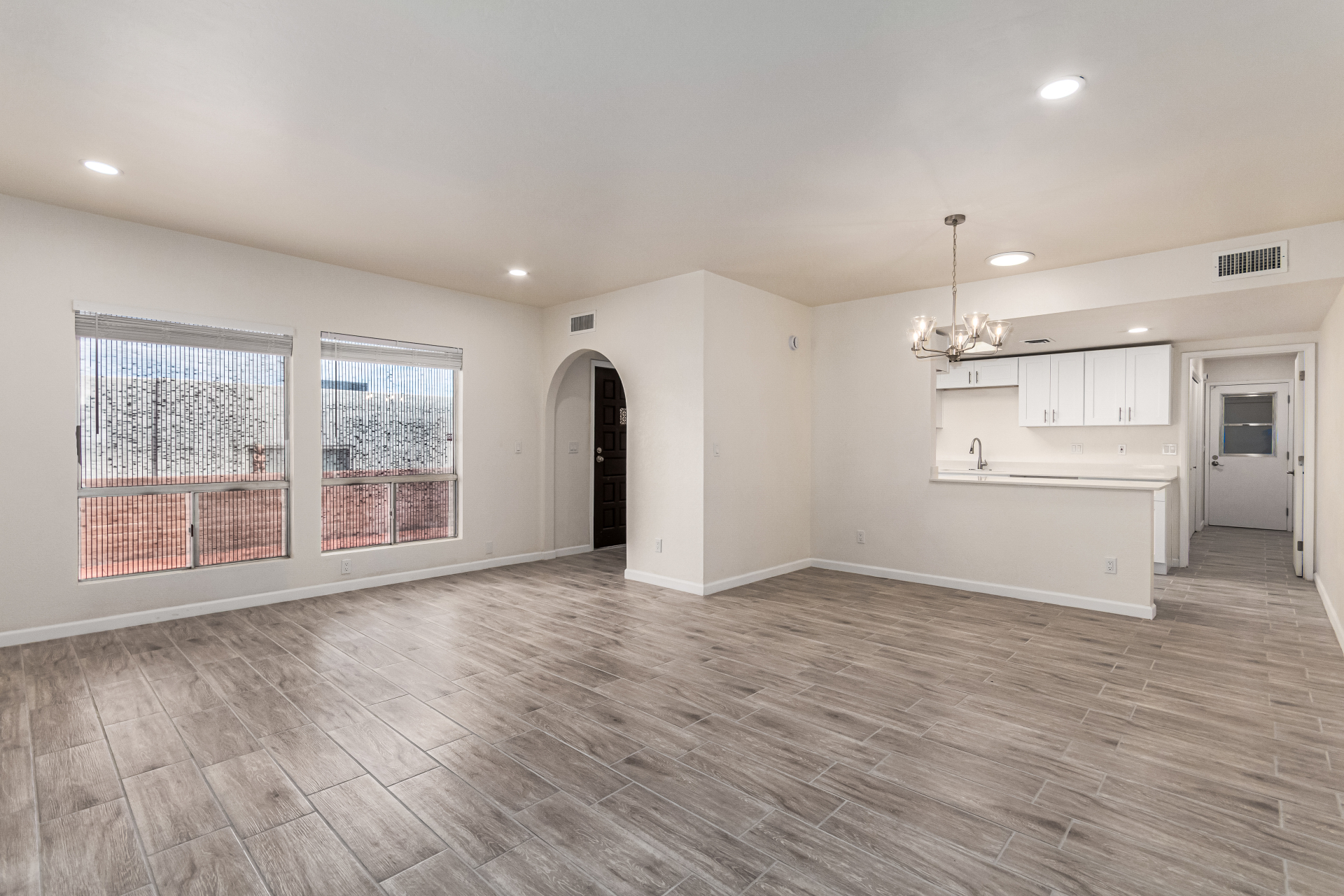 Beautifully updated 2 bed, 2 bath home offering 1,360 sq ft of bright, open-concept living. Functional floor plan with seamless flow, featuring NEW tile flooring, fresh interior paint, new lighting, and ceiling fans throughout. Spacious kitchen with NEW cabinetry and quartz countertops. Comfortable bedrooms with generous closets, including a primary suite with private bath. Bathrooms updated with tile. Includes laundry closet and mud room for added convenience. Enjoy a private, fully fenced backyard with low-maintenance desert landscaping and covered patio--perfect for relaxing or entertaining. Great curb appeal with fresh exterior paint, resealed roof, serviced HVAC, and well-maintained systems. Agent/Owner.