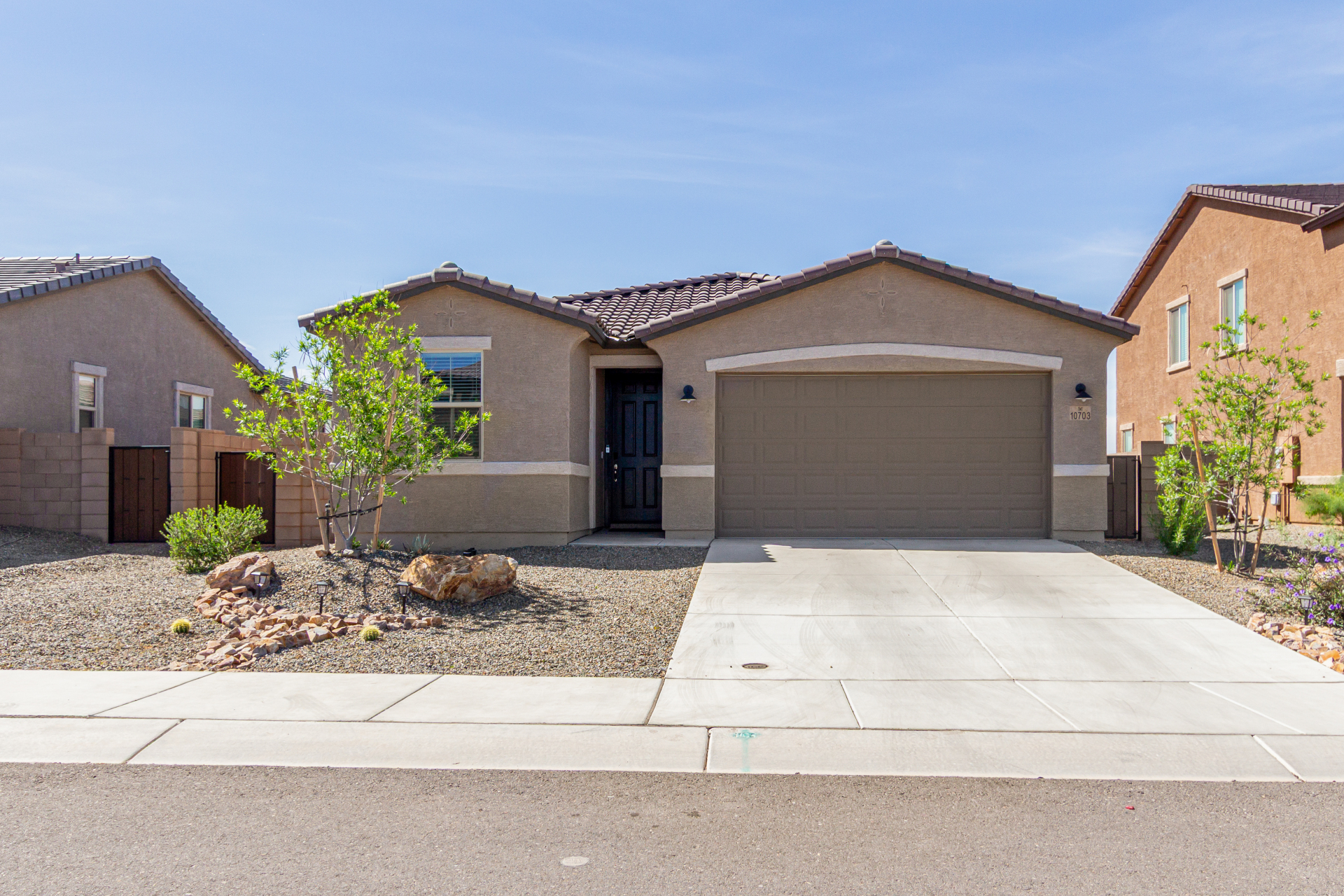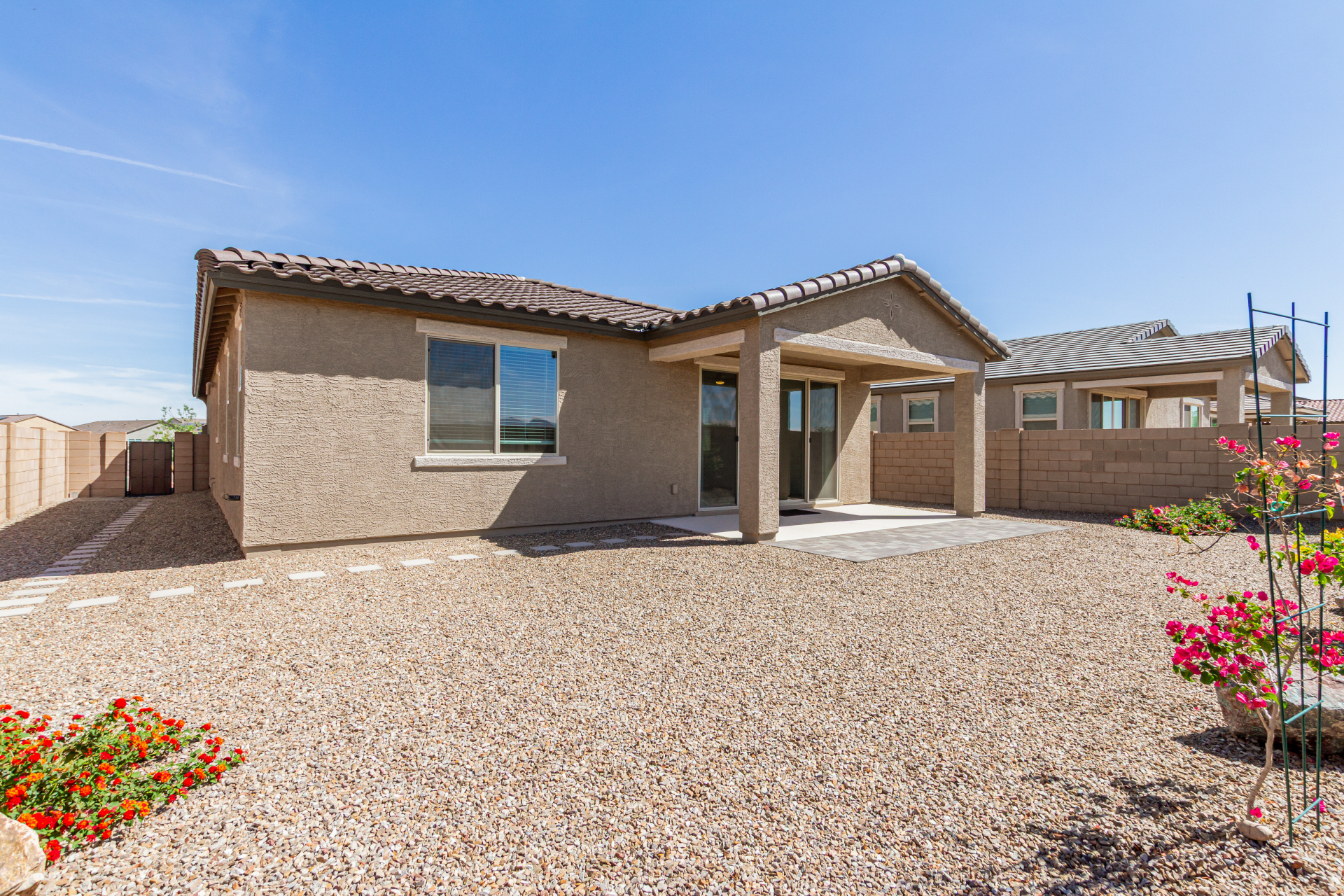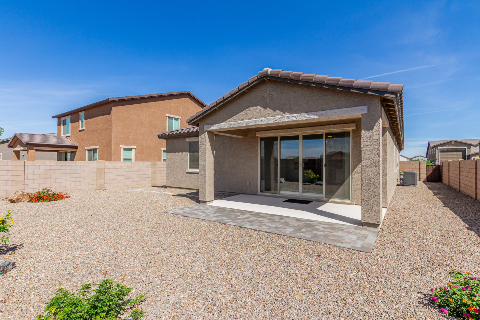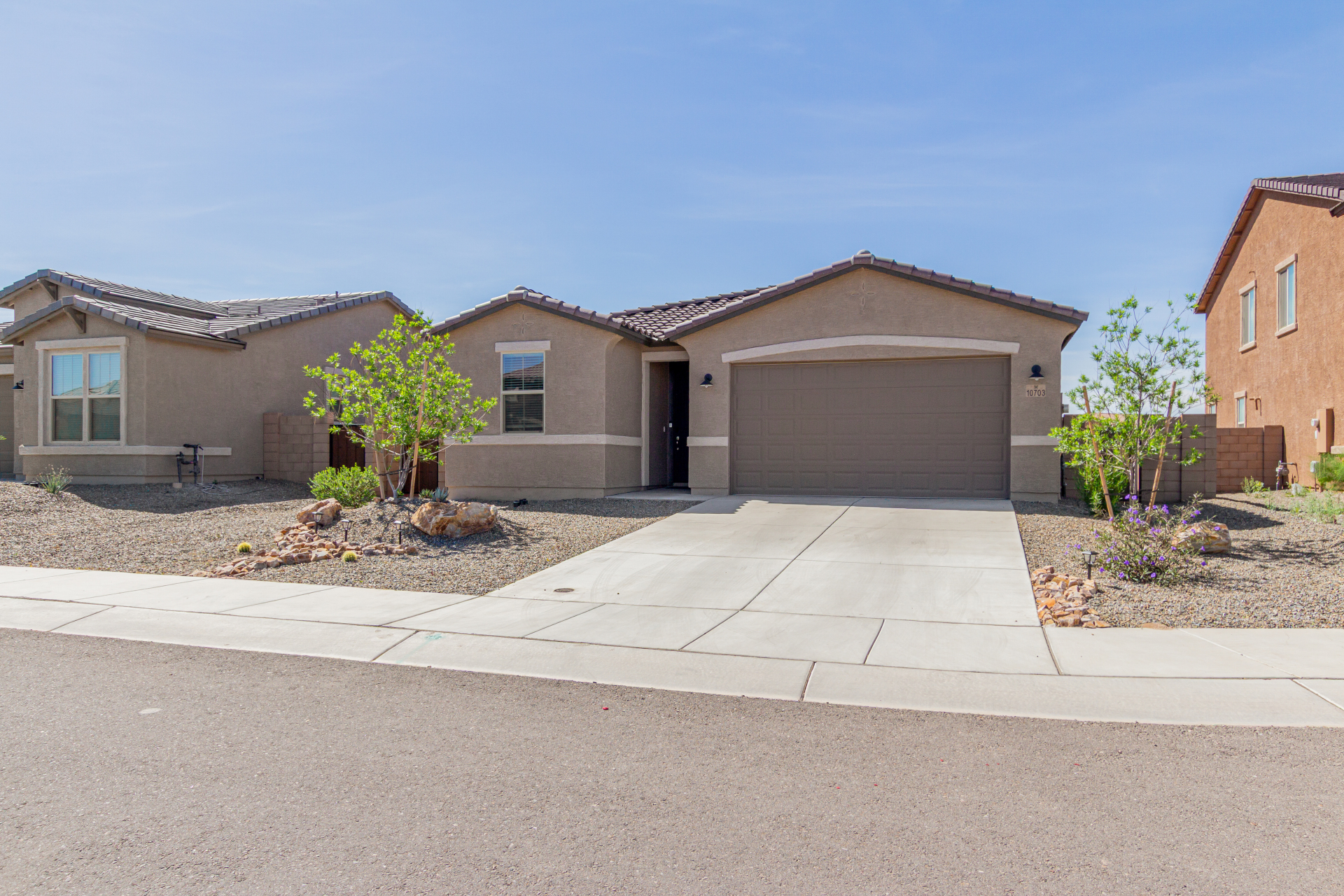 Looking for a new home? This charming single-level residence in Gladden Farms is the one! Providing 3 beds, 2 baths, a 2-car garage, and a low-care landscape. The inviting interior showcases abundant natural light, a neutral palette, wood-look tile flooring in common areas, and soft carpet in bedrooms. Designed for everyday living & entertaining, the desirable great room is paired with multi-sliding doors to the back! The impressive kitchen boasts stainless steel appliances, quartz counters, white shaker cabinetry, recessed lighting, a pantry, and a prep island w/breakfast bar. The primary bedroom has a dual quartz vanity and a walk-in closet. The perfectly sized backyard with a covered patio & extended pavers, is the ideal spot to relax or enjoy BBQ. Plus mountain views! Ready to move in!