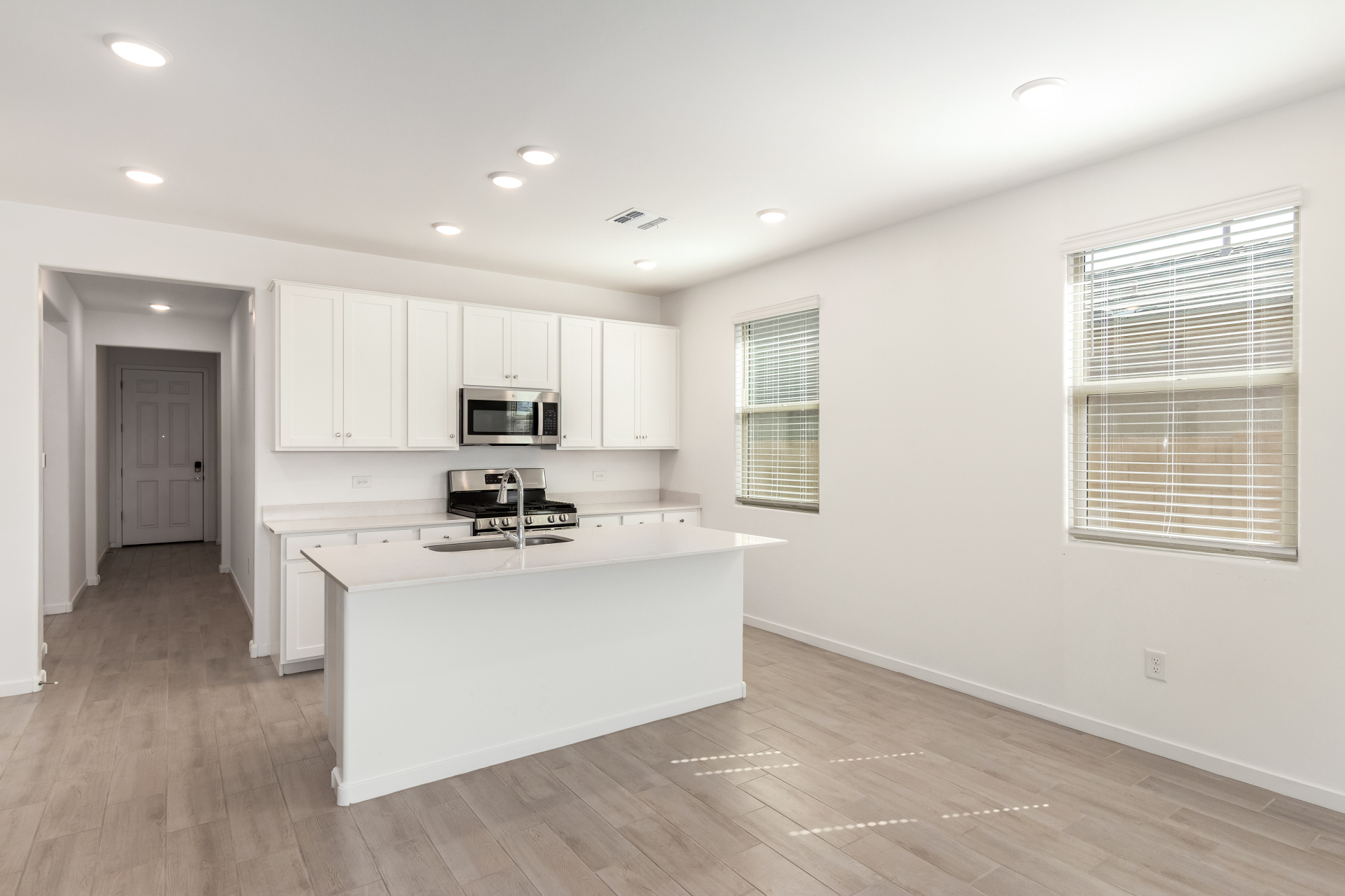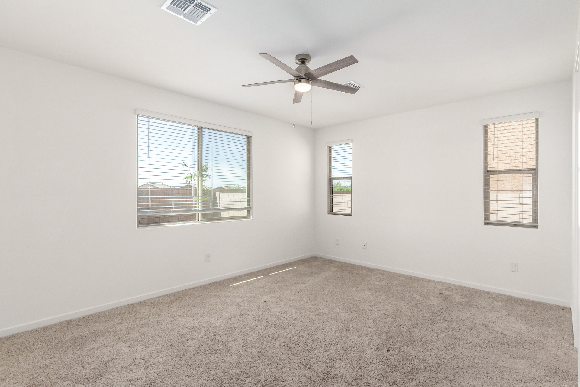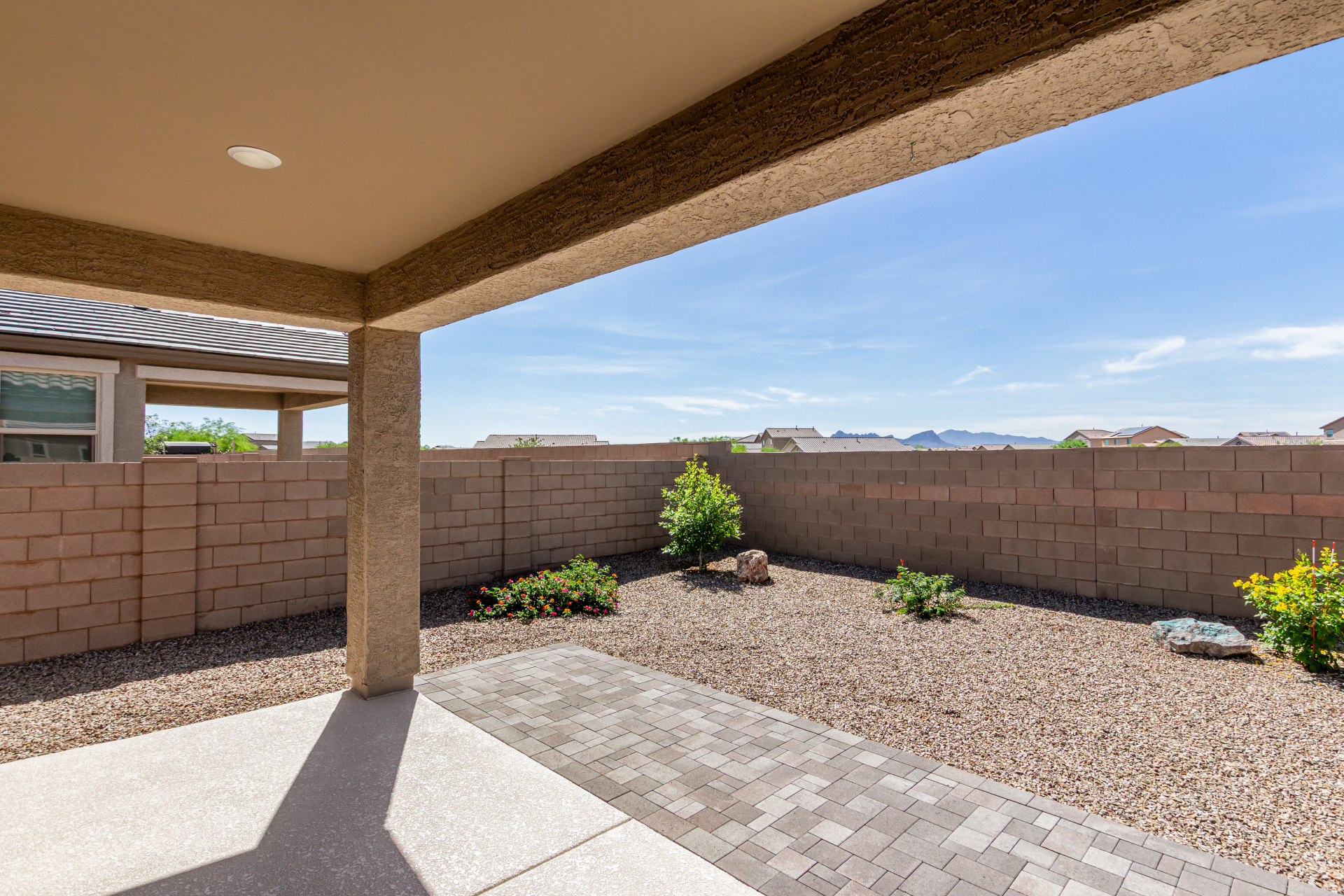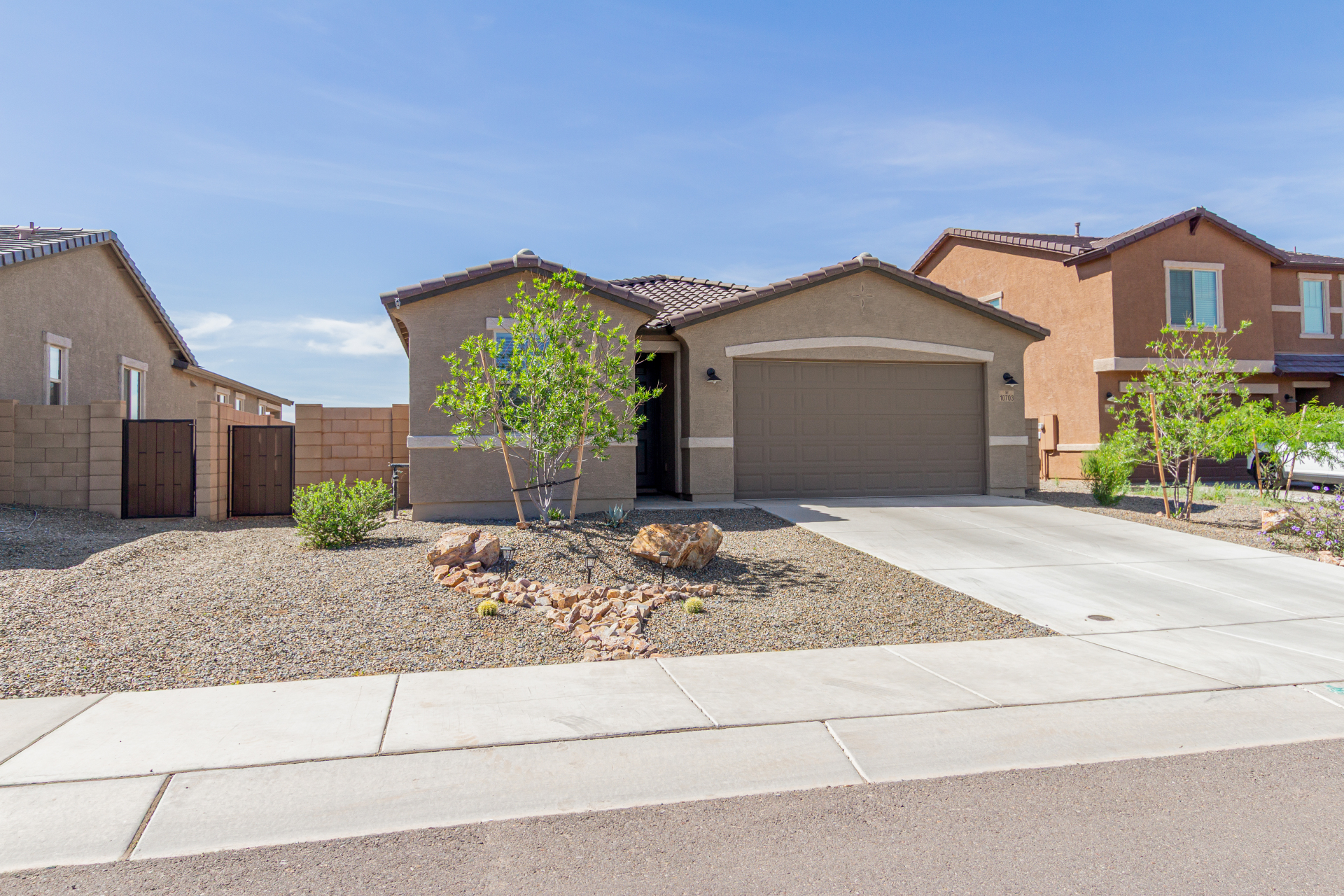 Looking for a new home? This charming single-level residence in Gladden Farms is the one! Providing 3 beds, 2 baths, a 2-car garage, and a low-care landscape. The inviting interior showcases abundant natural light, a neutral palette, wood-look tile flooring in common areas, and soft carpet in bedrooms. Designed for everyday living & entertaining, the desirable great room is paired with multi-sliding doors to the back! The impressive kitchen boasts stainless steel appliances, quartz counters, white shaker cabinetry, recessed lighting, a pantry, and a prep island w/breakfast bar. The primary bedroom has a dual quartz vanity and a walk-in closet. The perfectly sized backyard with a covered patio & extended pavers, is the ideal spot to relax or enjoy BBQ. Plus mountain views! Ready to move in!
