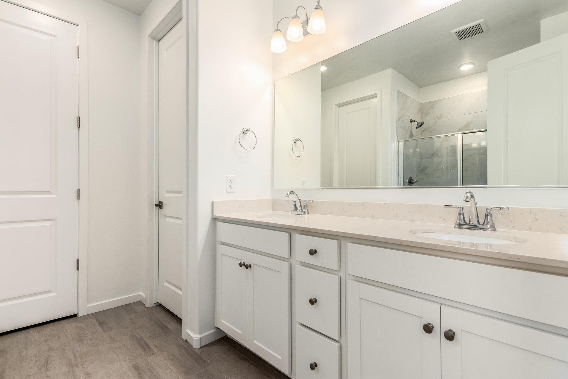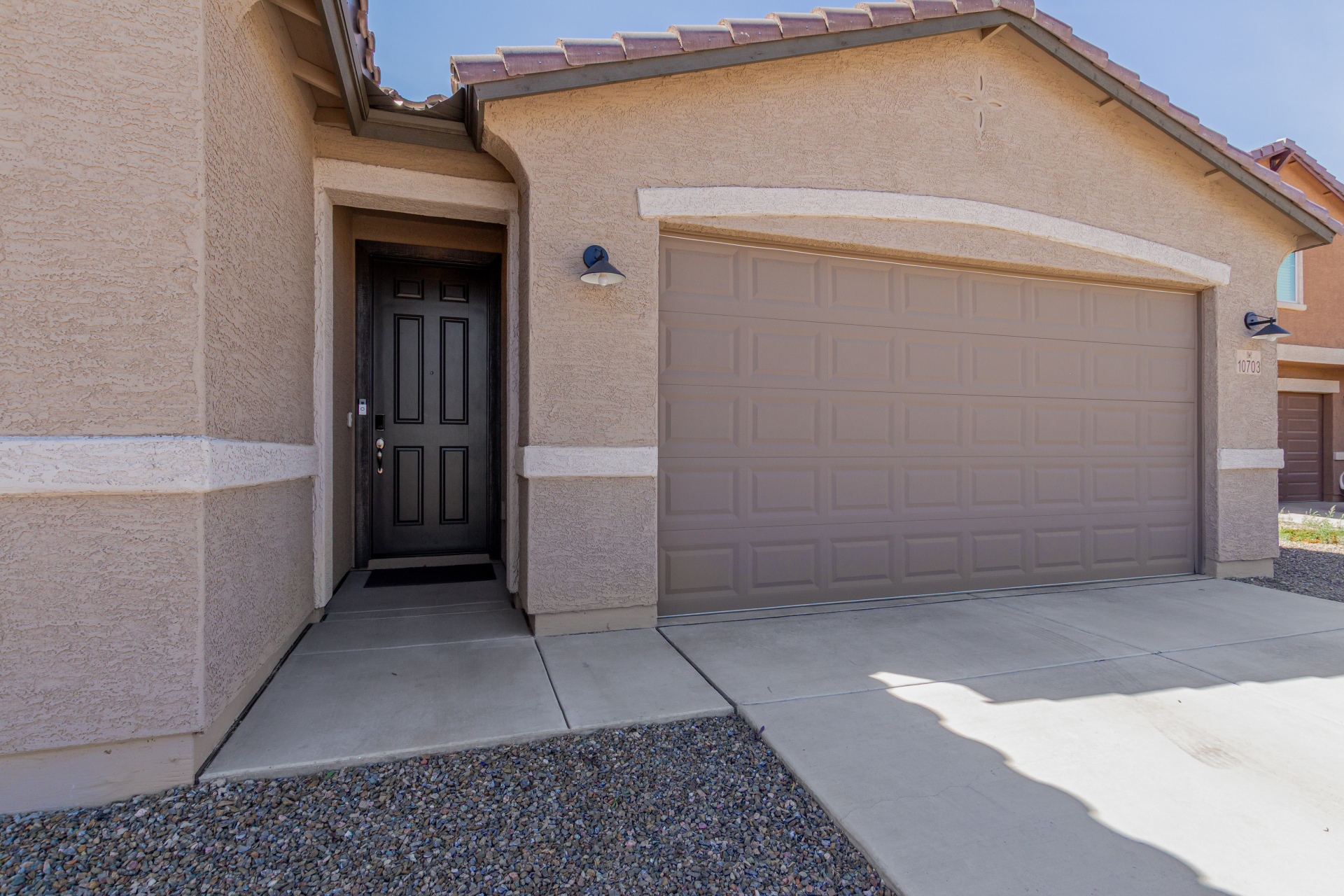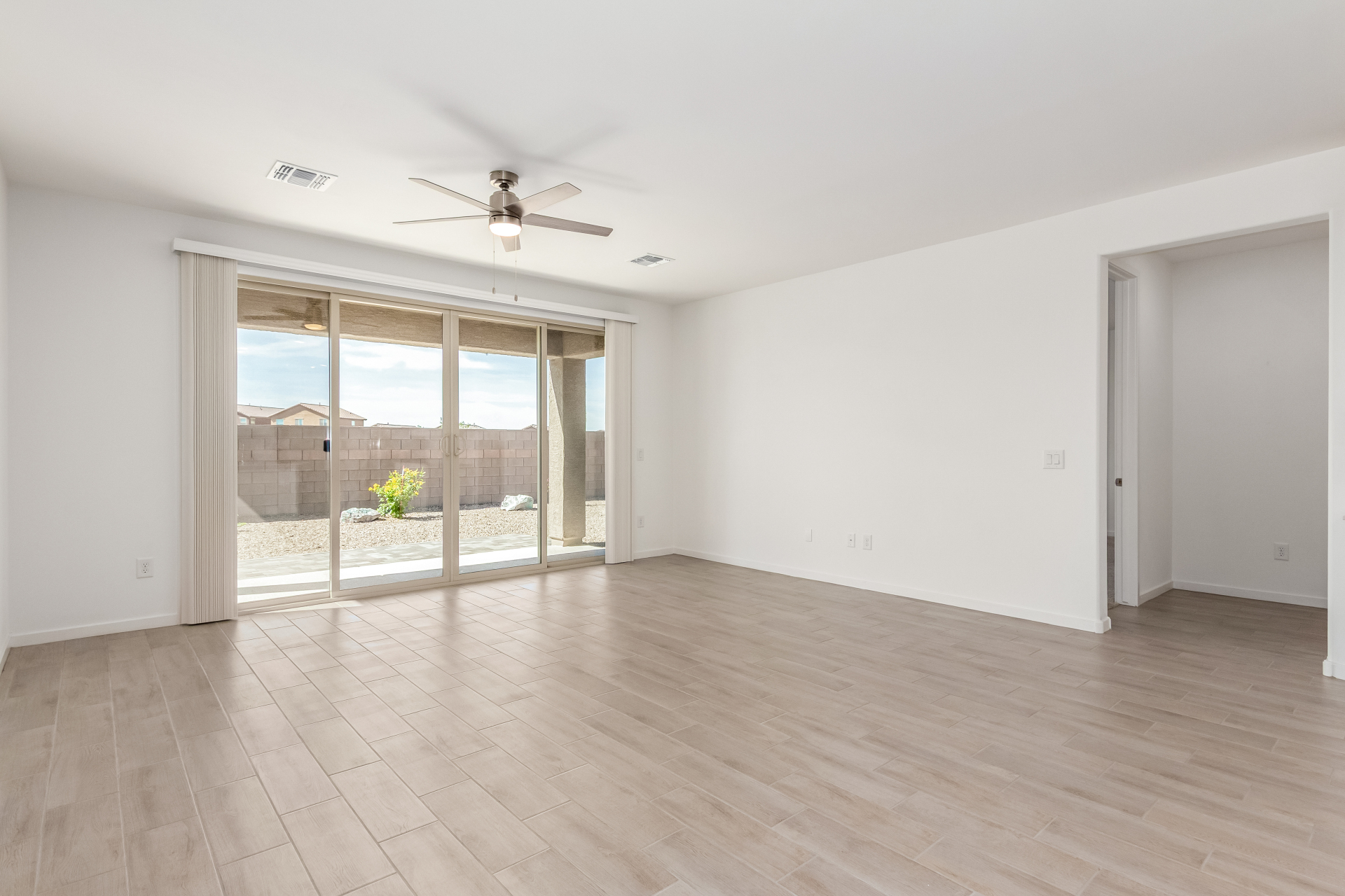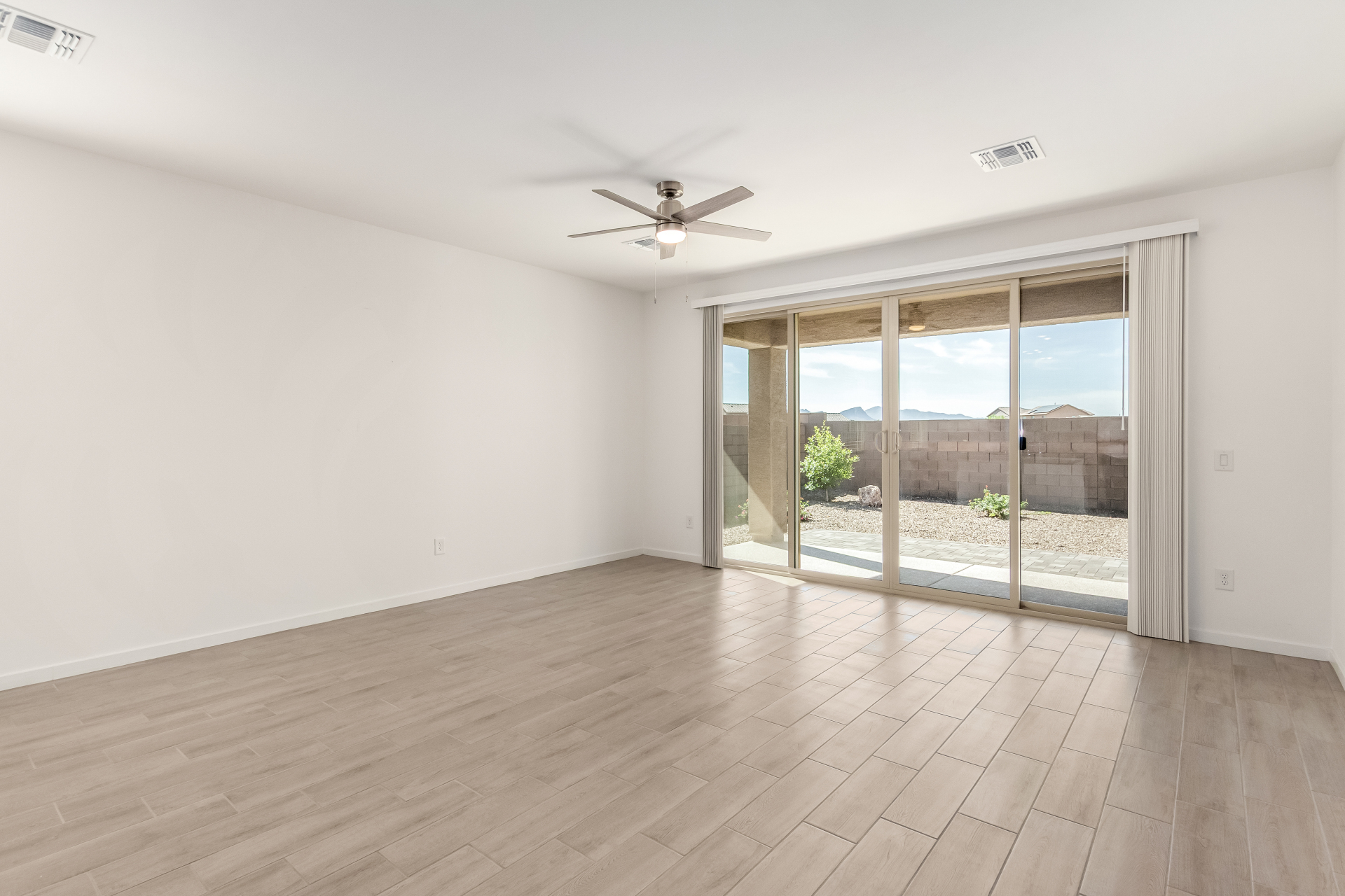 Looking for a new home? This charming single-level residence in Gladden Farms is the one! Providing 3 beds, 2 baths, a 2-car garage, and a low-care landscape. The inviting interior showcases abundant natural light, a neutral palette, wood-look tile flooring in common areas, and soft carpet in bedrooms. Designed for everyday living & entertaining, the desirable great room is paired with multi-sliding doors to the back! The impressive kitchen boasts stainless steel appliances, quartz counters, white shaker cabinetry, recessed lighting, a pantry, and a prep island w/breakfast bar. The primary bedroom has a dual quartz vanity and a walk-in closet. The perfectly sized backyard with a covered patio & extended pavers, is the ideal spot to relax or enjoy BBQ. Plus mountain views! Ready to move in!