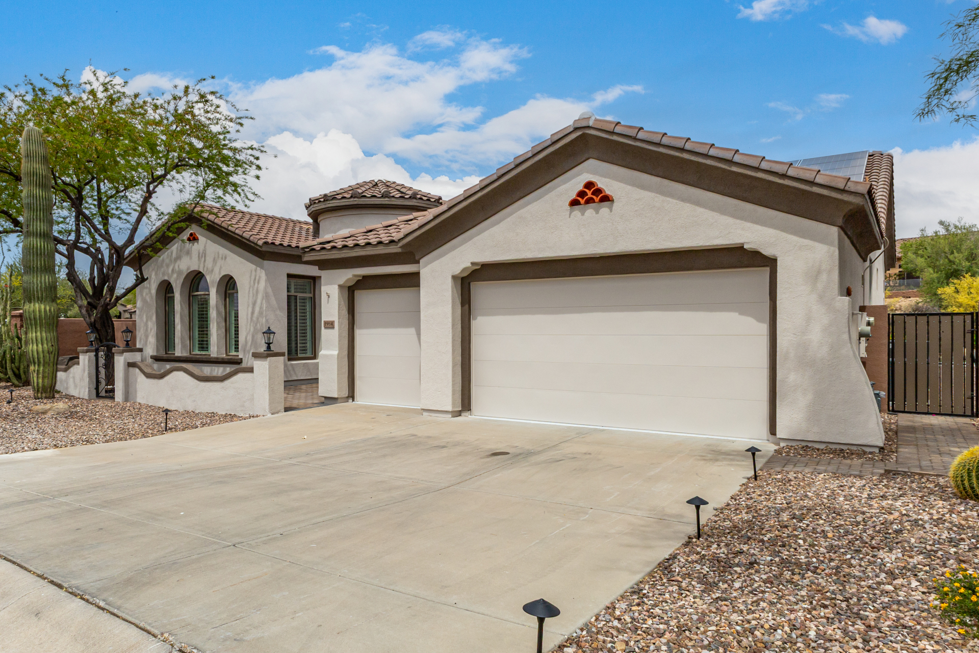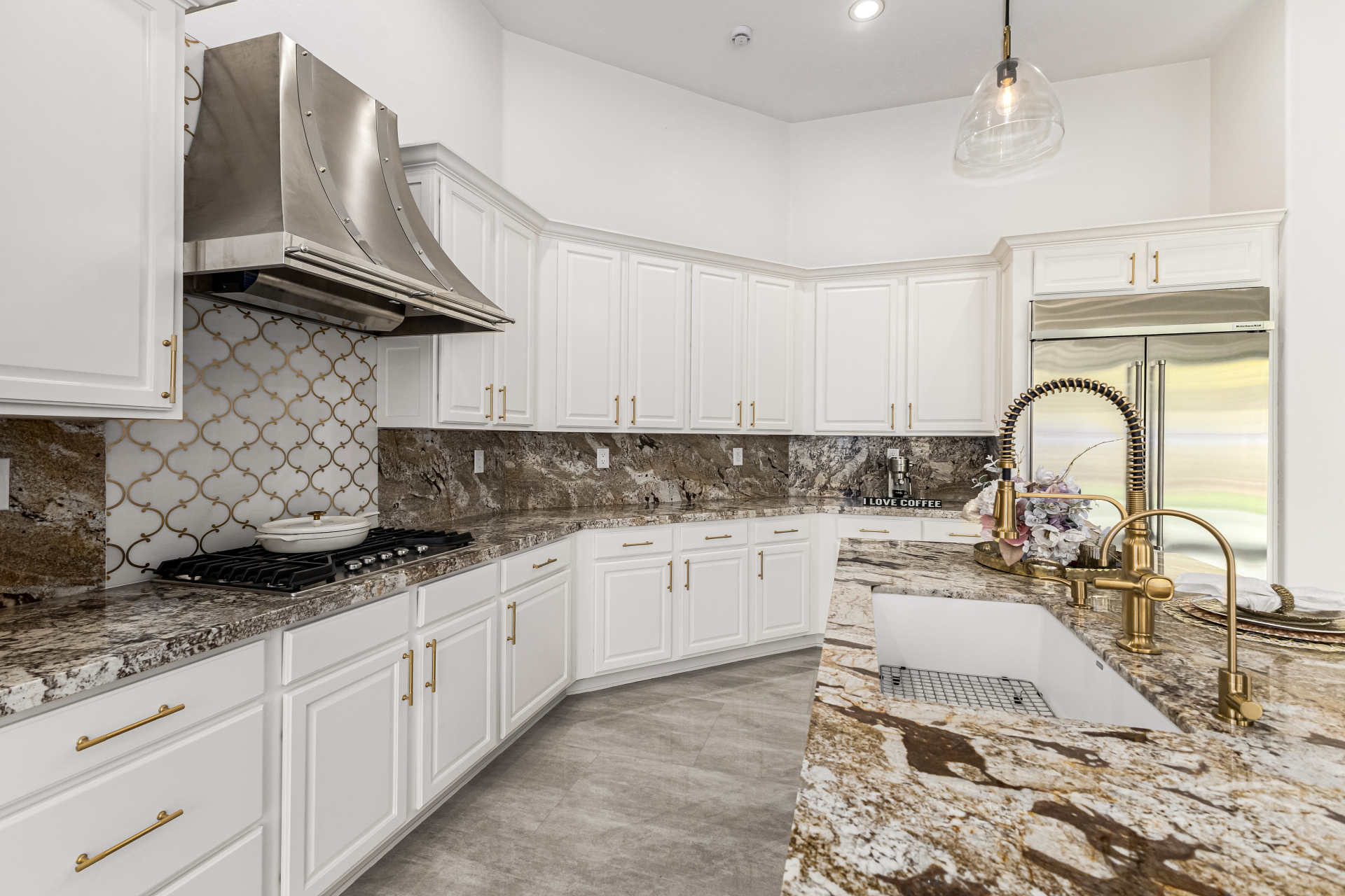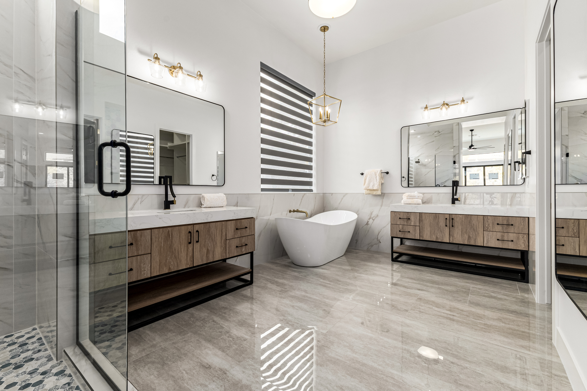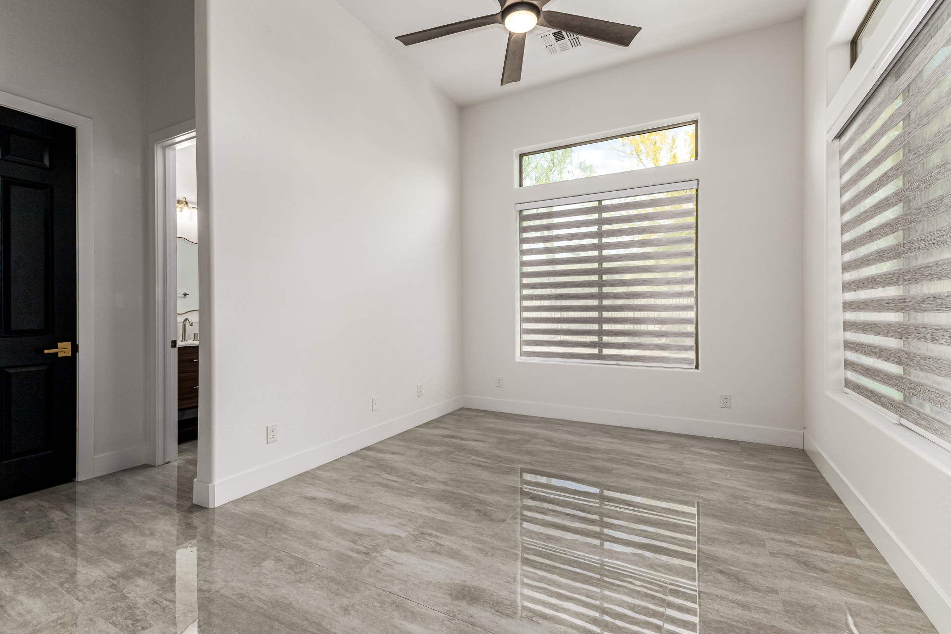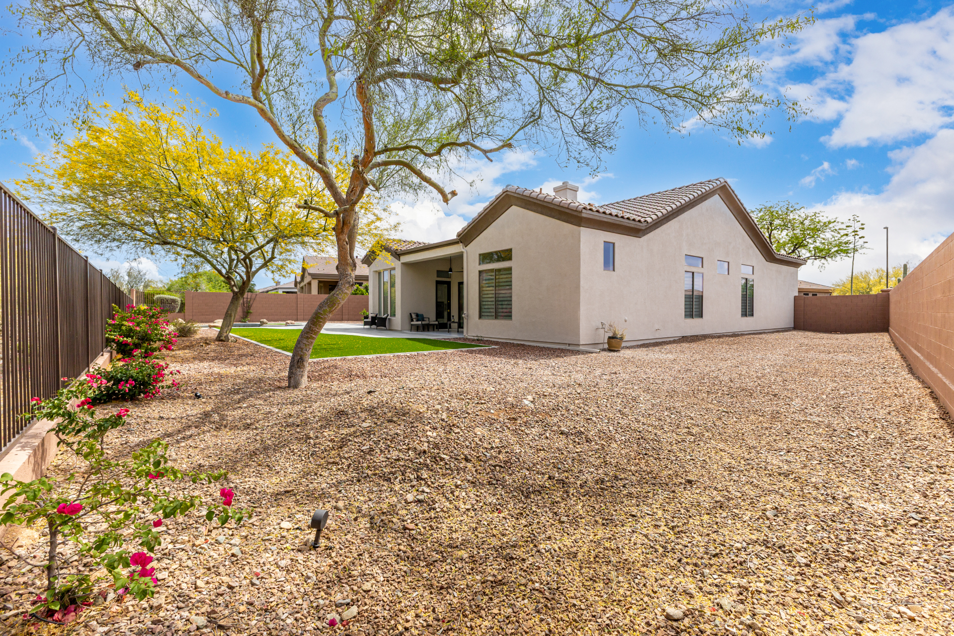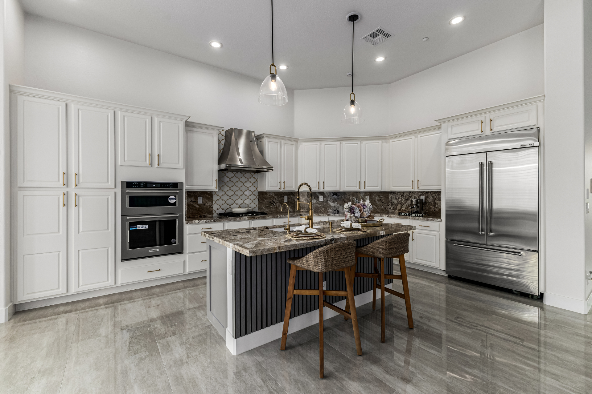 Completely renovated with exceptional, high-end upgrades, this stunning home offers a sleek contemporary design with an open, split floor-plan ideal for modern living. Porcelain tile flooring flows throughout, complemented by a striking stone porcelain accent wall and two elegant electric fireplaces. The chef's kitchen features granite countertops, while the spa-inspired bathrooms showcase marble vanities with a clean, modern aesthetic. A well-appointed laundry room includes a sink and stacked washer and dryer. The garage is upgraded with an epoxy floor and powerful LED lighting. Step outside to a refreshing natural view and natural stone tile backyard refreshing pool—perfect for enjoying hot summer days in style.