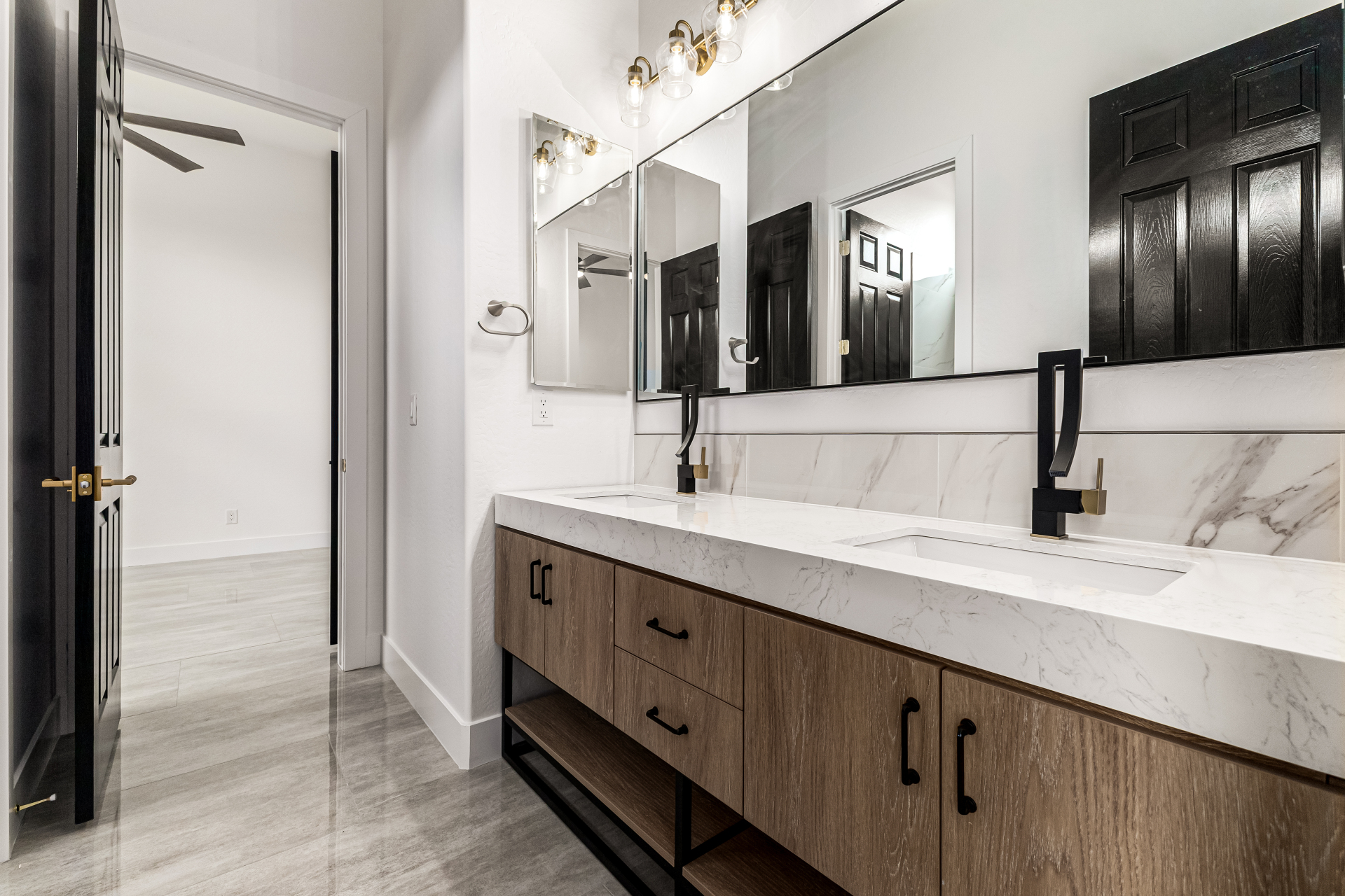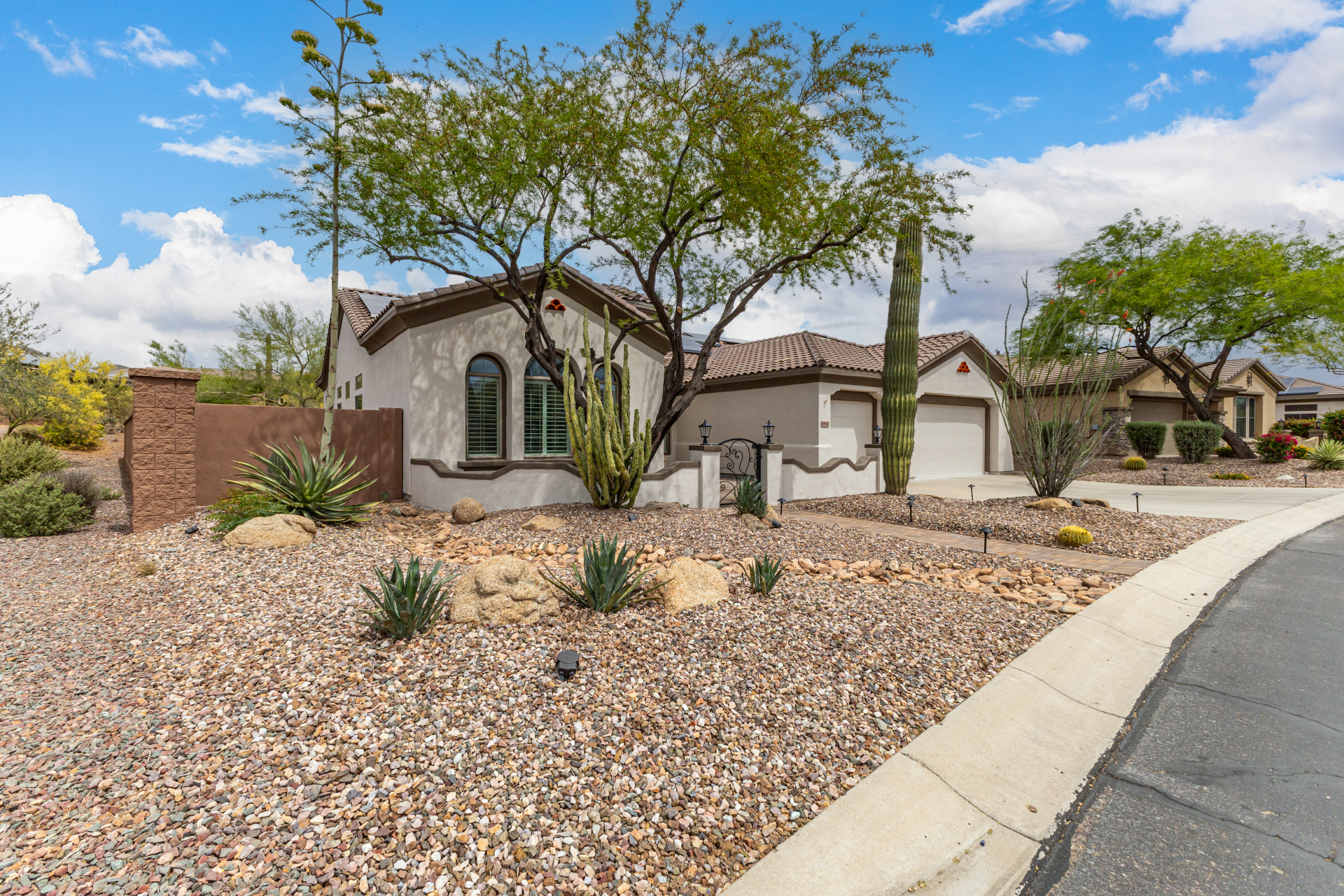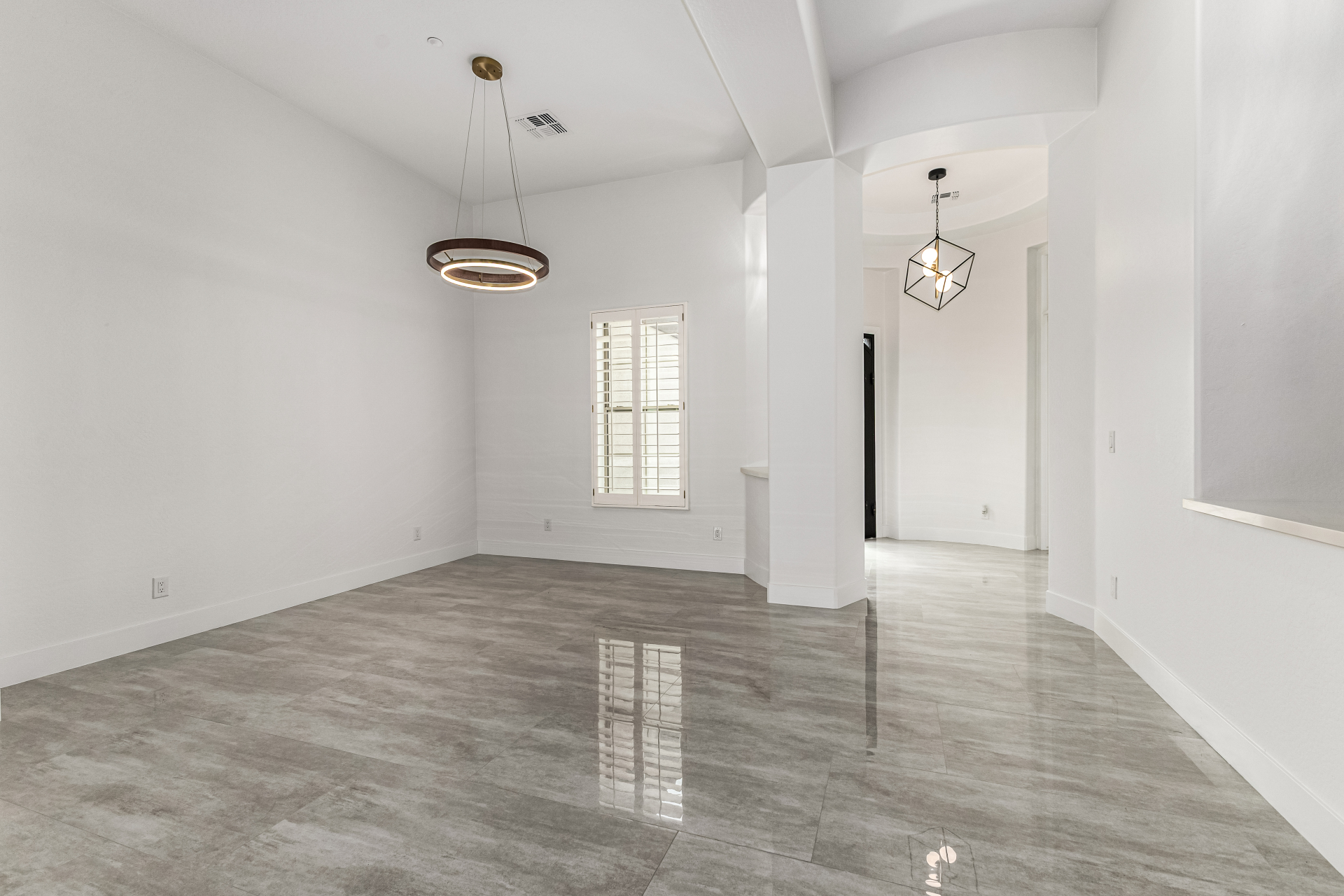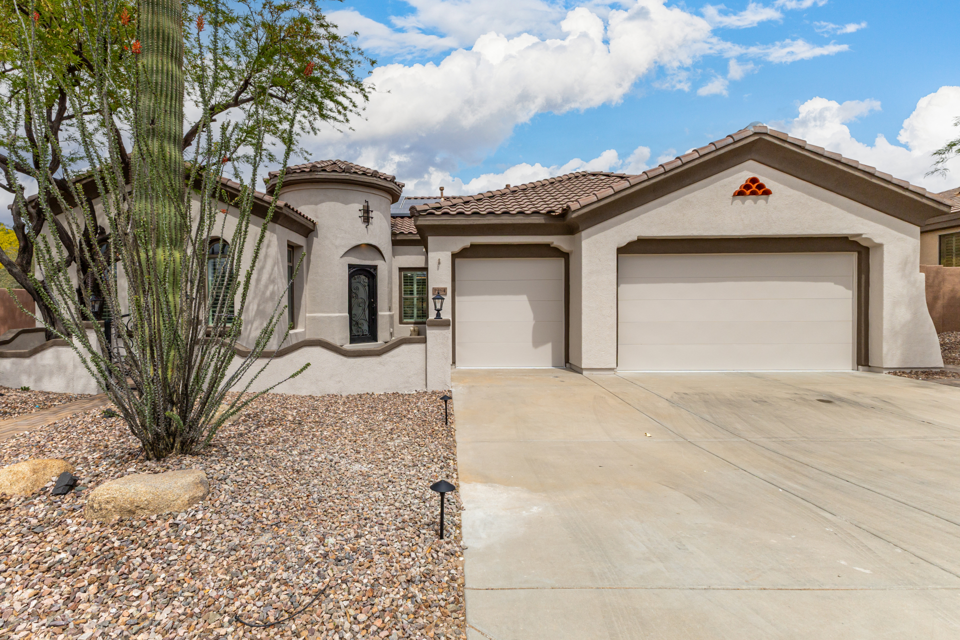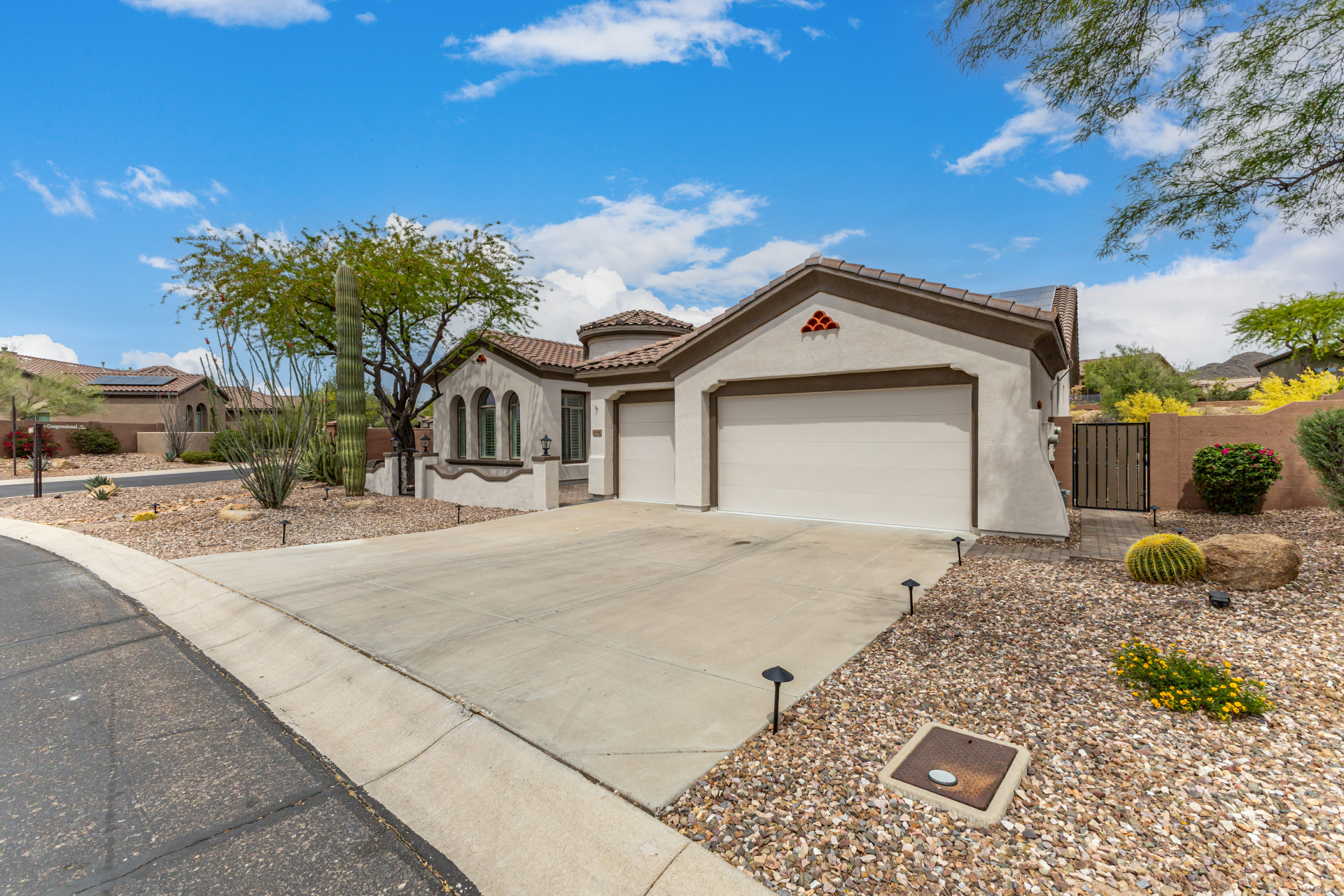 Completely renovated with exceptional, high-end upgrades, this stunning home offers a sleek contemporary design with an open, split floor-plan ideal for modern living. Porcelain tile flooring flows throughout, complemented by a striking stone porcelain accent wall and two elegant electric fireplaces. The chef's kitchen features granite countertops, while the spa-inspired bathrooms showcase marble vanities with a clean, modern aesthetic. A well-appointed laundry room includes a sink and stacked washer and dryer. The garage is upgraded with an epoxy floor and powerful LED lighting. Step outside to a refreshing natural view and natural stone tile backyard refreshing pool—perfect for enjoying hot summer days in style.