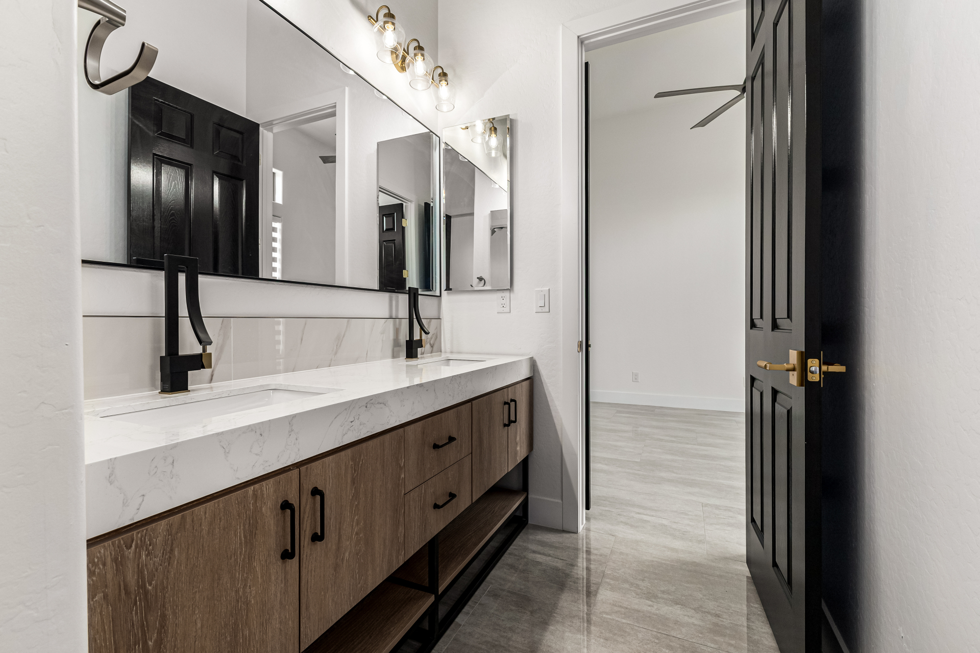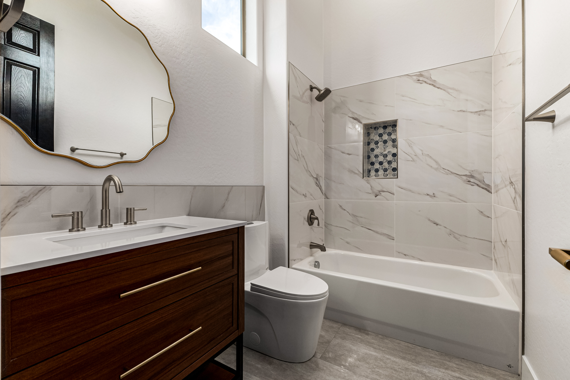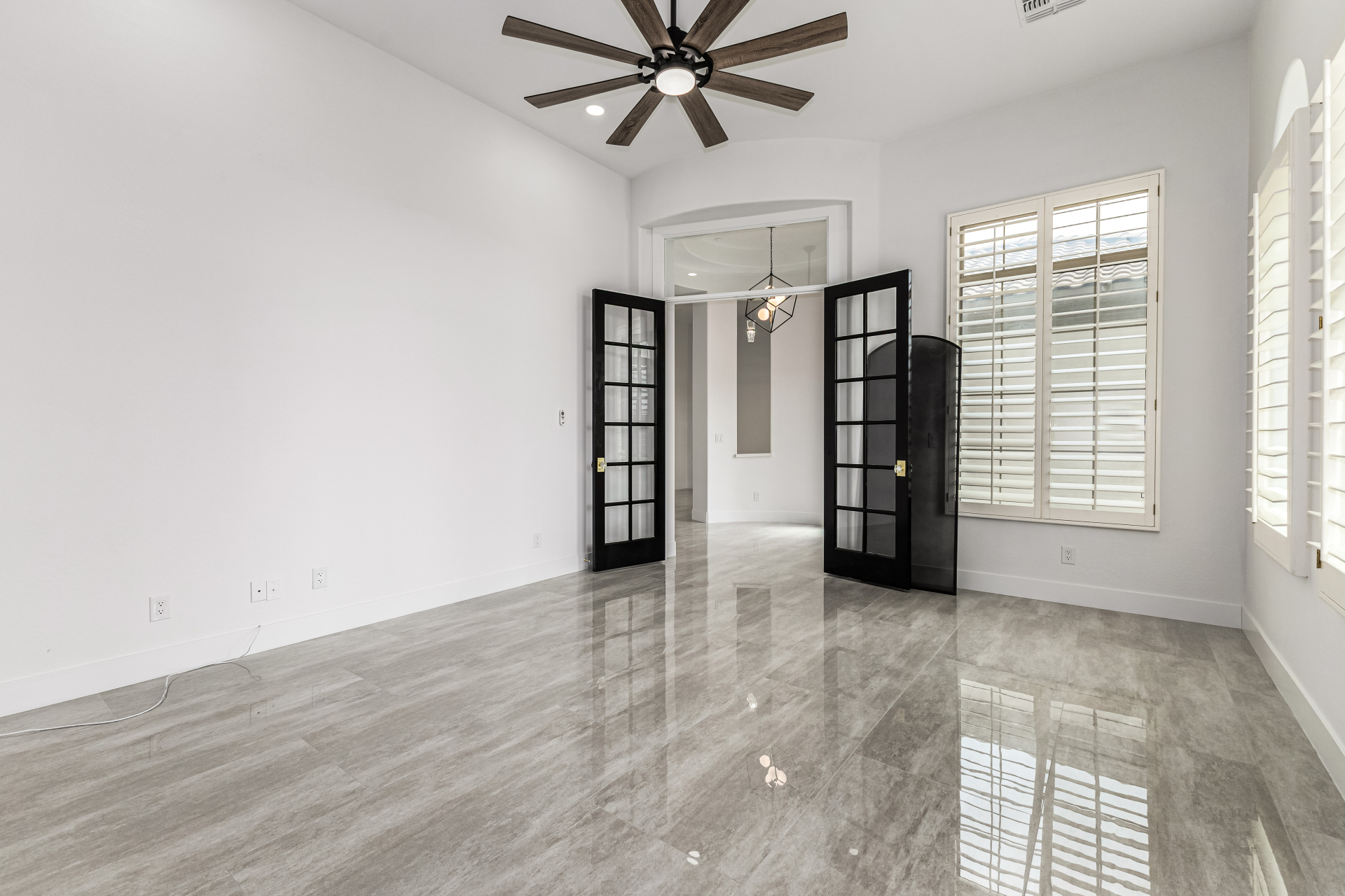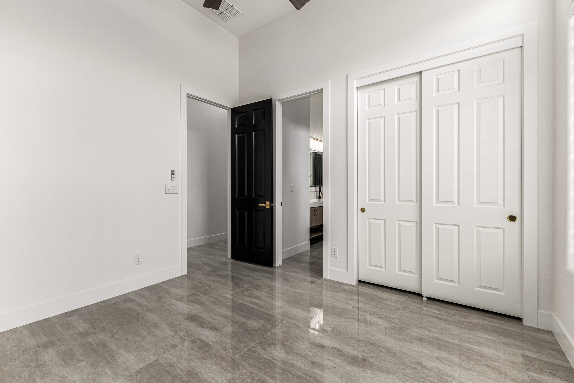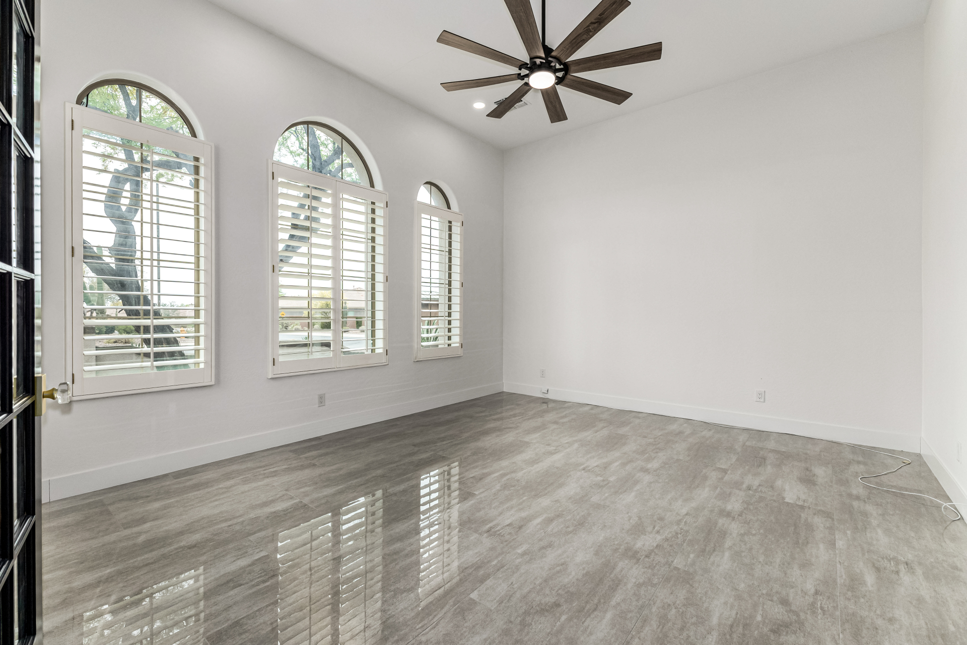 Completely renovated with exceptional, high-end upgrades, this stunning home offers a sleek contemporary design with an open, split floor-plan ideal for modern living. Porcelain tile flooring flows throughout, complemented by a striking stone porcelain accent wall and two elegant electric fireplaces. The chef's kitchen features granite countertops, while the spa-inspired bathrooms showcase marble vanities with a clean, modern aesthetic. A well-appointed laundry room includes a sink and stacked washer and dryer. The garage is upgraded with an epoxy floor and powerful LED lighting. Step outside to a refreshing natural view and natural stone tile backyard refreshing pool—perfect for enjoying hot summer days in style.