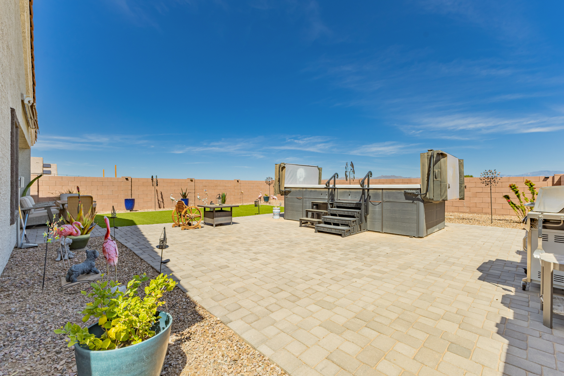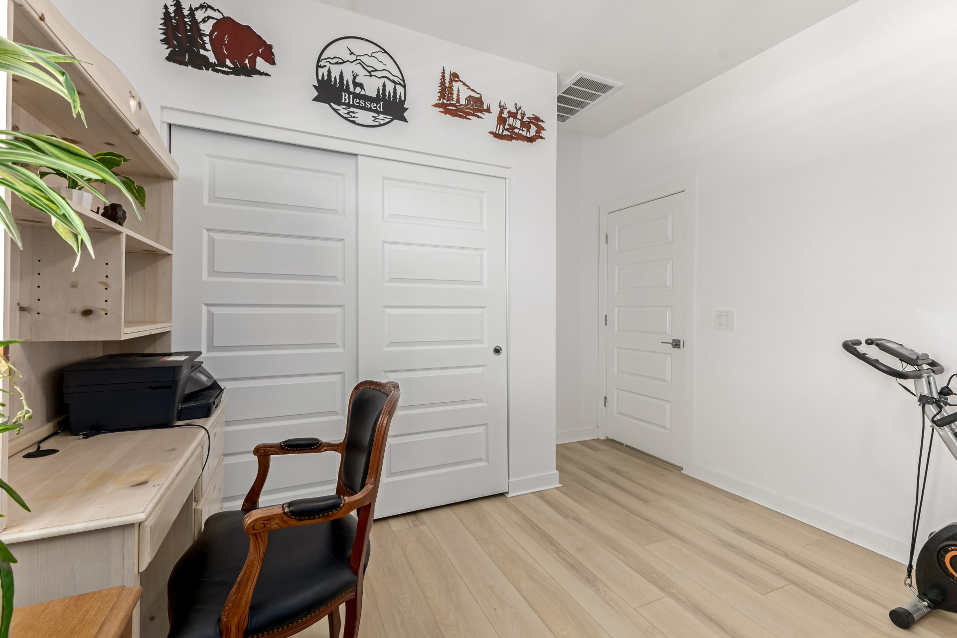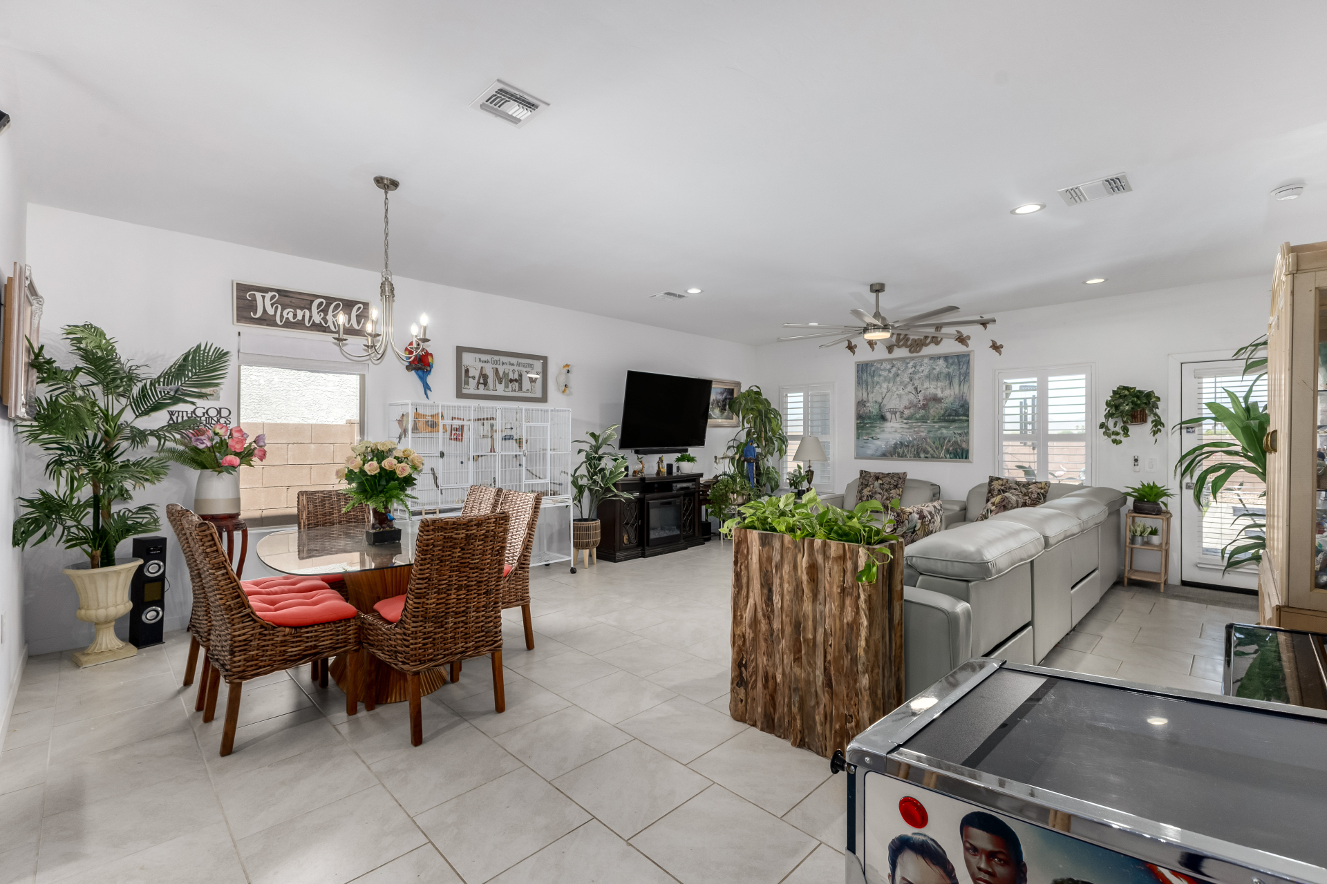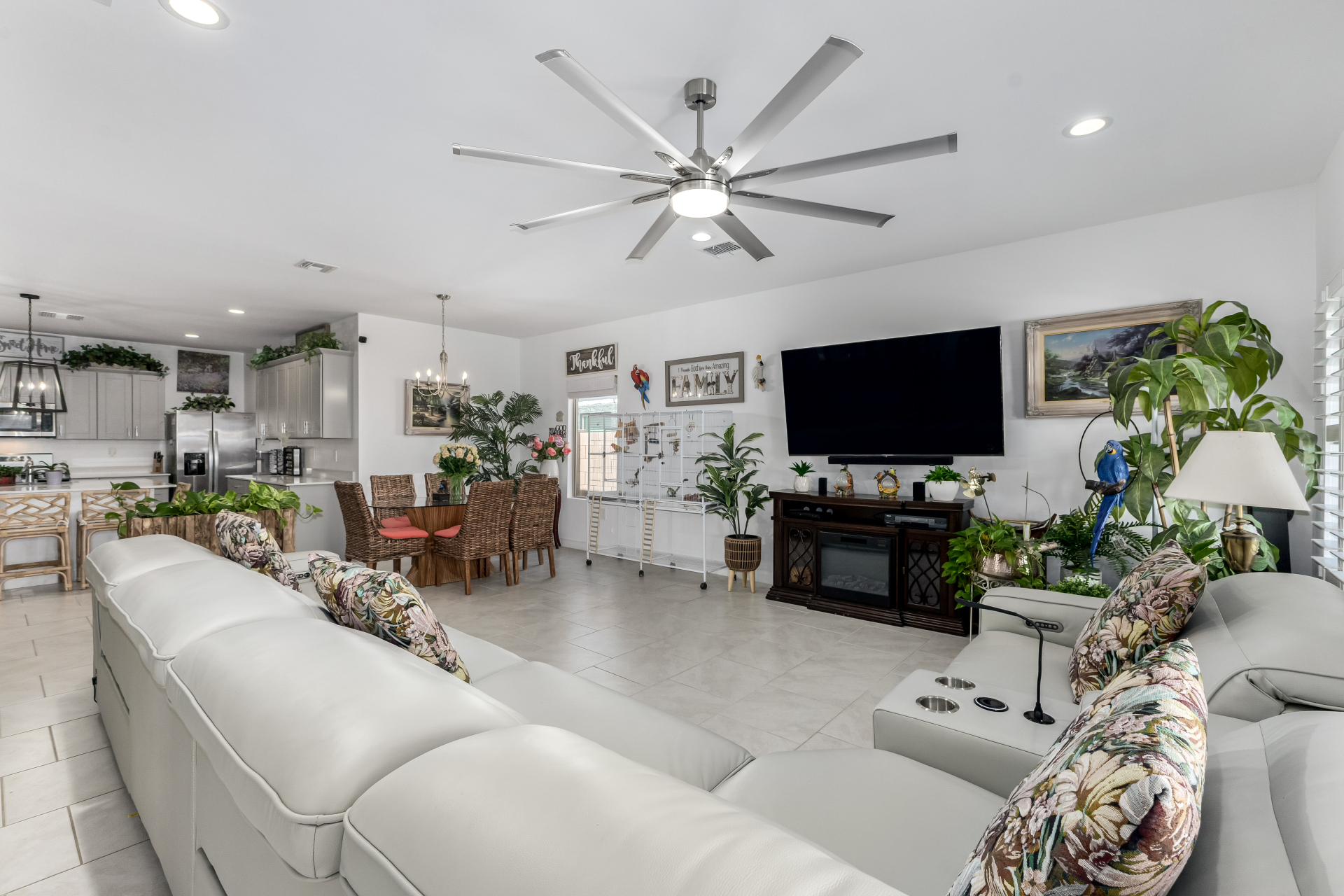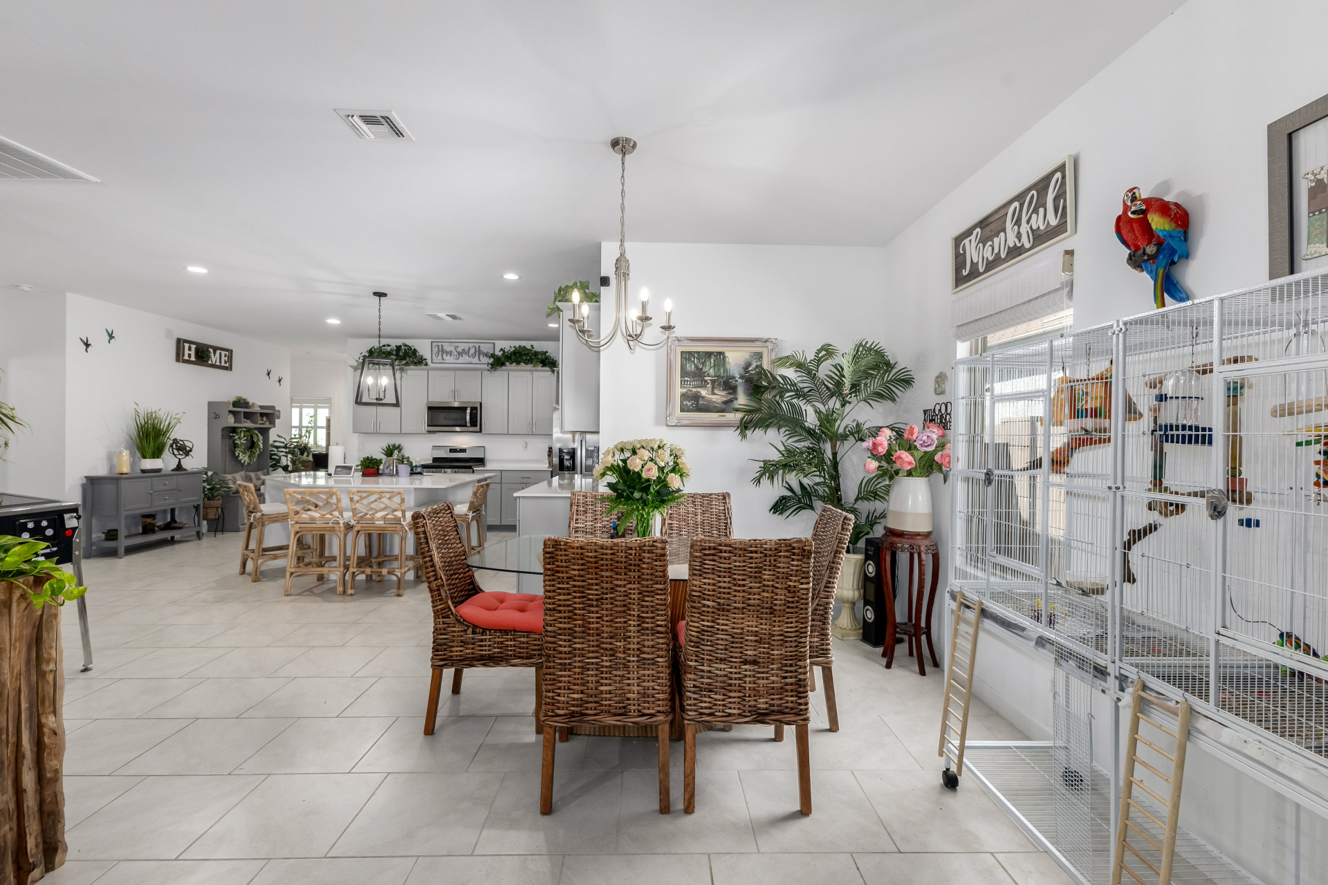 Fall in love w/ the DR Horton Kingston floor plan in the highly sought after Barnett Village, where comfort, style, and breathtaking views come together seamlessly! This beautifully maintained 3 bedroom, 2 bath home w/ a 2 car garage showcases mature landscaping and exceptional curb appeal. Step inside to a light filled interior that exudes sophistication, featuring upgraded plantation shutters, recessed lighting, and a perfect blend of tile and LVP flooring throughout. The open concept creates the perfect space for both everyday living and entertaining. The chef inspired kitchen is truly the heart of the home, complete with stainless steel appliances, quartz countertops, a spacious pantry, shaker cabinetry w/ crown molding and a large island with a breakfast bar, ideal for gatherings and