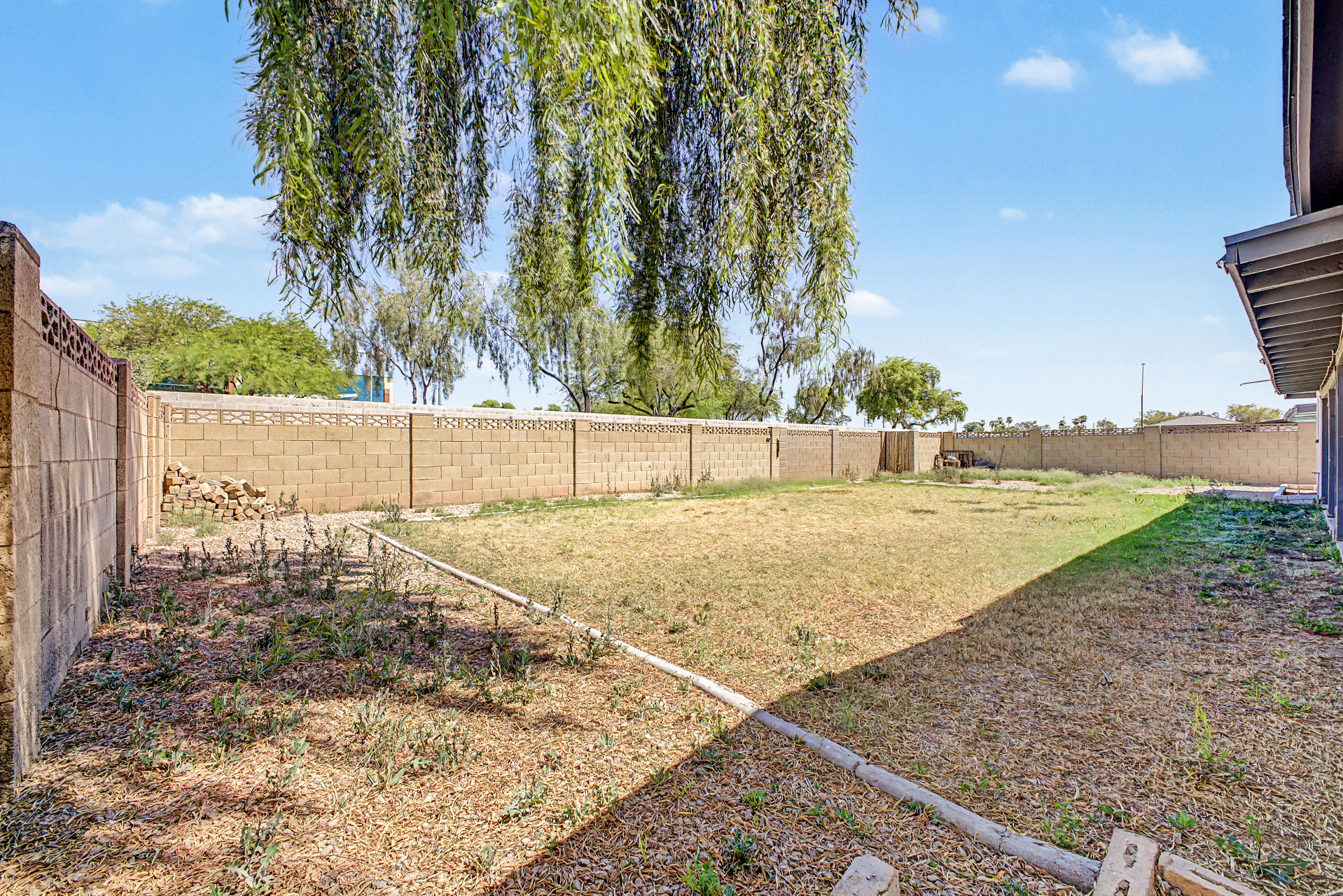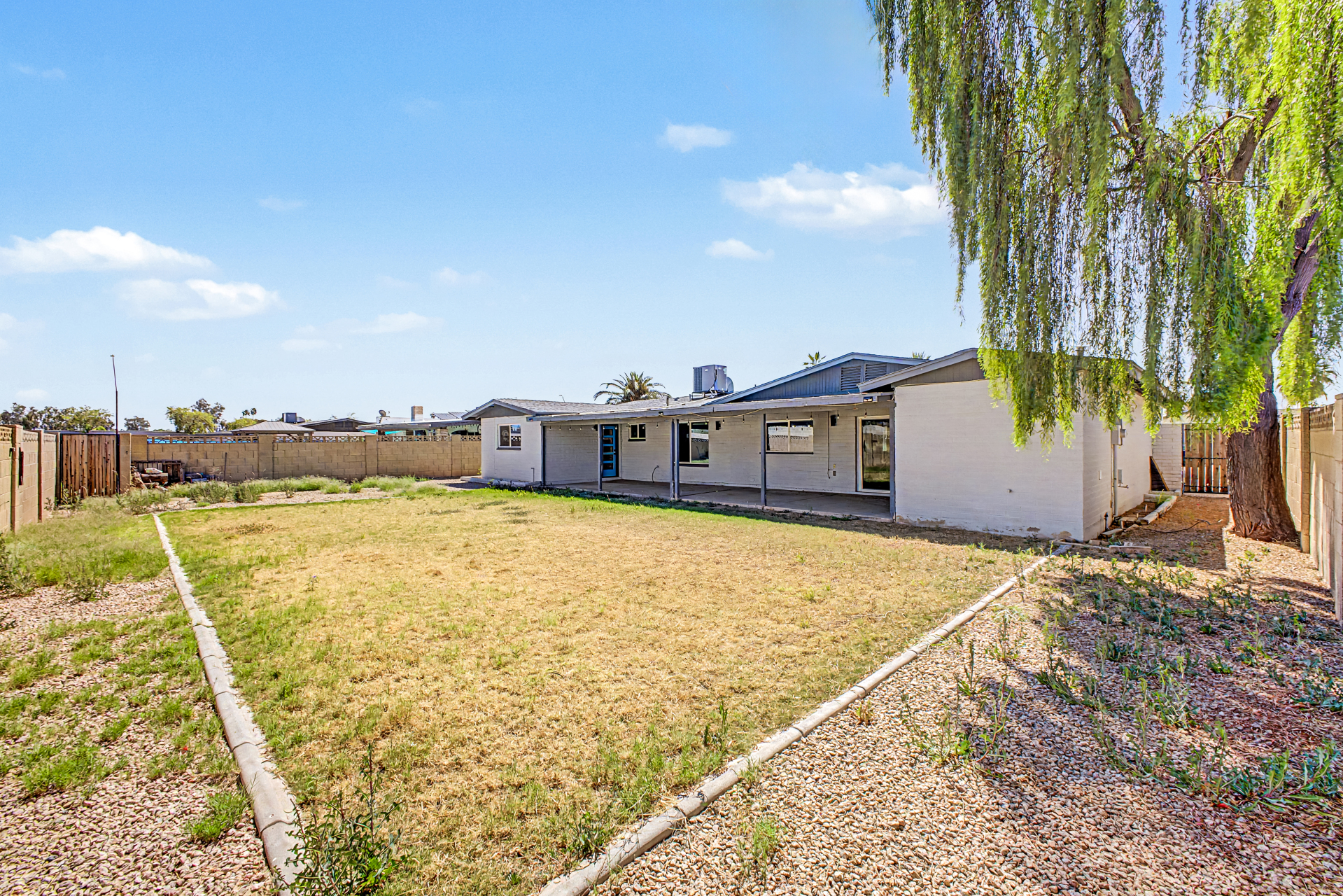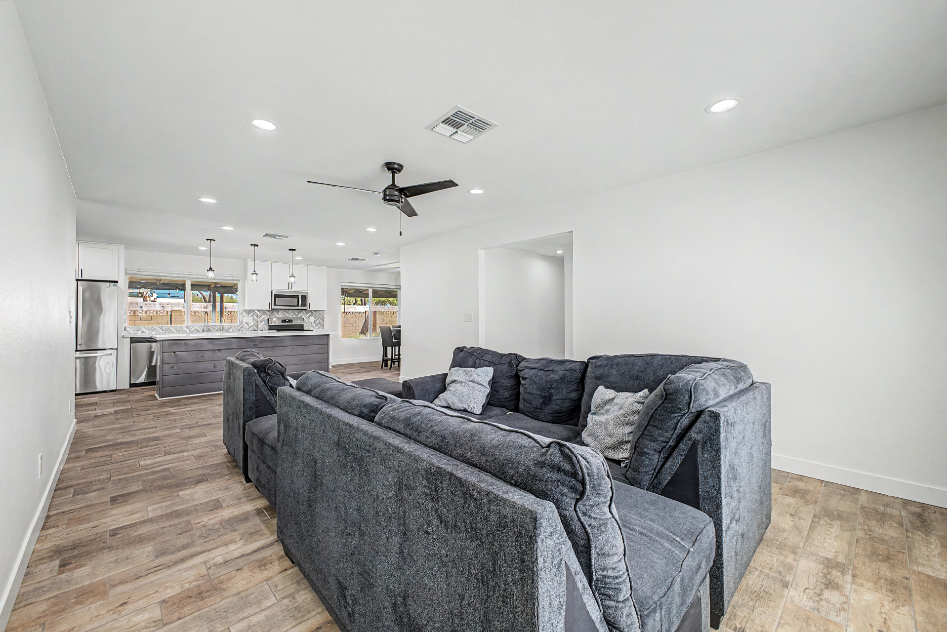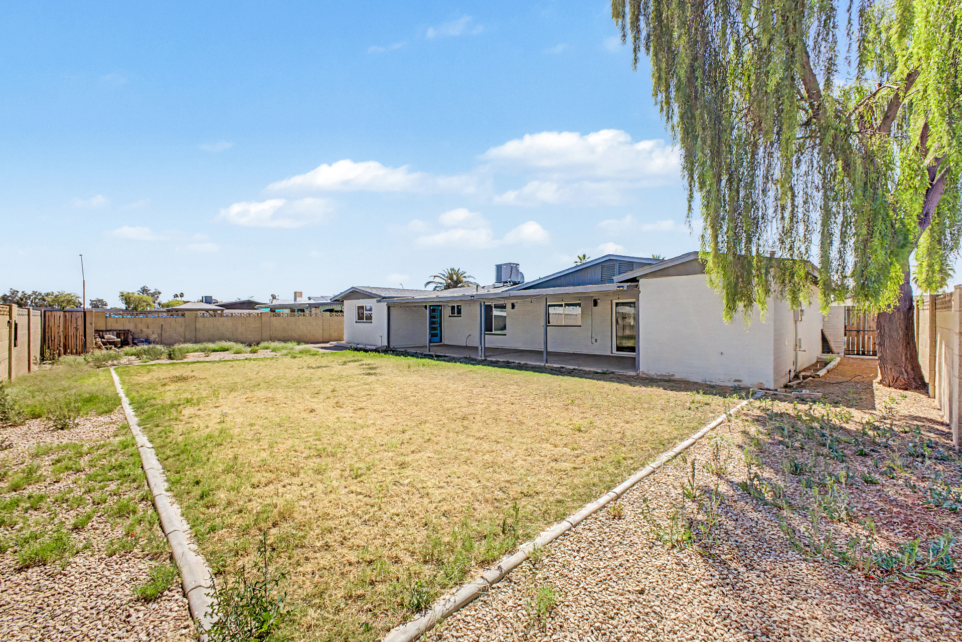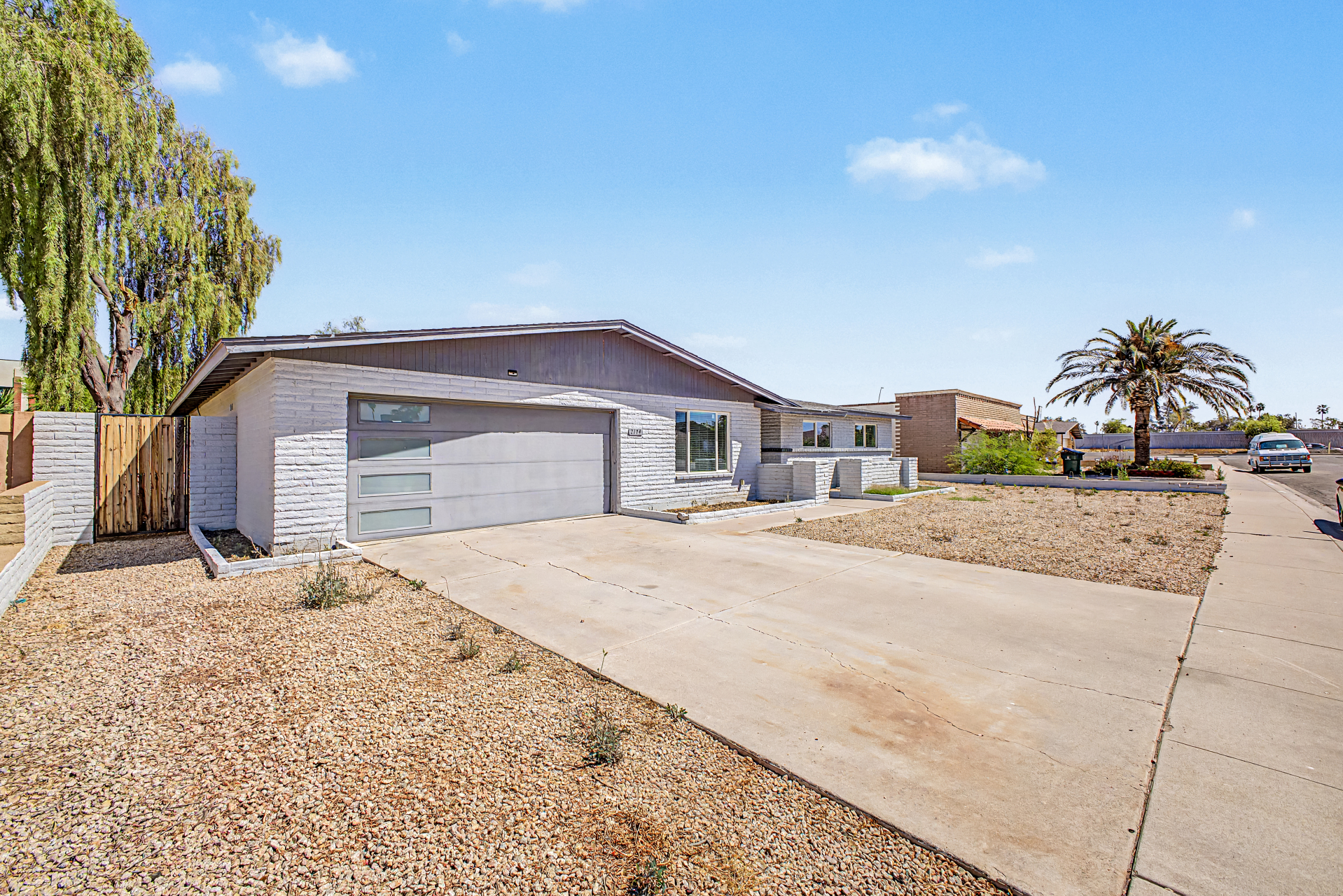 BEAUTIFULLY UPDATED home in Tempe, ready to move in! Offering 4 beds, 2 baths, and a 2-car garage w/extended driveway. The interior boasts clean lines that promote a modern feel! Enhanced by a neutral palette, recessed lighting, chic light fixtures, tons of natural light, and wood-look tile flooring throughout. Spacious living & family rooms, perfect for entertaining! The impressive eat-in kitchen boasts SS appliances, quartz counters, designer tile backsplash, two-tone shaker cabinetry, a walk-in pantry, an island w/breakfast bar, and a dry bar w/wine cooler. The primary bedroom has outdoor access, two closets, and a private bathroom w/tiled shower. Secondary bedrooms with soft carpet. Check out the large backyard with a grassy area and a covered patio to relax or enjoy BBQ! Welcome home!