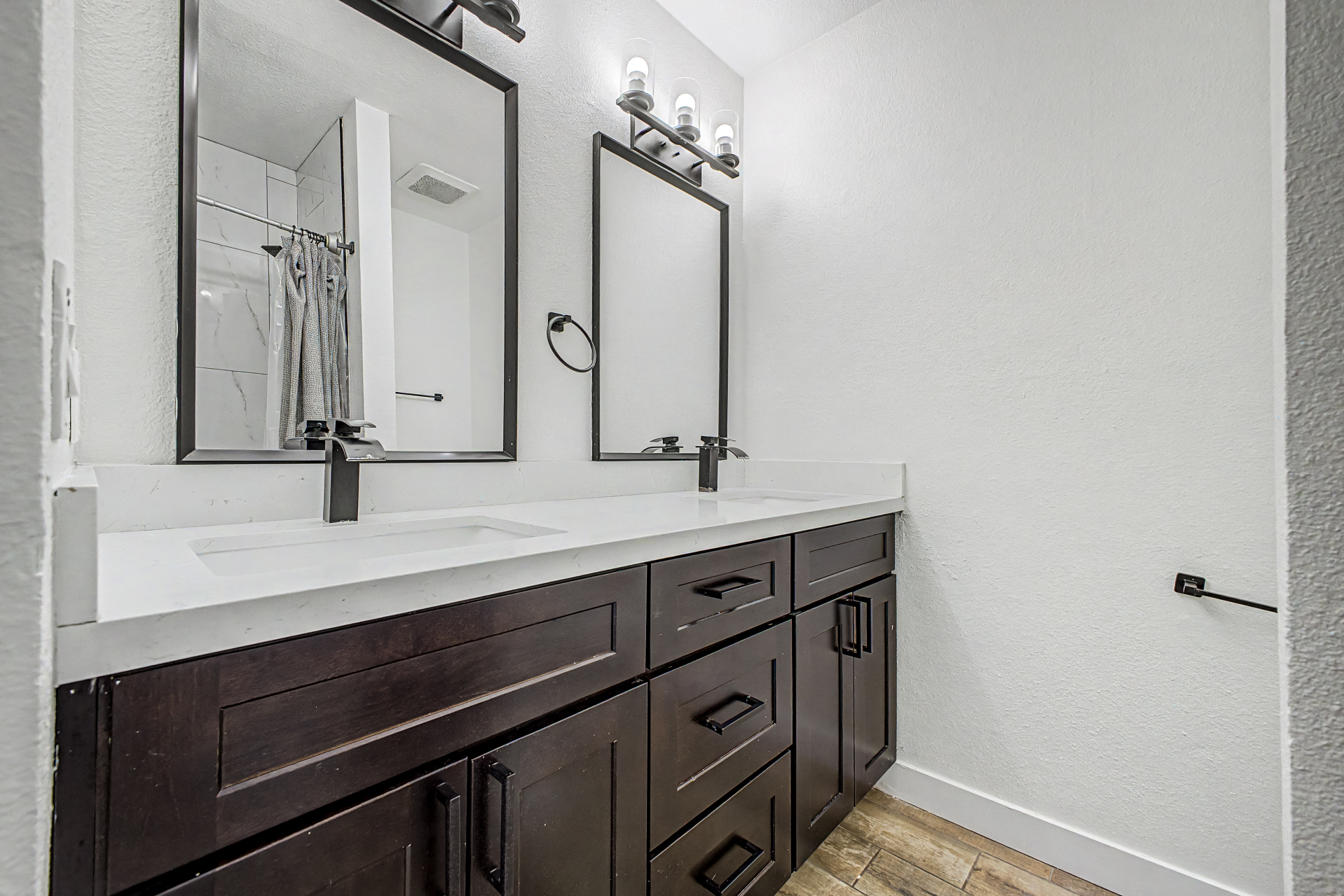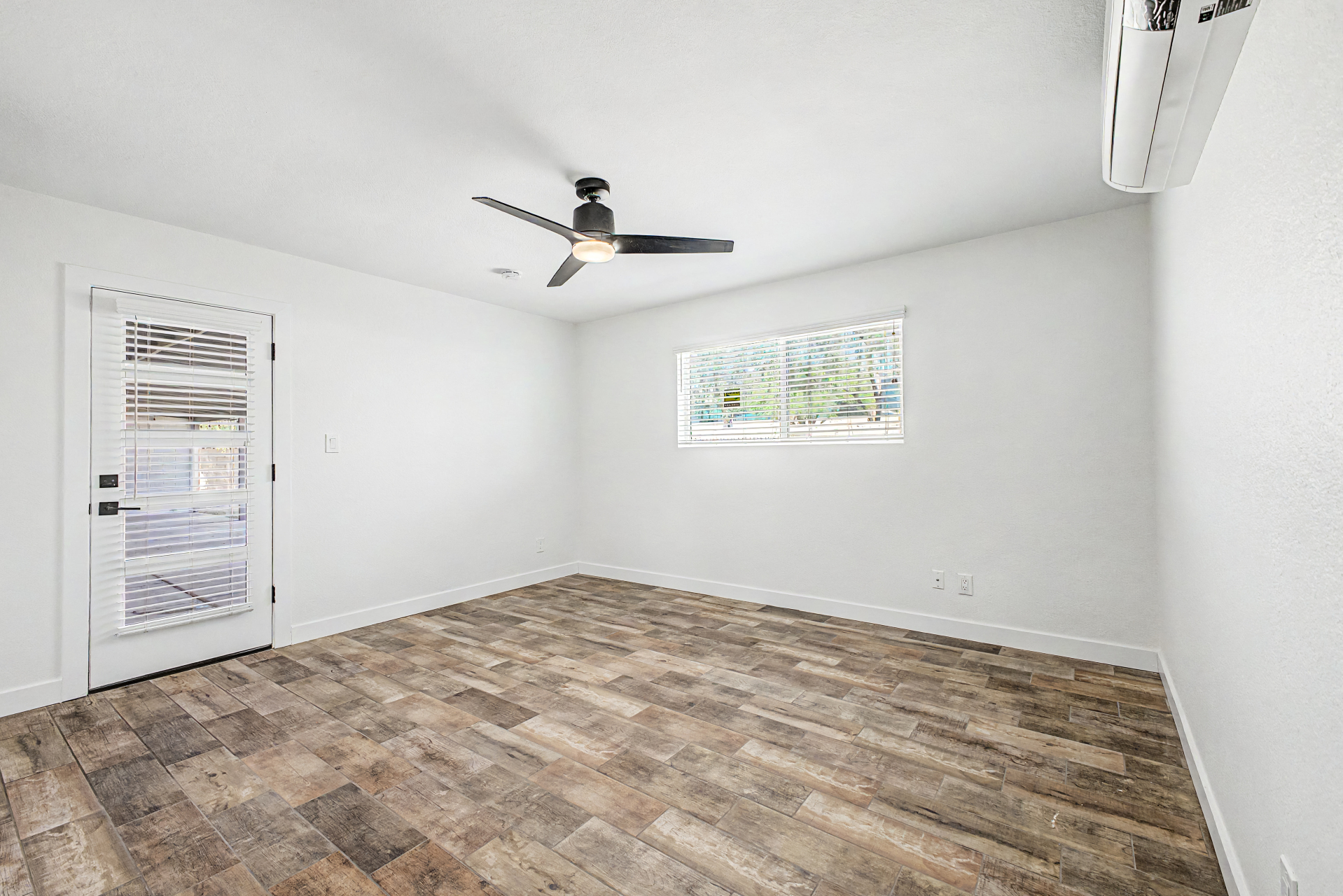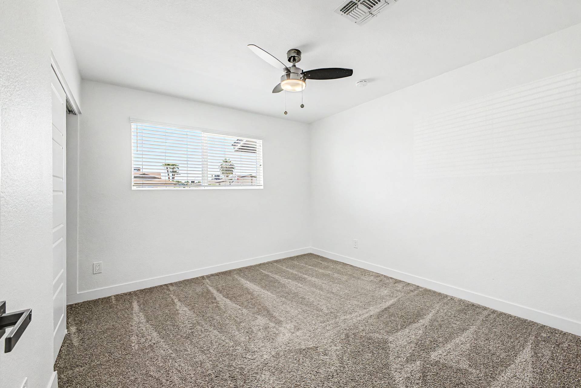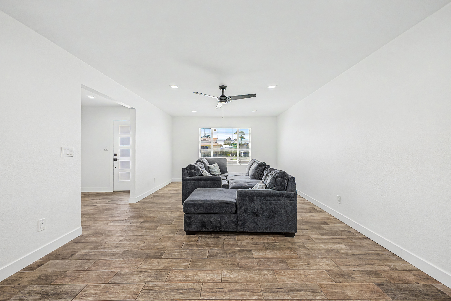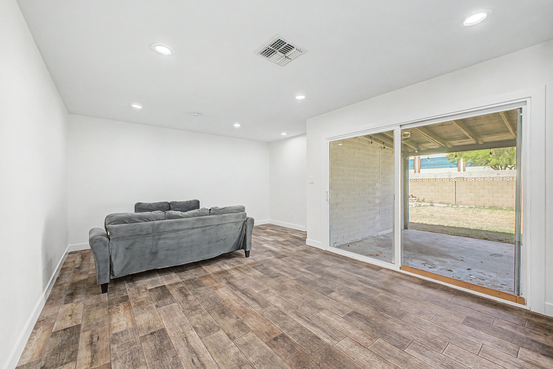 BEAUTIFULLY UPDATED home in Tempe, ready to move in! Offering 4 beds, 2 baths, and a 2-car garage w/extended driveway. The interior boasts clean lines that promote a modern feel! Enhanced by a neutral palette, recessed lighting, chic light fixtures, tons of natural light, and wood-look tile flooring throughout. Spacious living & family rooms, perfect for entertaining! The impressive eat-in kitchen boasts SS appliances, quartz counters, designer tile backsplash, two-tone shaker cabinetry, a walk-in pantry, an island w/breakfast bar, and a dry bar w/wine cooler. The primary bedroom has outdoor access, two closets, and a private bathroom w/tiled shower. Secondary bedrooms with soft carpet. Check out the large backyard with a grassy area and a covered patio to relax or enjoy BBQ! Welcome home!