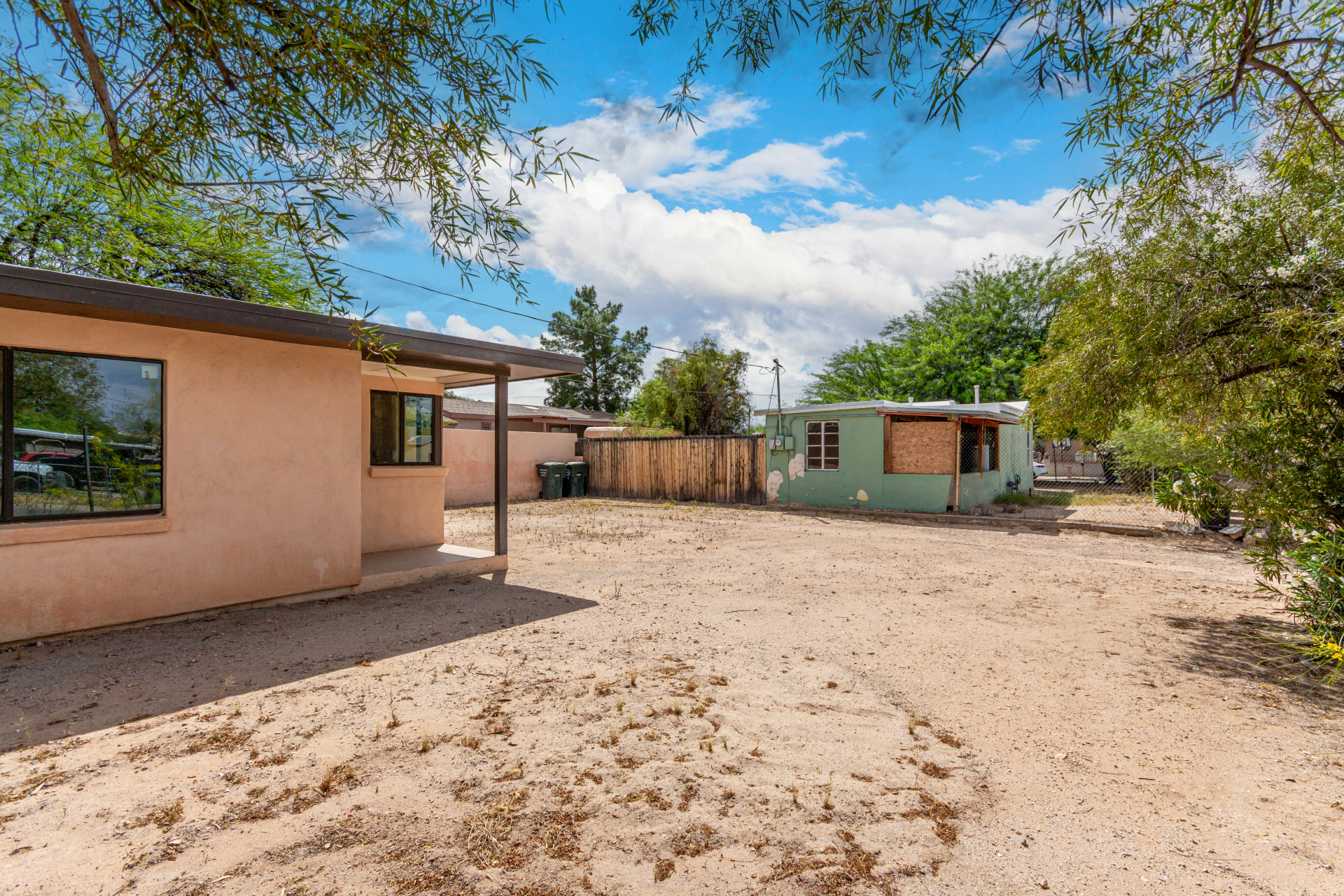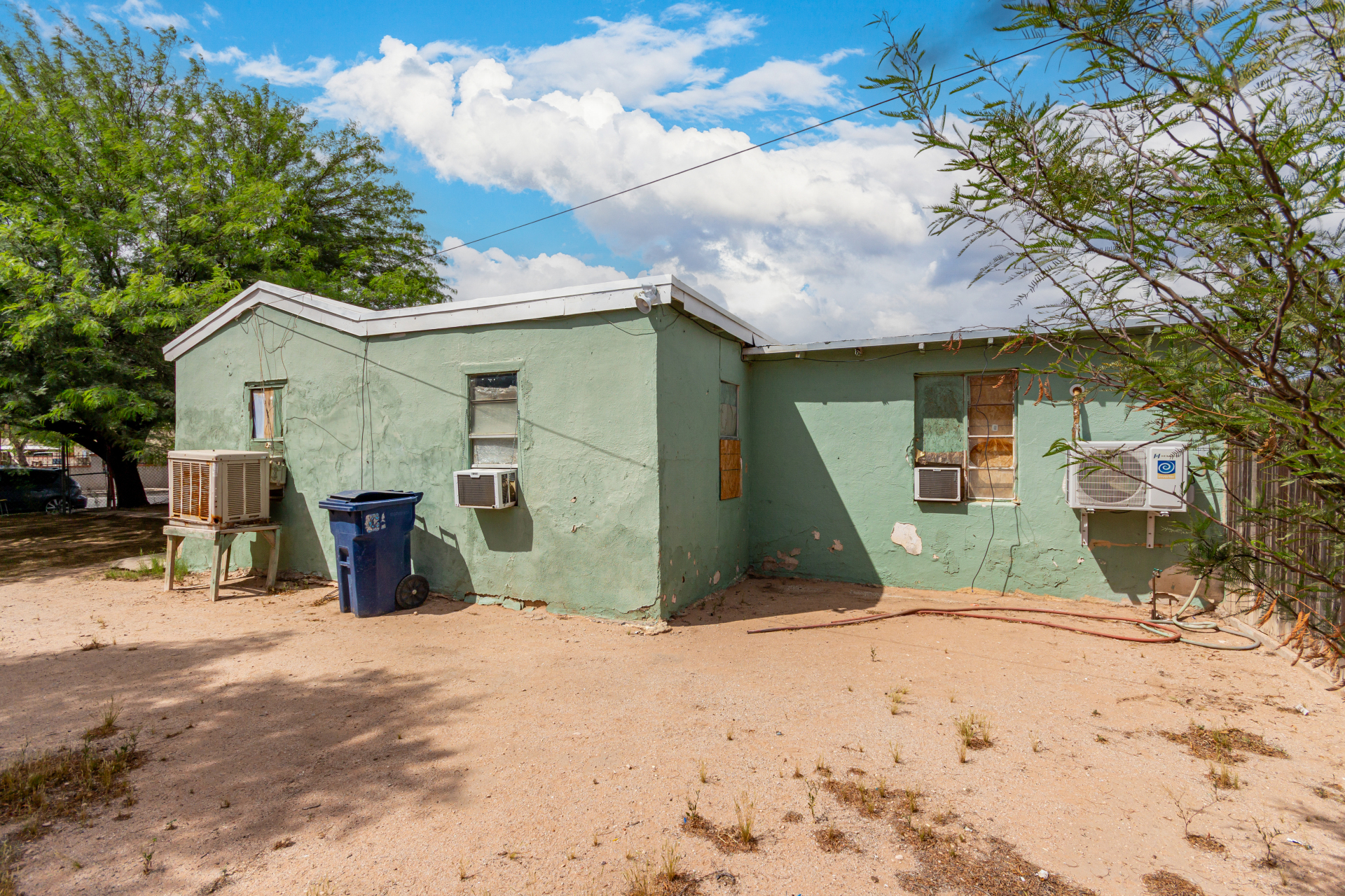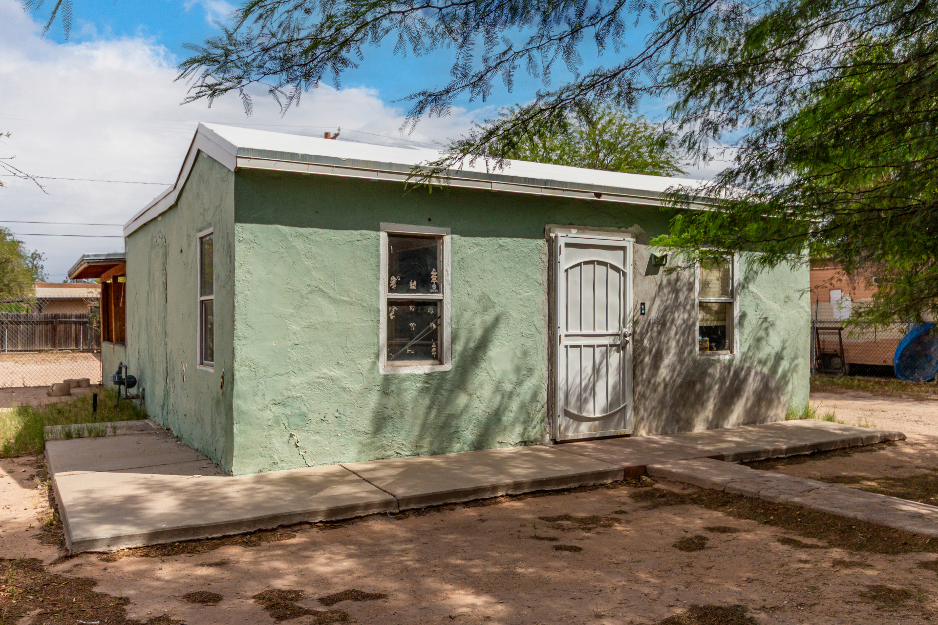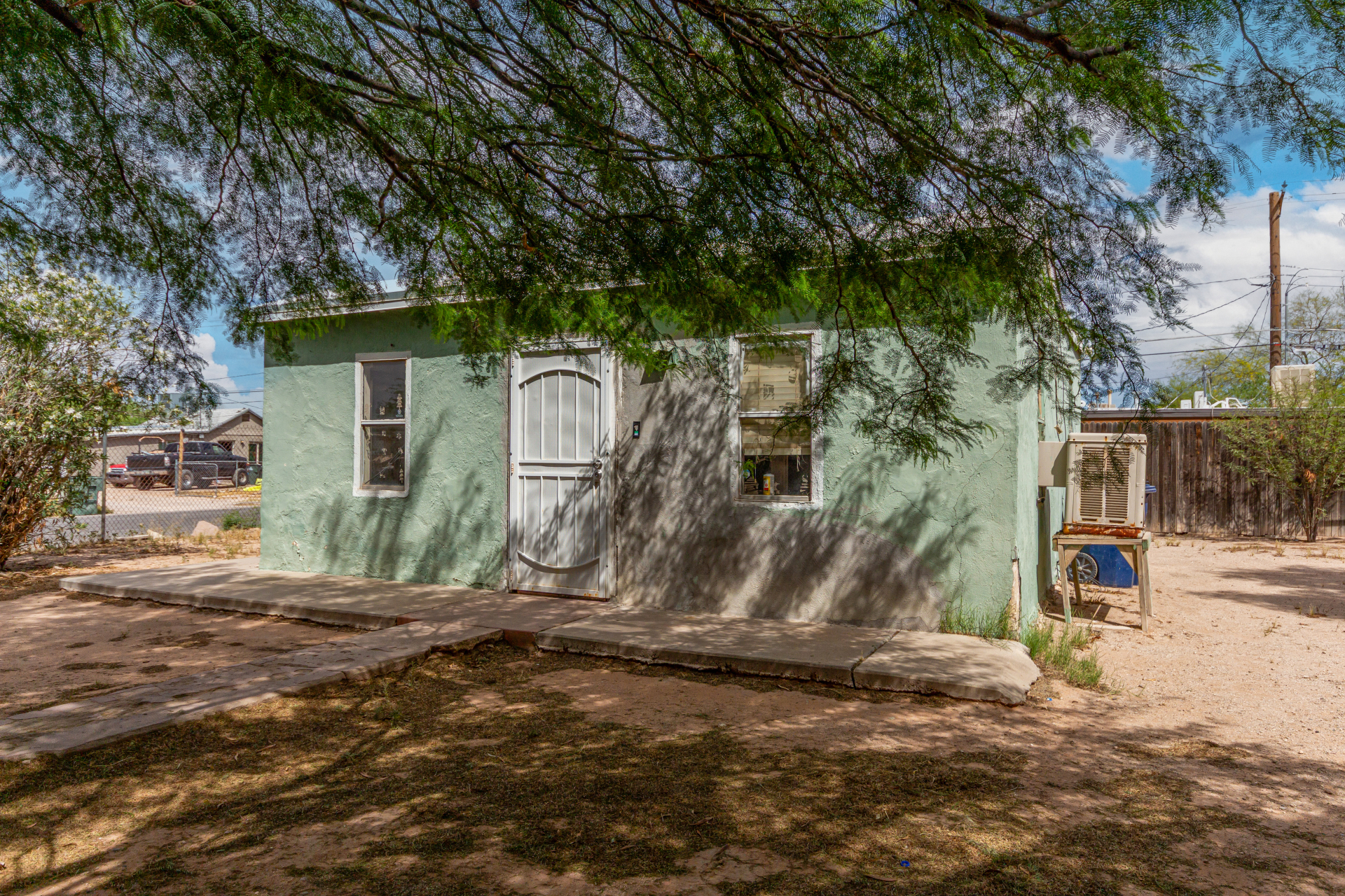 Great investment opportunity in South Tucson! This value sits on a spacious corner lot with alley access and includes a second detached building — perfect for rental income or a guest suite. The main house offers generous parking and a covered porch. The thoughtfully renovated interior showcases neutral paint, tile flooring, recessed lighting, and an open living-dining room. The kitchen features sleek shaker cabinetry, granite countertops, and stainless steel appliances. The primary bedroom includes a bathroom, while the second bedroom boasts a private outdoor entry — ideal as a studio or workspace. Whether you’re looking to maximize rental income or create a comfortable retreat for guests or extended family, this versatile property delivers on all fronts. Inquire today!