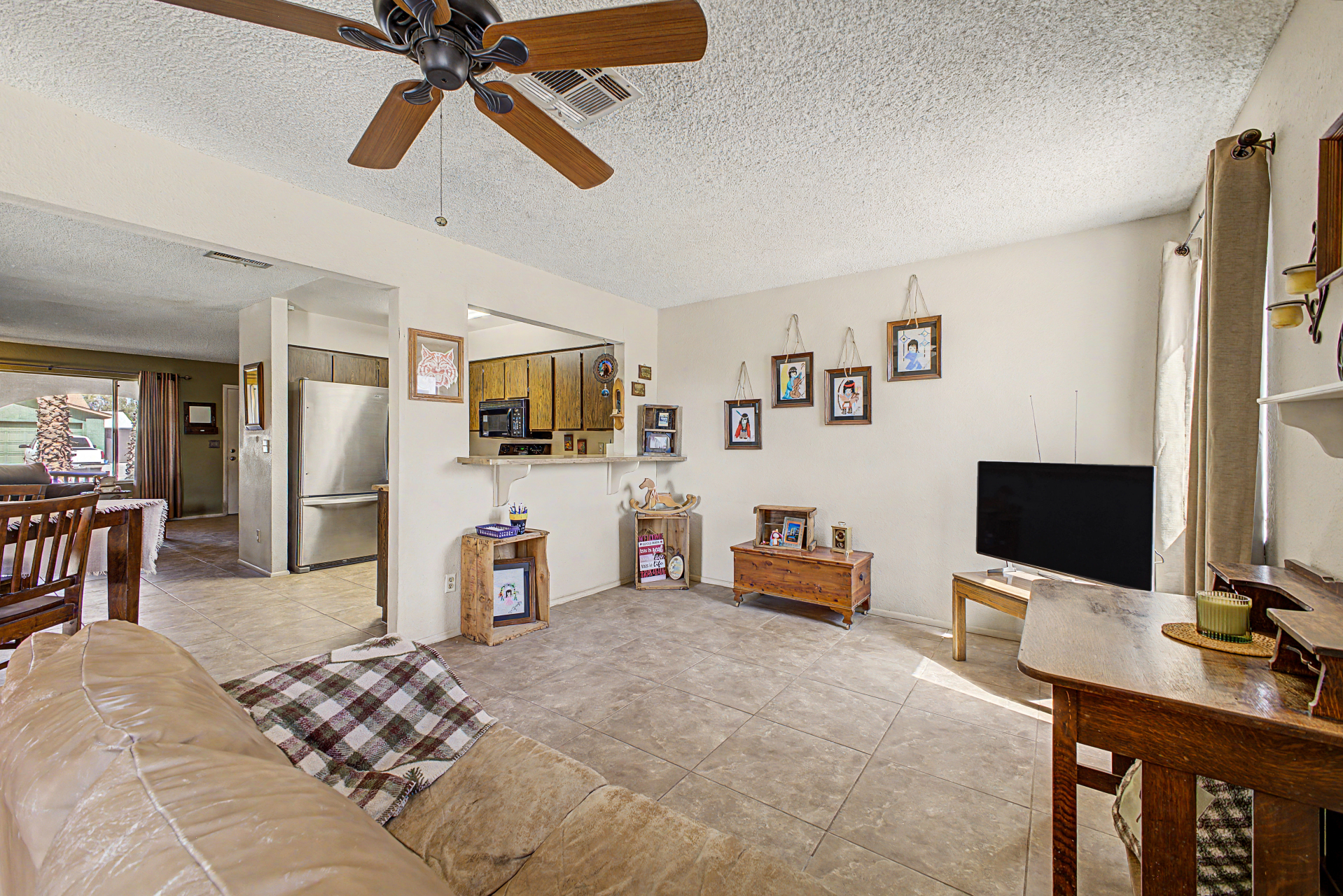 Experience comfort and convenience in this lovely 3-bedroom home featuring carport parking and low-care front yard! From the moment you enter, you will be greeted by a perfectly sized living room with tile flooring in all the right places, soothing palette, and lots of natural light. Inviting great room offers sliding glass doors that create a seamless indoor-outdoor living. In the kitchen, you will find built-in appliances, plenty of cabinet space, and a breakfast bar. Sizable primary bedroom provides plush carpet, a well-sized closet, and a private bathroom. Don't miss the spacious backyard, which includes a covered patio, play area, and a storage shed. Hurry! Make it yours before it's gone!