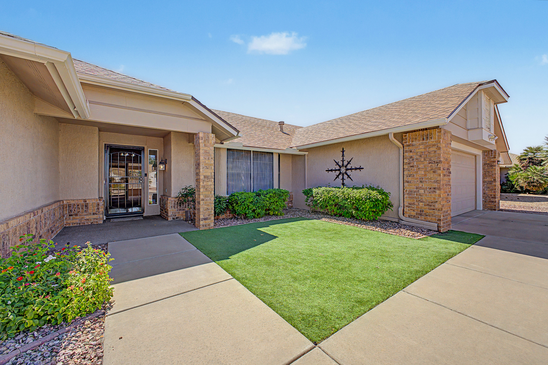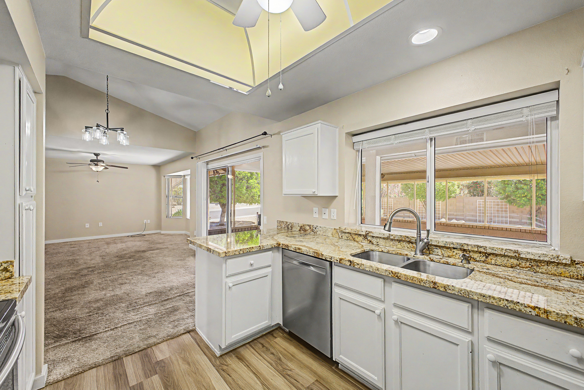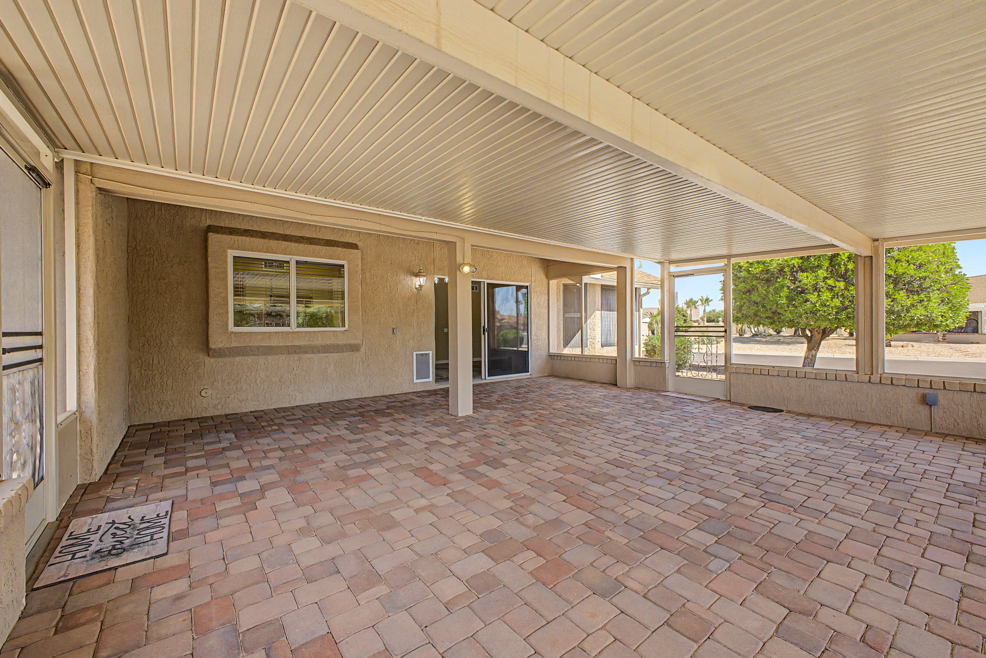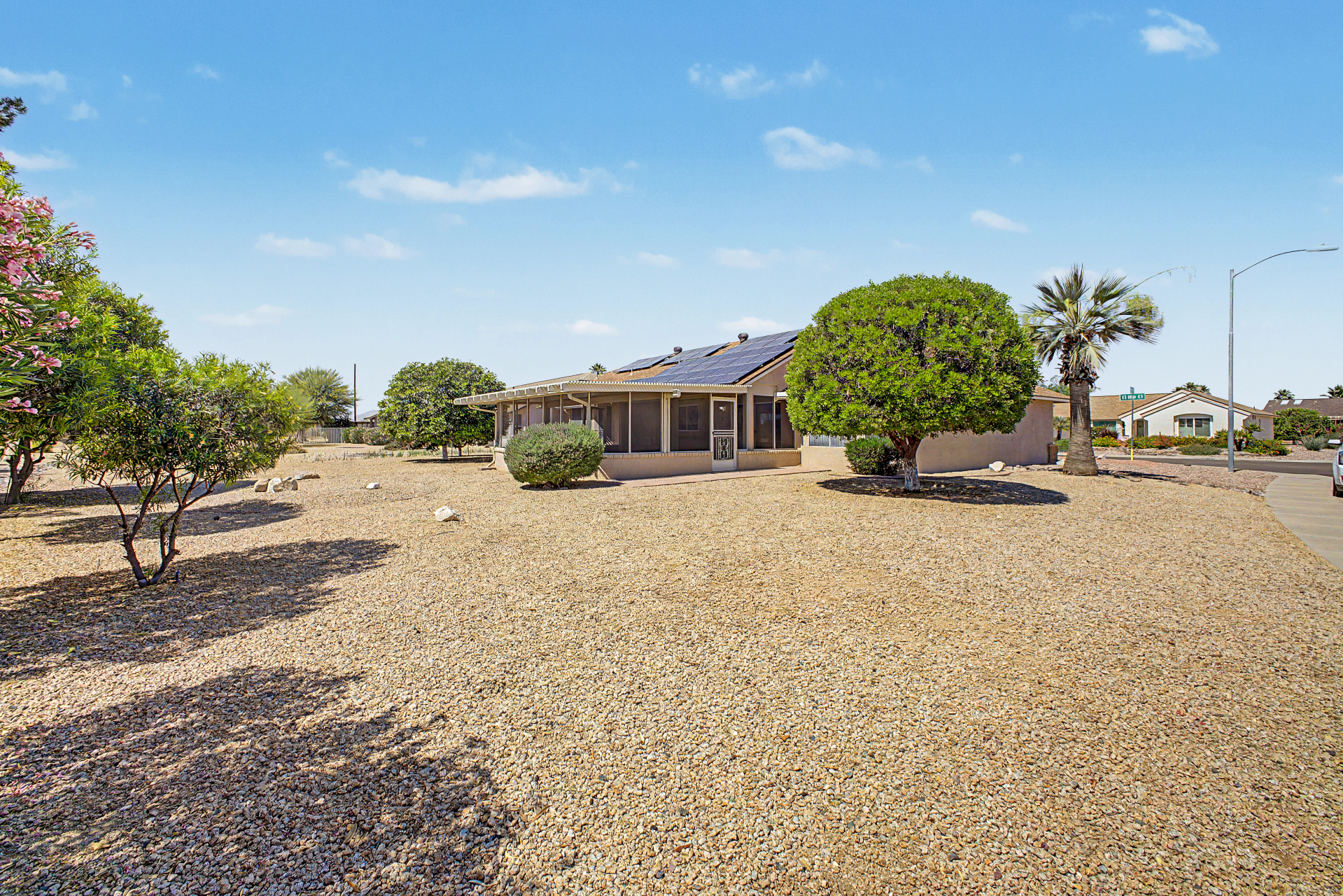 Situated on a corner-lot, This 2 bedroom, 2 bathroom home offers a split bedroom Floor plan designed for added privacy. The functional layout features a living area and a designated dining space ideally positioned between the kitchen and living room. This home also includes a generously sized Arizona room ,providing additional versatile space to fit a variety of needs. 55+ Community