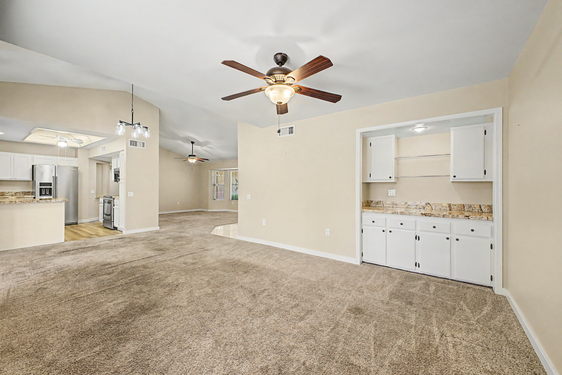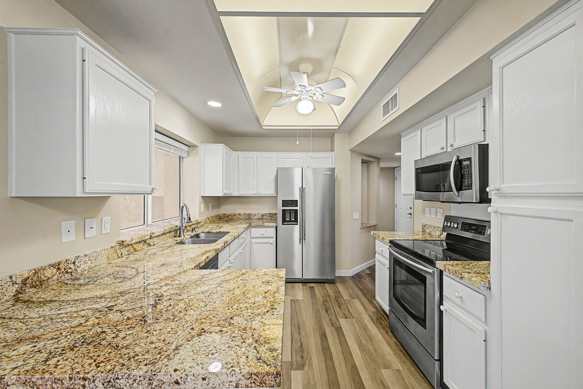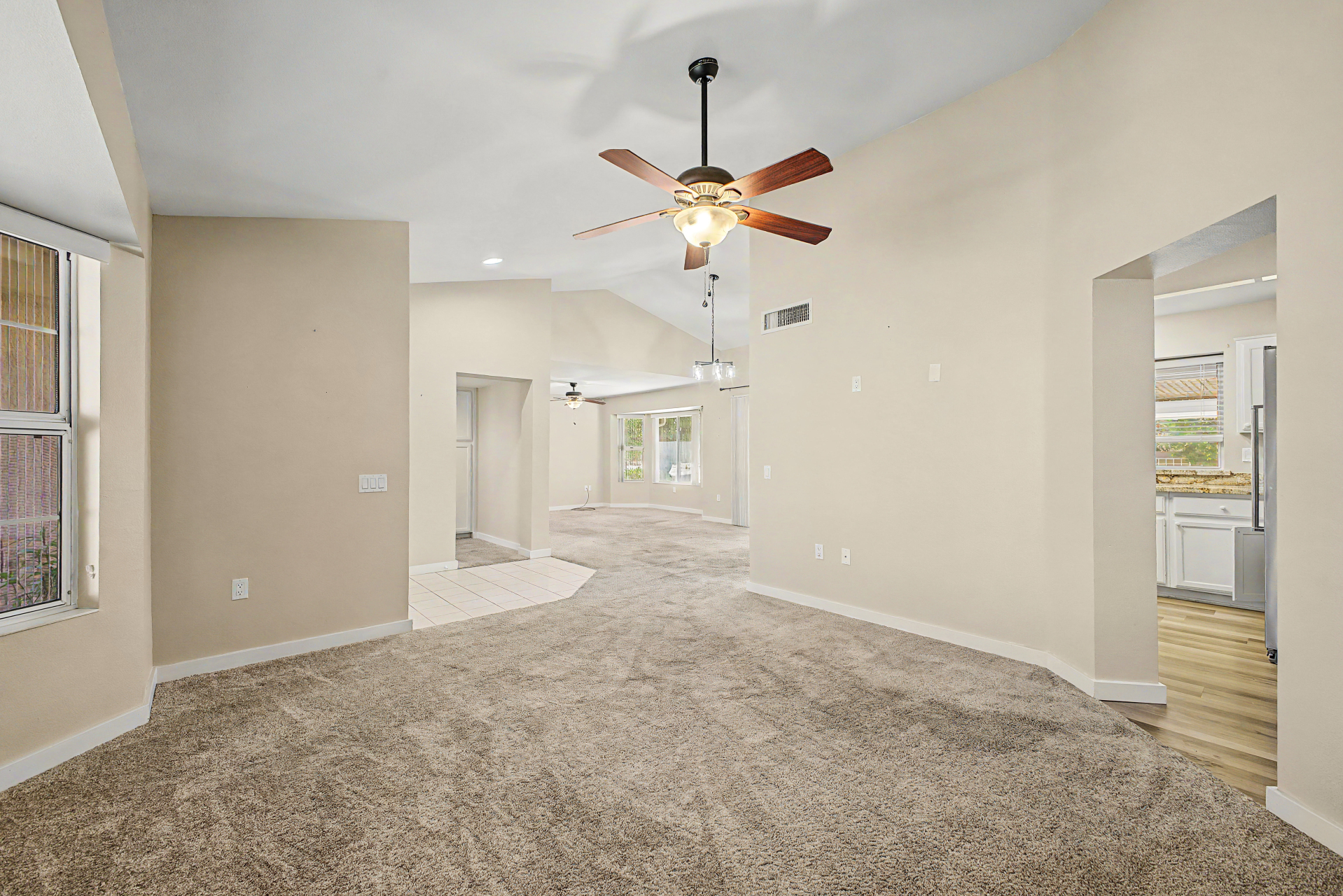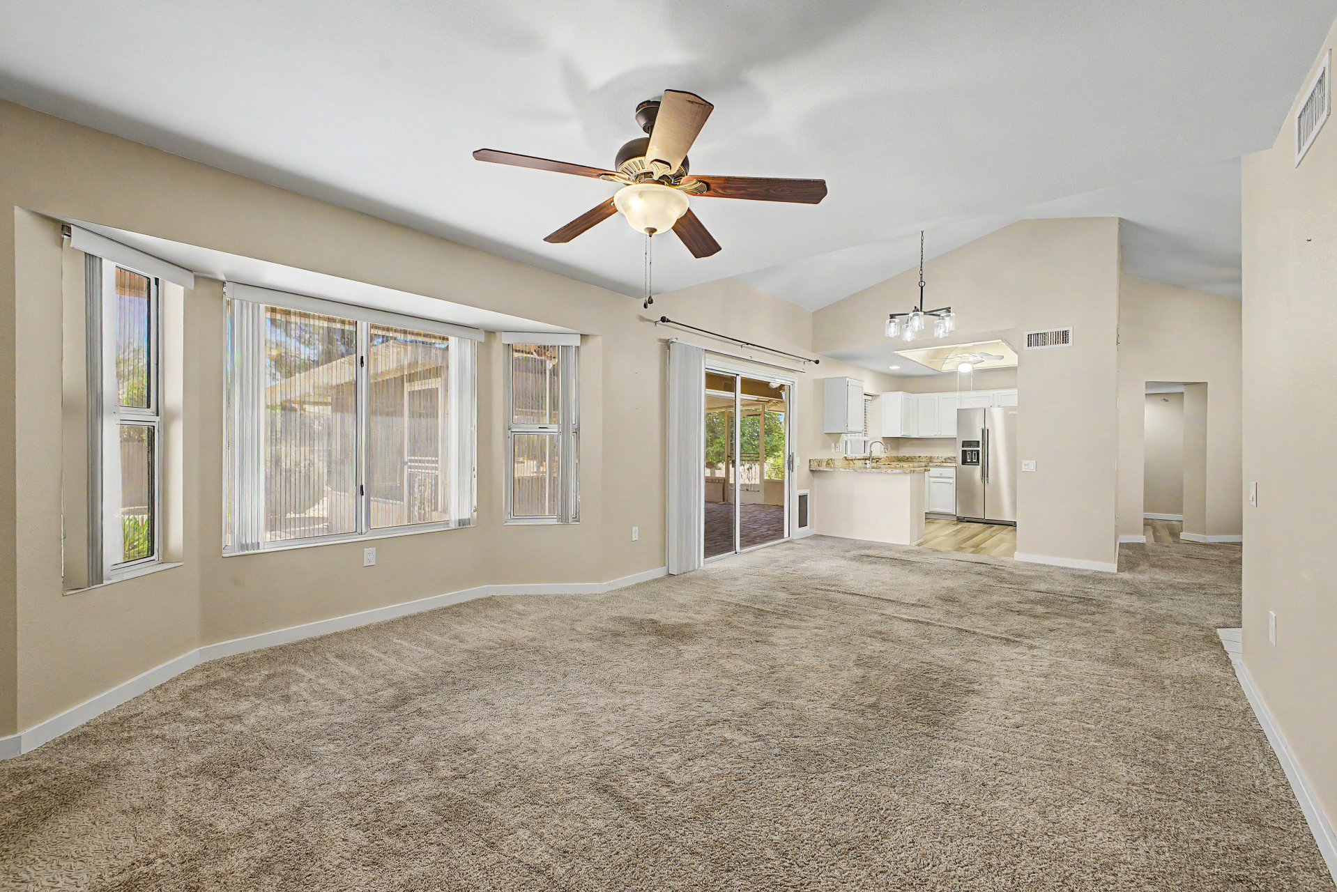 Situated on a corner-lot, This 2 bedroom, 2 bathroom home offers a split bedroom Floor plan designed for added privacy. The functional layout features a living area and a designated dining space ideally positioned between the kitchen and living room. This home also includes a generously sized Arizona room ,providing additional versatile space to fit a variety of needs. 55+ Community