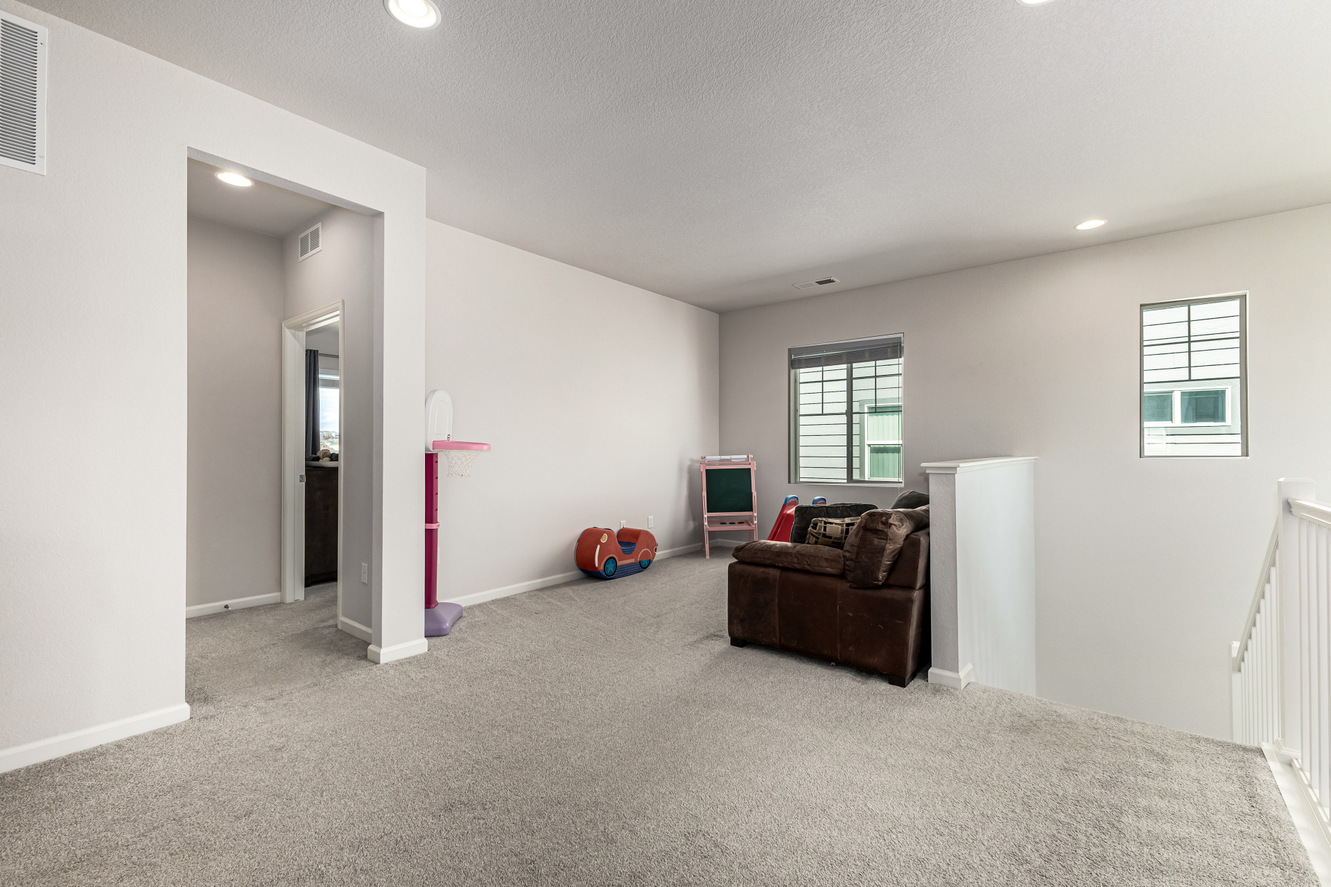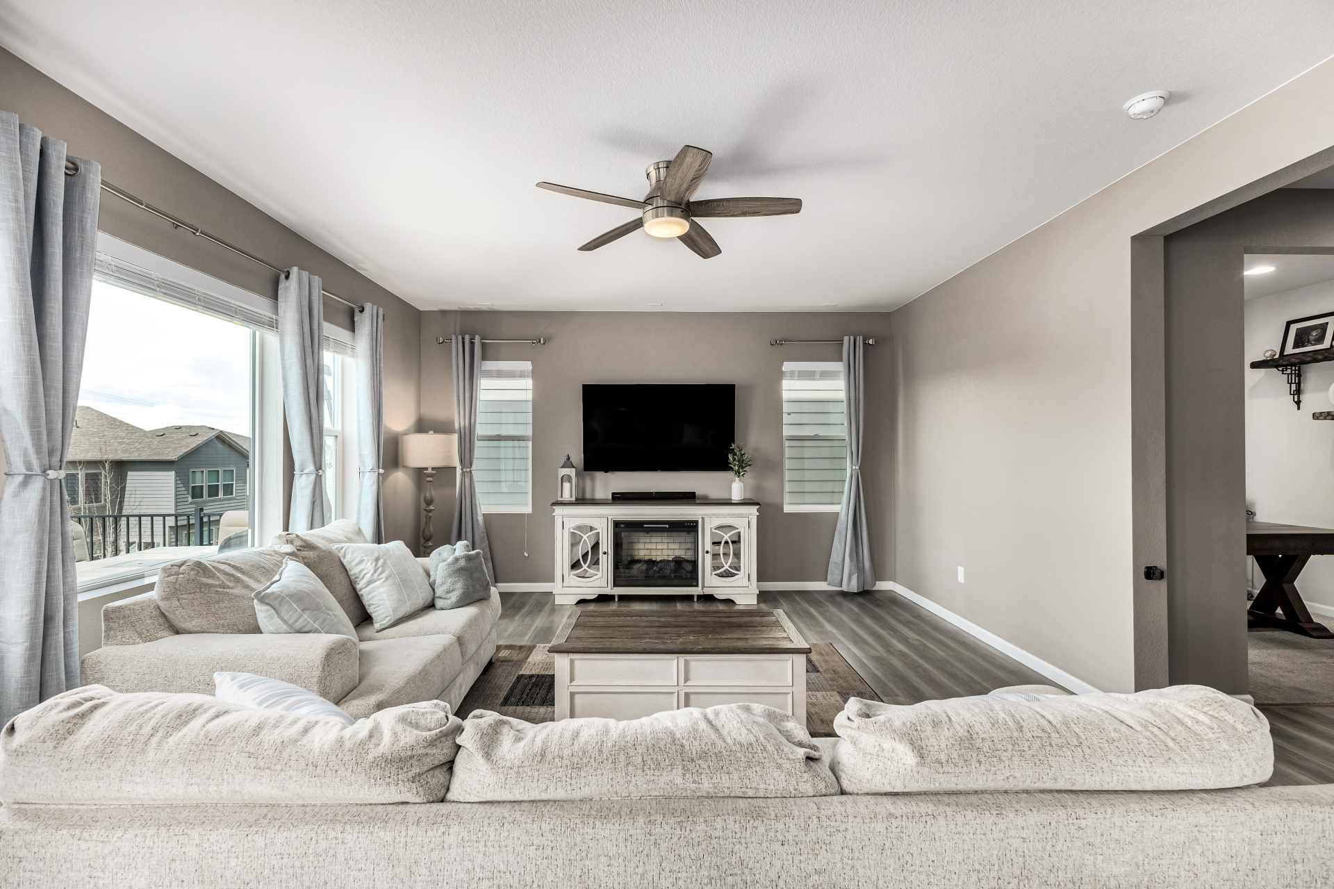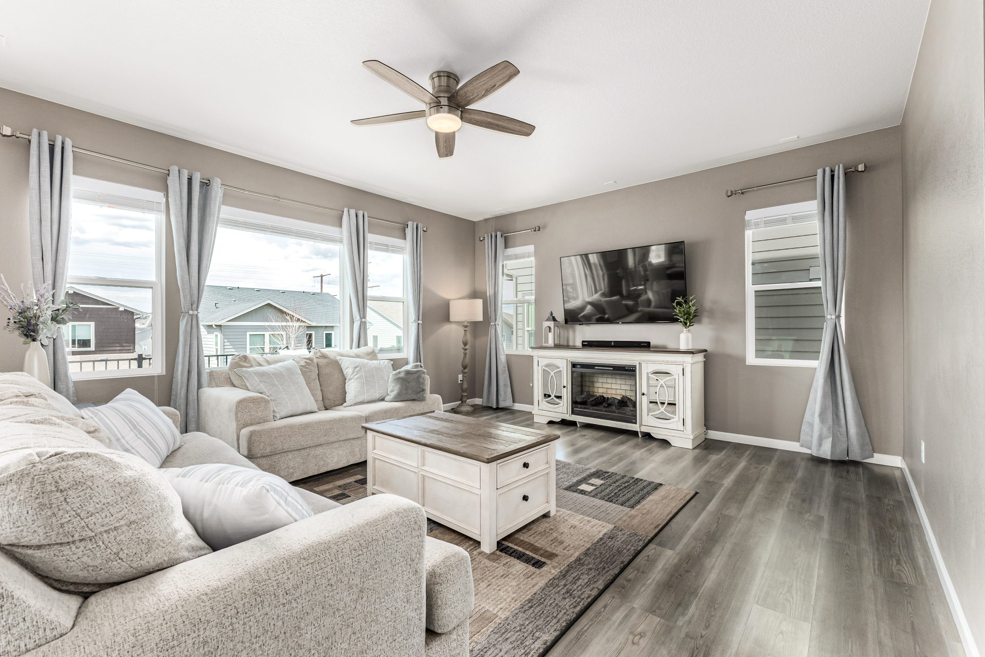 A rare find! Prepare to fall in love with this beautiful 3-bedroom home that perfectly blends timeless charm with modern style. The façade displays an oversized 2-car garage and stone accents. Check out the harmonious great room, where rich wood flooring, bountiful natural light, natural paint, and ceiling fans throughout create a warm and inviting atmosphere. Well-appointed kitchen shines with stainless steel appliances, recessed lighting, abundant cabinets, quartz counters, and a prep island with a breakfast bar, ideal for everyday living and entertaining. The primary bedroom offers a serene retreat, complete with plush carpet and an ensuite with an enclosed glass shower. Standout features include a dedicated den/office, a sizable loft, and a HUGE walk-out basement, providing endless possibilities for work, play, or additional living space. Enjoy relaxing on the cozy deck while sipping your favorite drink. Hurry! This amazing value is one you don’t want to miss!