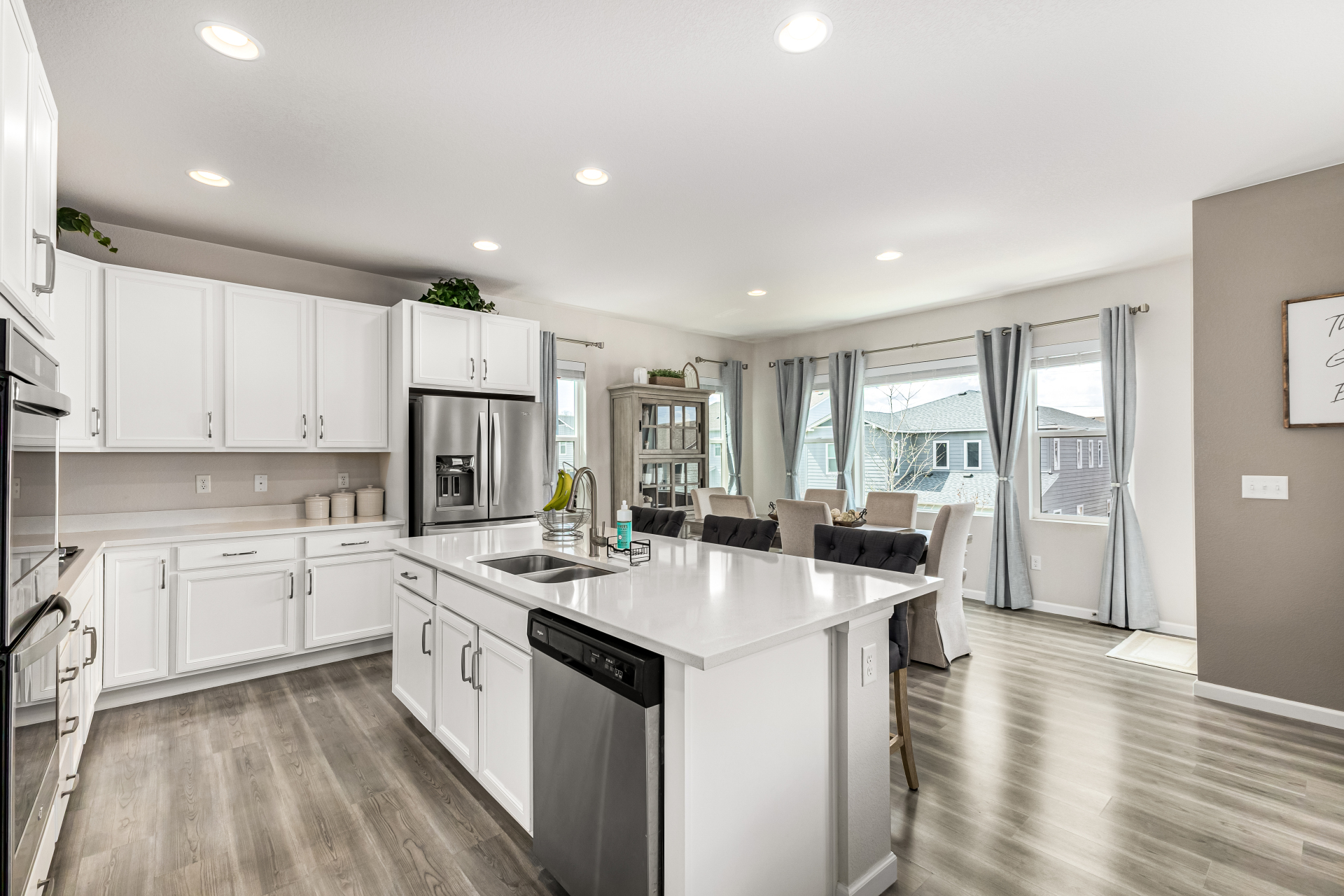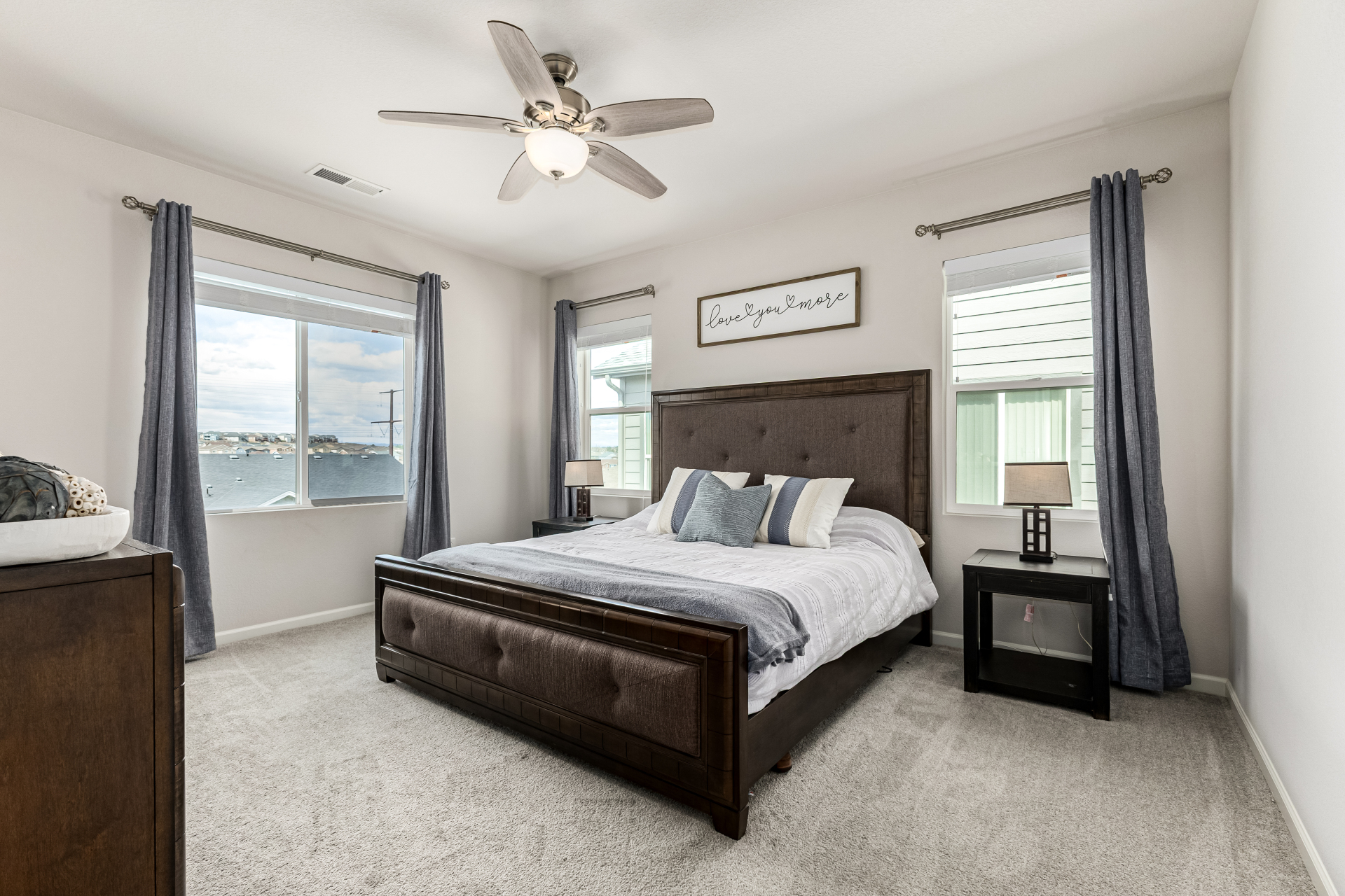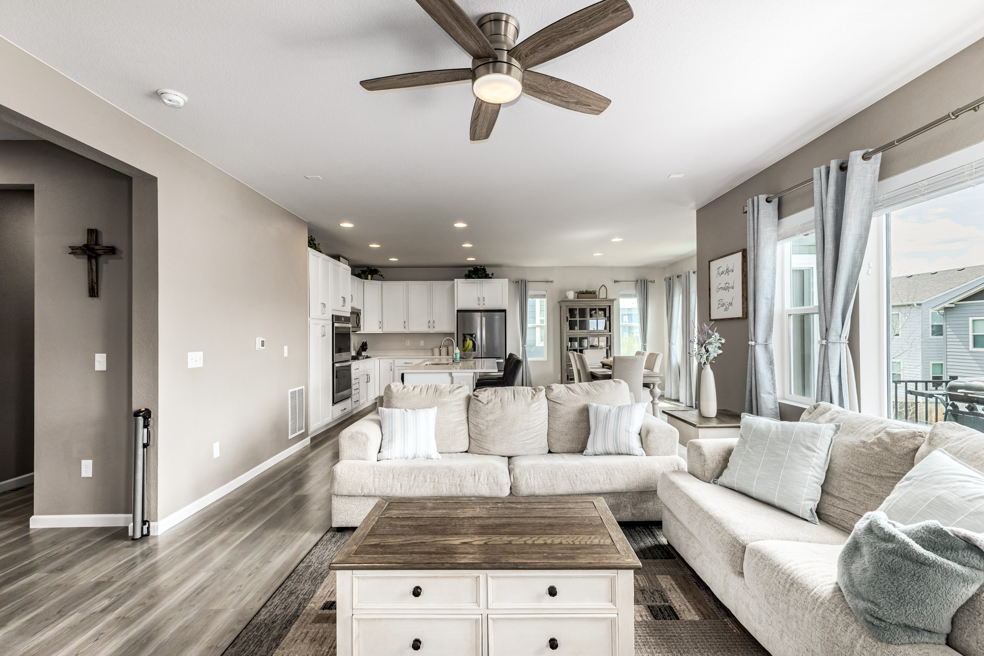 A rare find! Prepare to fall in love with this beautiful 3-bedroom home that perfectly blends timeless charm with modern style. The façade displays an oversized 2-car garage and stone accents. Check out the harmonious great room, where rich wood flooring, bountiful natural light, natural paint, and ceiling fans throughout create a warm and inviting atmosphere. Well-appointed kitchen shines with stainless steel appliances, recessed lighting, abundant cabinets, quartz counters, and a prep island with a breakfast bar, ideal for everyday living and entertaining. The primary bedroom offers a serene retreat, complete with plush carpet and an ensuite with an enclosed glass shower. Standout features include a dedicated den/office, a sizable loft, and a HUGE walk-out basement, providing endless possibilities for work, play, or additional living space. Enjoy relaxing on the cozy deck while sipping your favorite drink. Hurry! This amazing value is one you don’t want to miss!