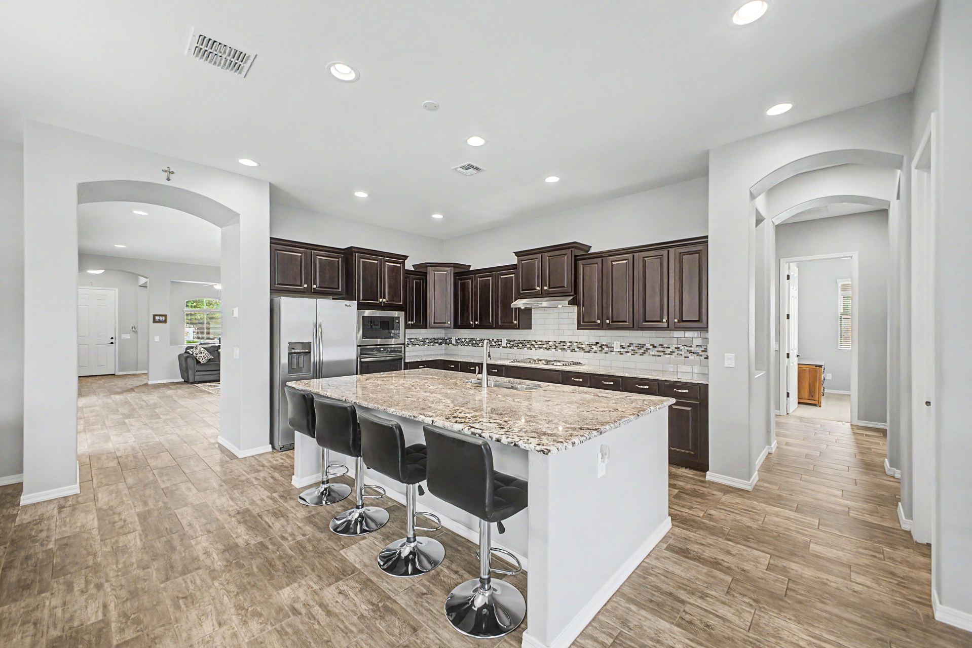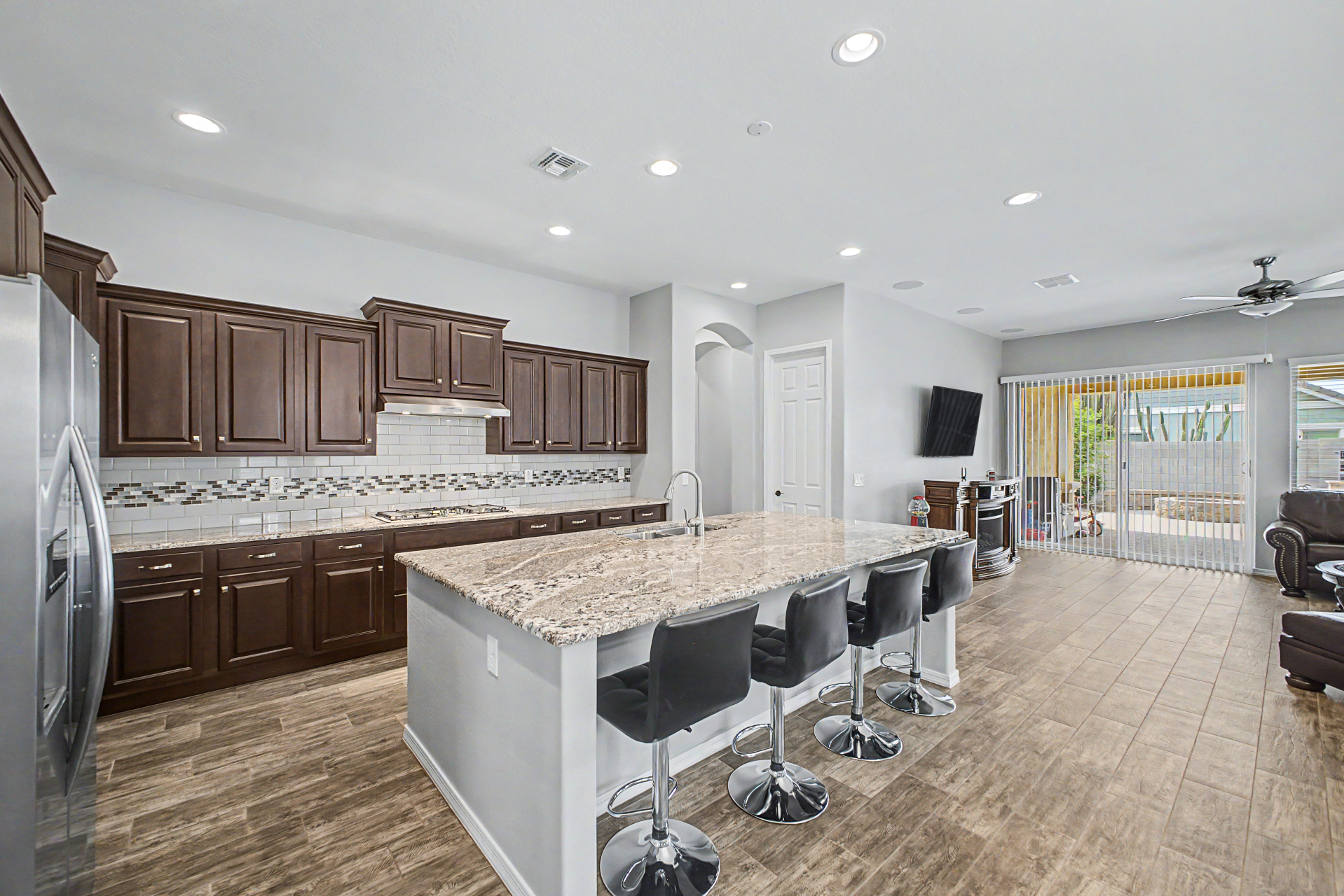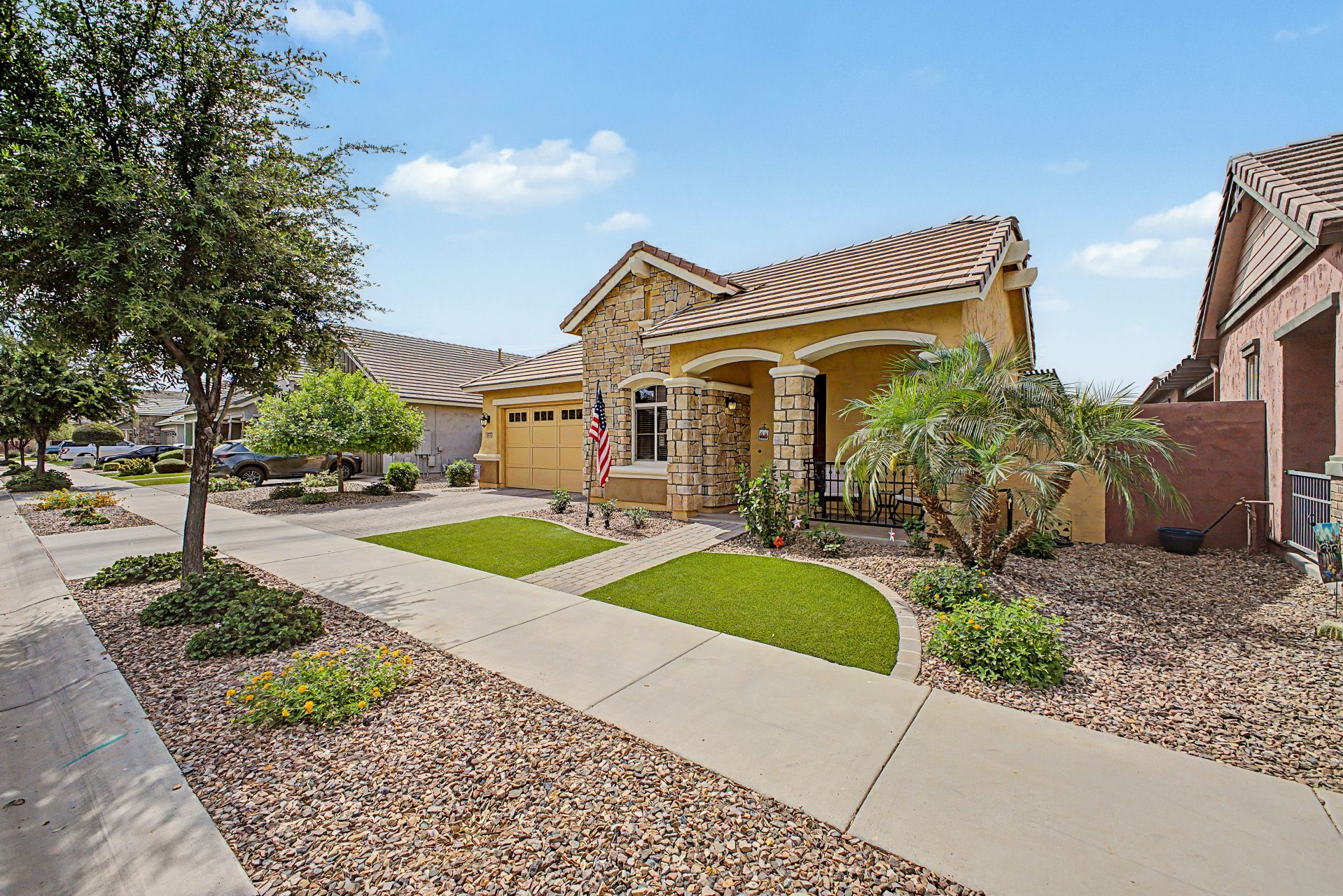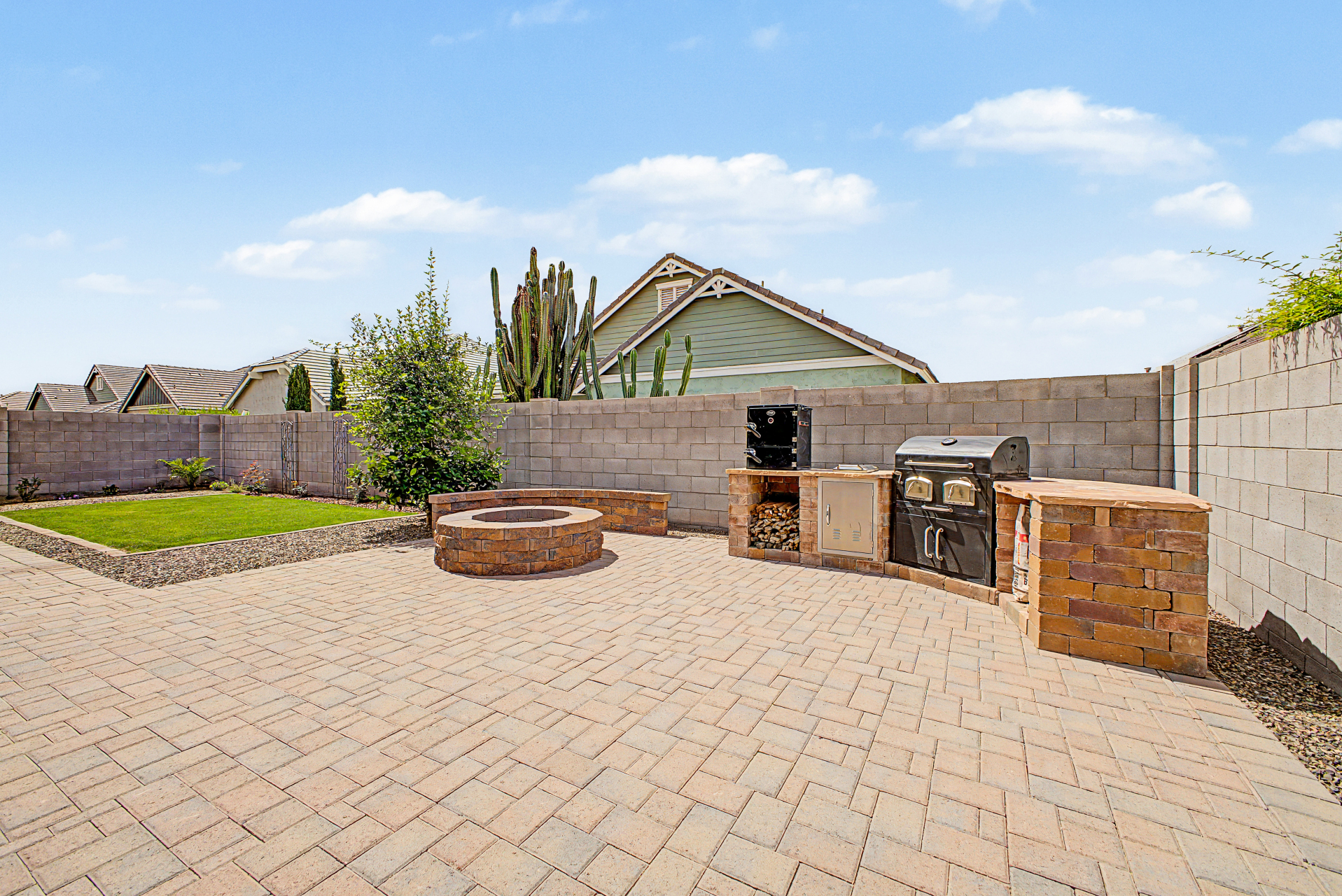 Beautifully upgraded 4 bedroom + open office, 3.5 bath Fulton home in desirable Gilbert location Cooley Station. Open floor plan with 8' interior doors, plank wood look tile, and carpeted bedrooms. Gourmet kitchen features GE SS appliances including 36'' gas cooktop, convection oven, maple cabinets with crown molding, granite counters, large island, and tile backsplash. Energy efficient 16 SEER A/C with radiant barrier, gas water heater, soft water system, 5.1 surround sound, and ceiling fans. Garage includes service door, opener, and overhead storage. Enjoy stunning custom backyard with paver patios, built in fire pit, BBQ island, pergola, grass, and mature landscaping. Community offers parks, playgrounds, and pool. Close to schools, shopping, dining, and major work centers.
