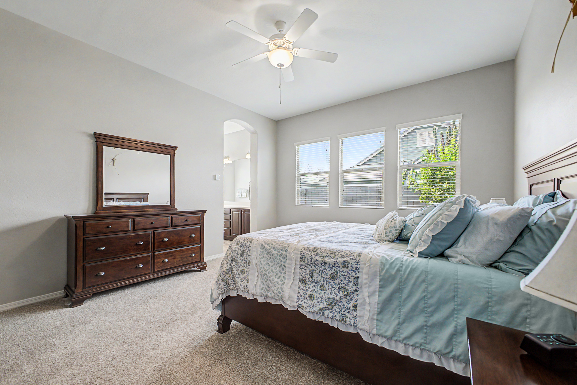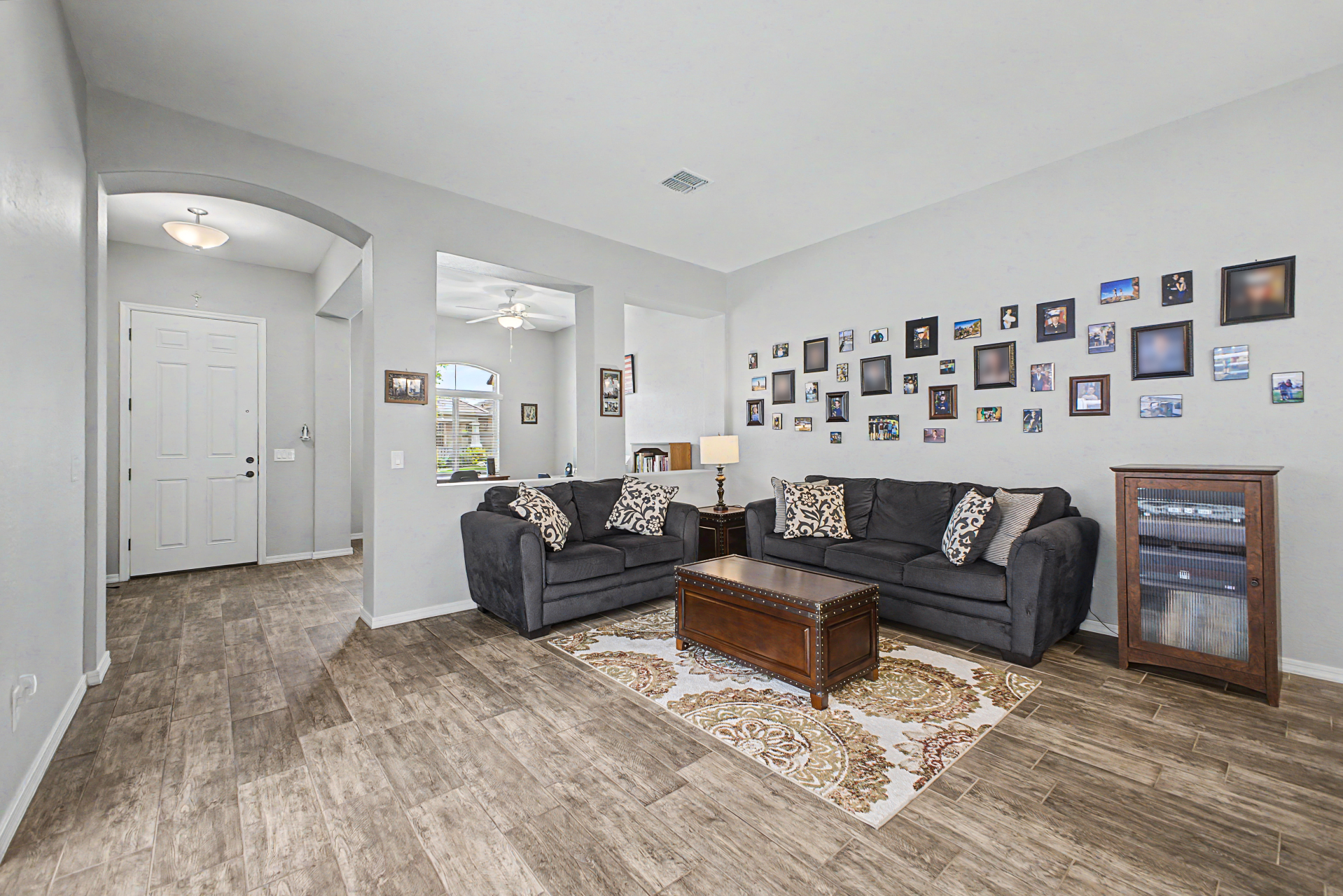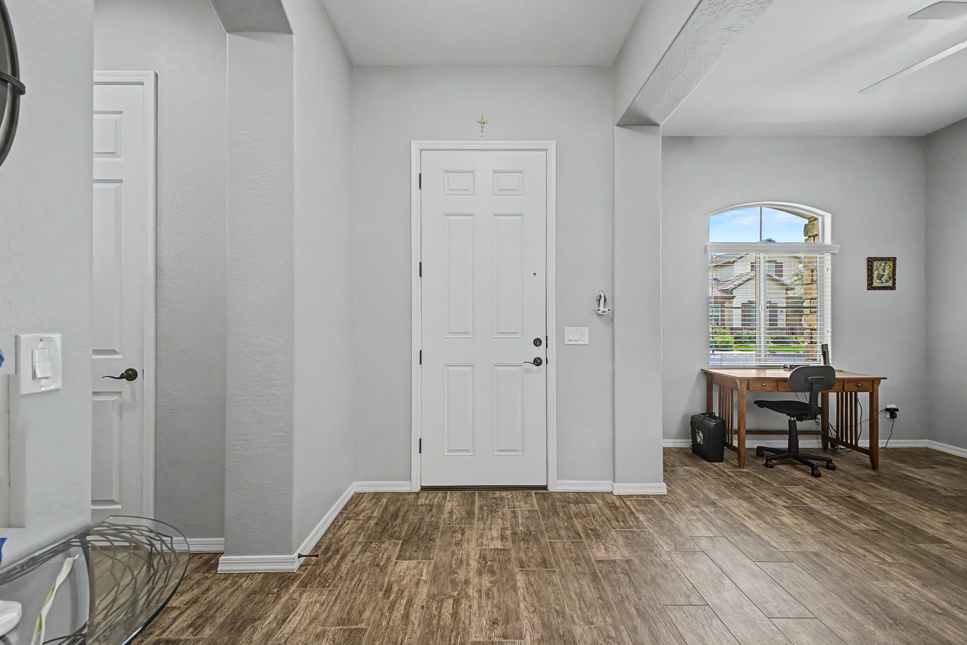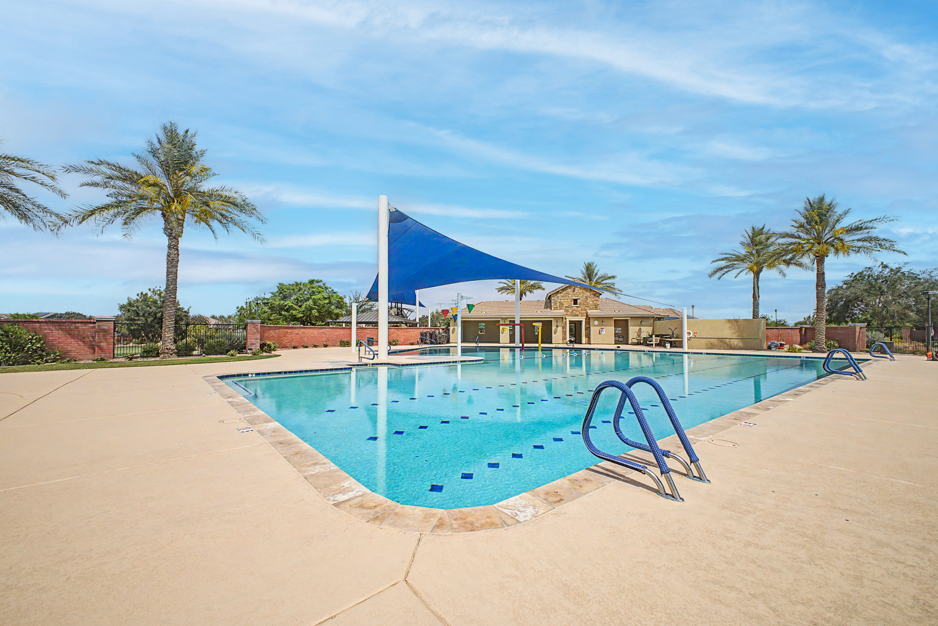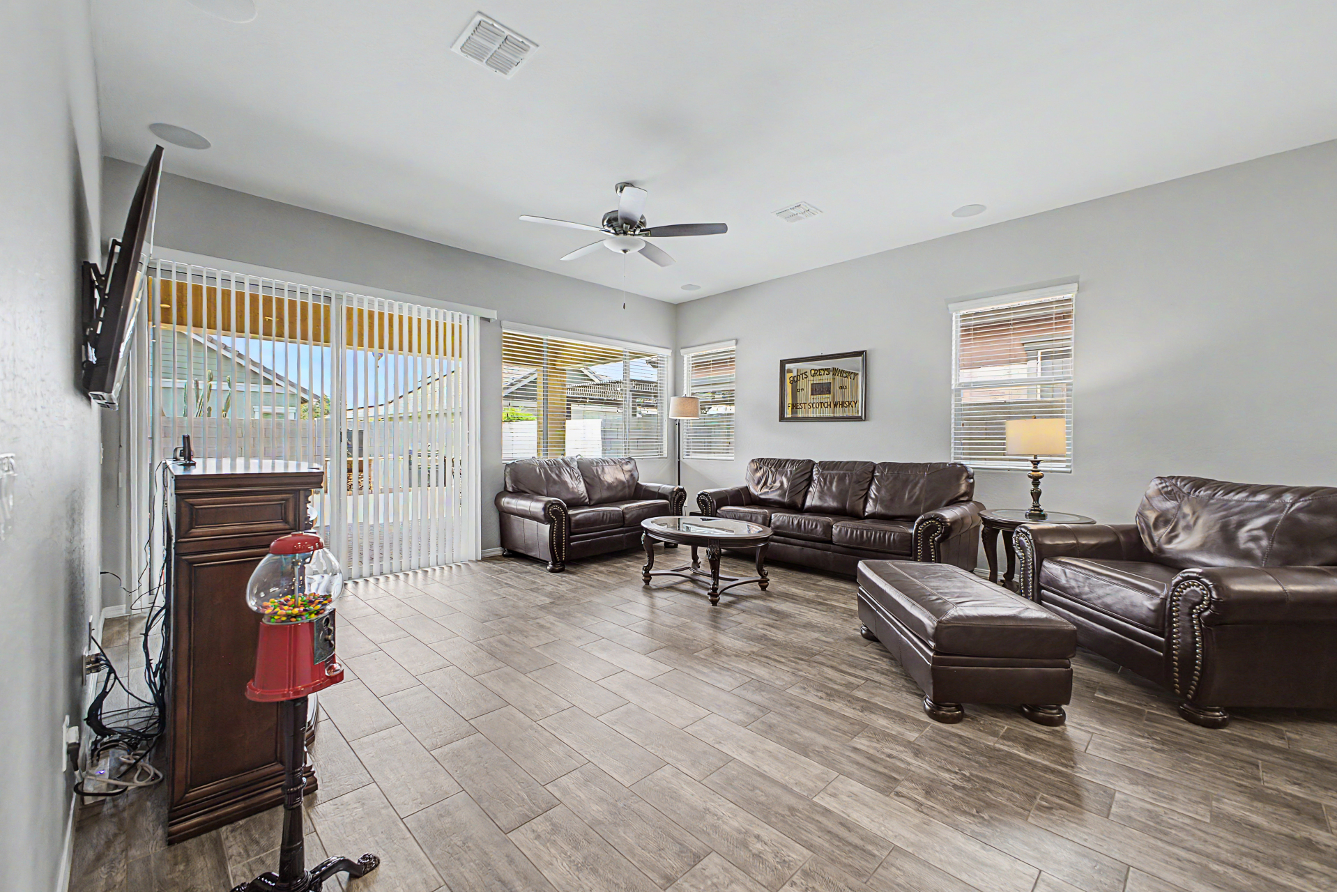 Beautifully upgraded 4 bedroom + open office, 3.5 bath Fulton home in desirable Gilbert location Cooley Station. Open floor plan with 8' interior doors, plank wood look tile, and carpeted bedrooms. Gourmet kitchen features GE SS appliances including 36'' gas cooktop, convection oven, maple cabinets with crown molding, granite counters, large island, and tile backsplash. Energy efficient 16 SEER A/C with radiant barrier, gas water heater, soft water system, 5.1 surround sound, and ceiling fans. Garage includes service door, opener, and overhead storage. Enjoy stunning custom backyard with paver patios, built in fire pit, BBQ island, pergola, grass, and mature landscaping. Community offers parks, playgrounds, and pool. Close to schools, shopping, dining, and major work centers.