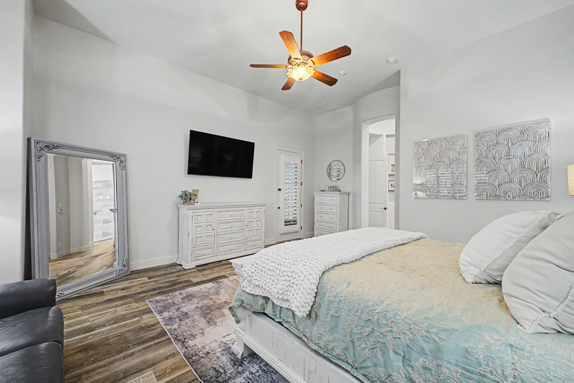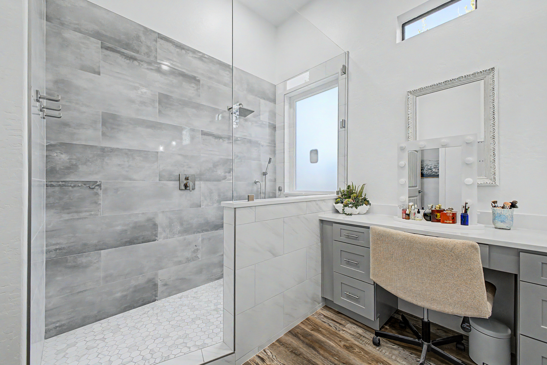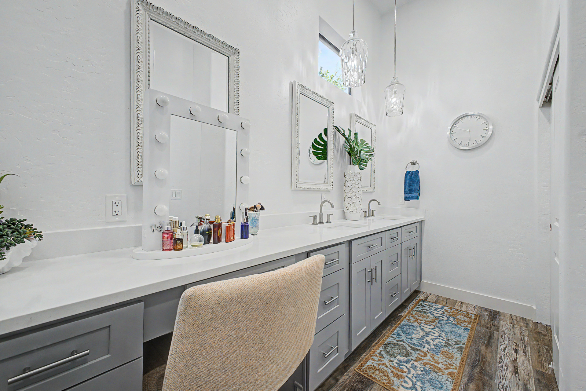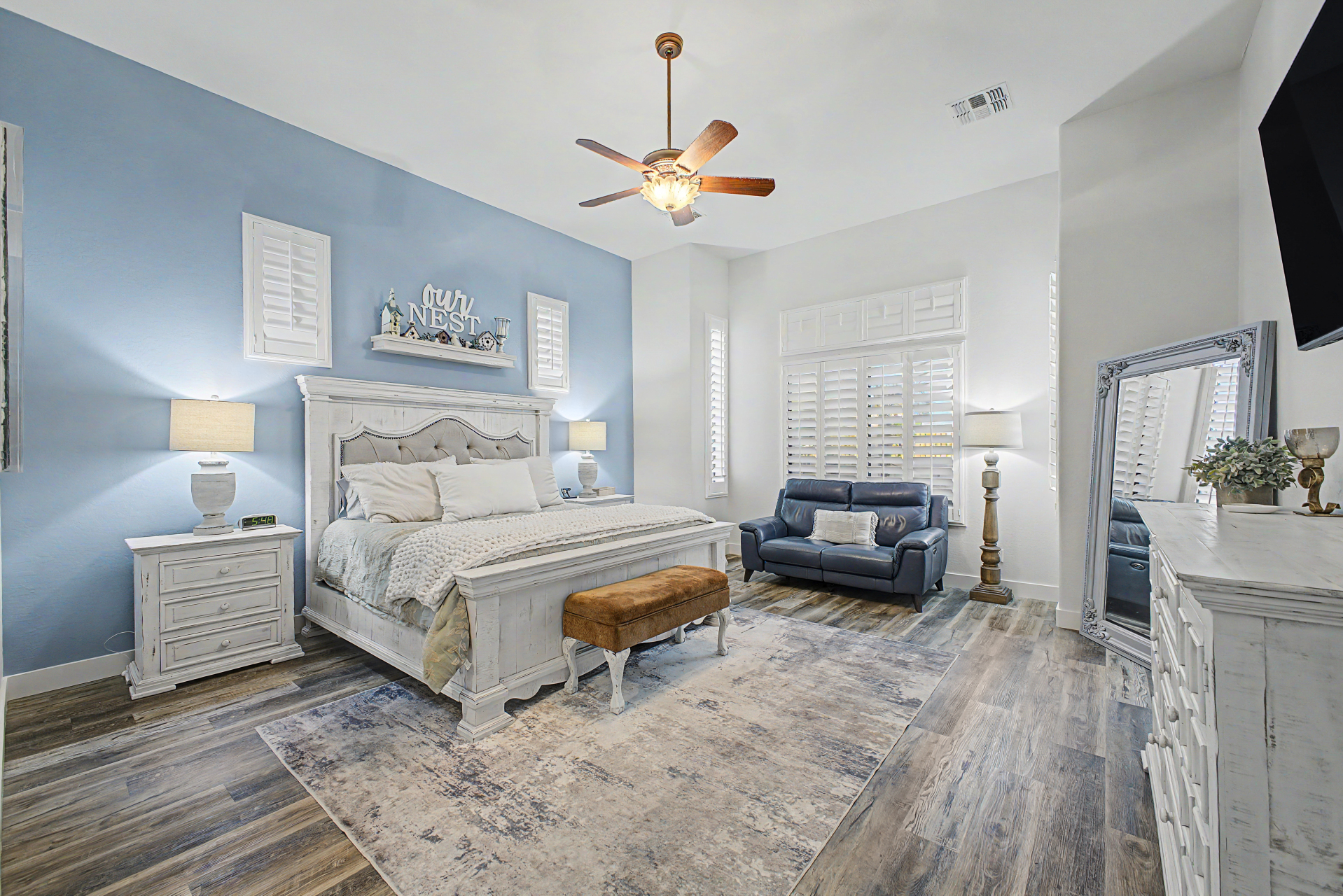 Resort-style living in highly sought-after Mountain Bridge community! This beautifully updated single-level offers 4 beds, 3.5 baths, & private office w/built-ins, all situated on premium lot backing to an expansive desert wash for added privacy & serene views. The open, light-filled floor plan features soaring 12' ceilings, plantation shutters, & stylish updates including flooring, countertops, & backsplash (2020). The primary bath was beautifully remodeled in 2021 with a spacious walk-in shower and spa-like feel. Step outside to your own backyard retreat complete w/ pool & spa & retractable sun screen-perfect for relaxing or entertaining under the AZ sky. Residents enjoy pickle ball, tennis, basketball, frisbee golf, tot lots, scenic walking paths, & the Owner's Club with fitness center.
