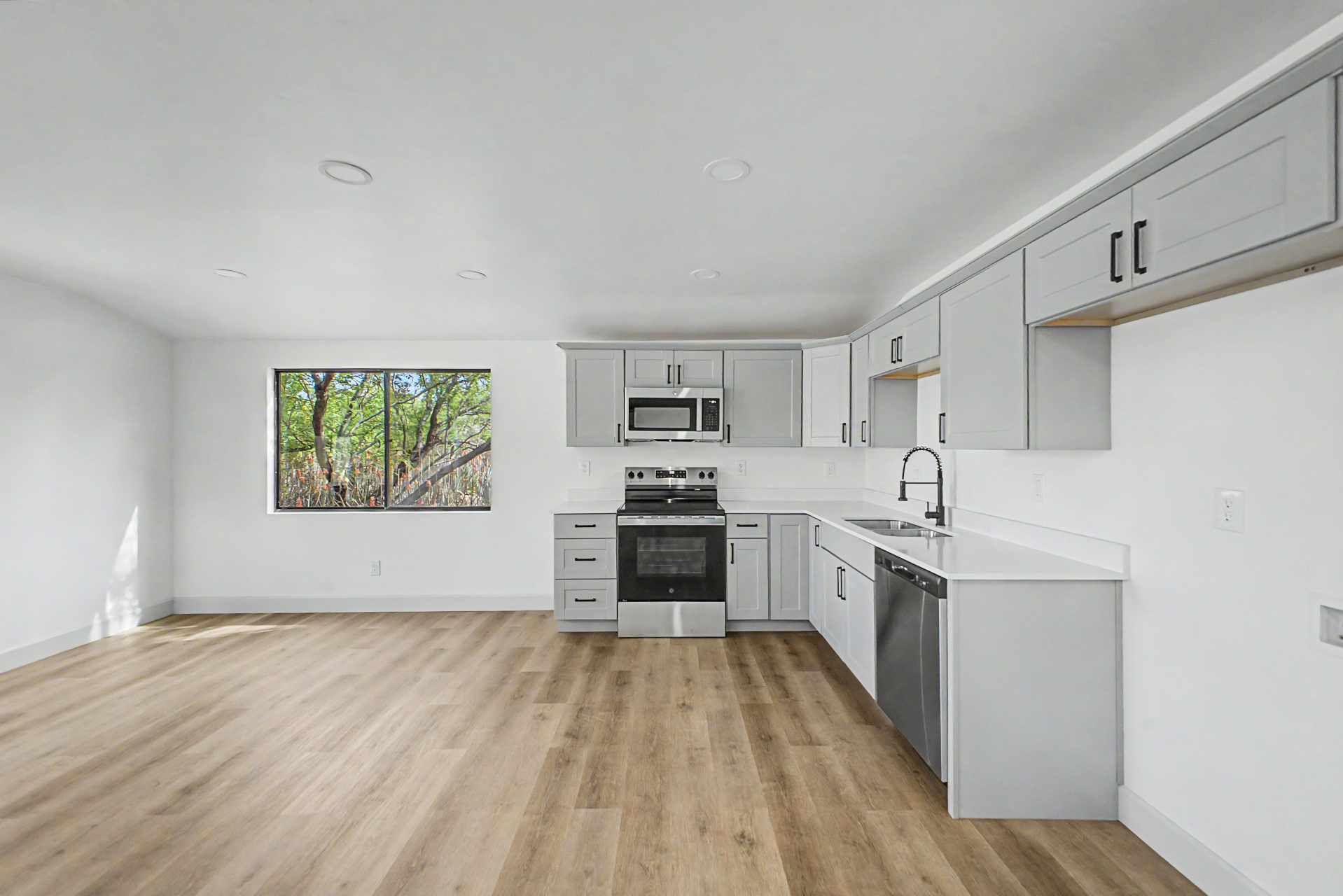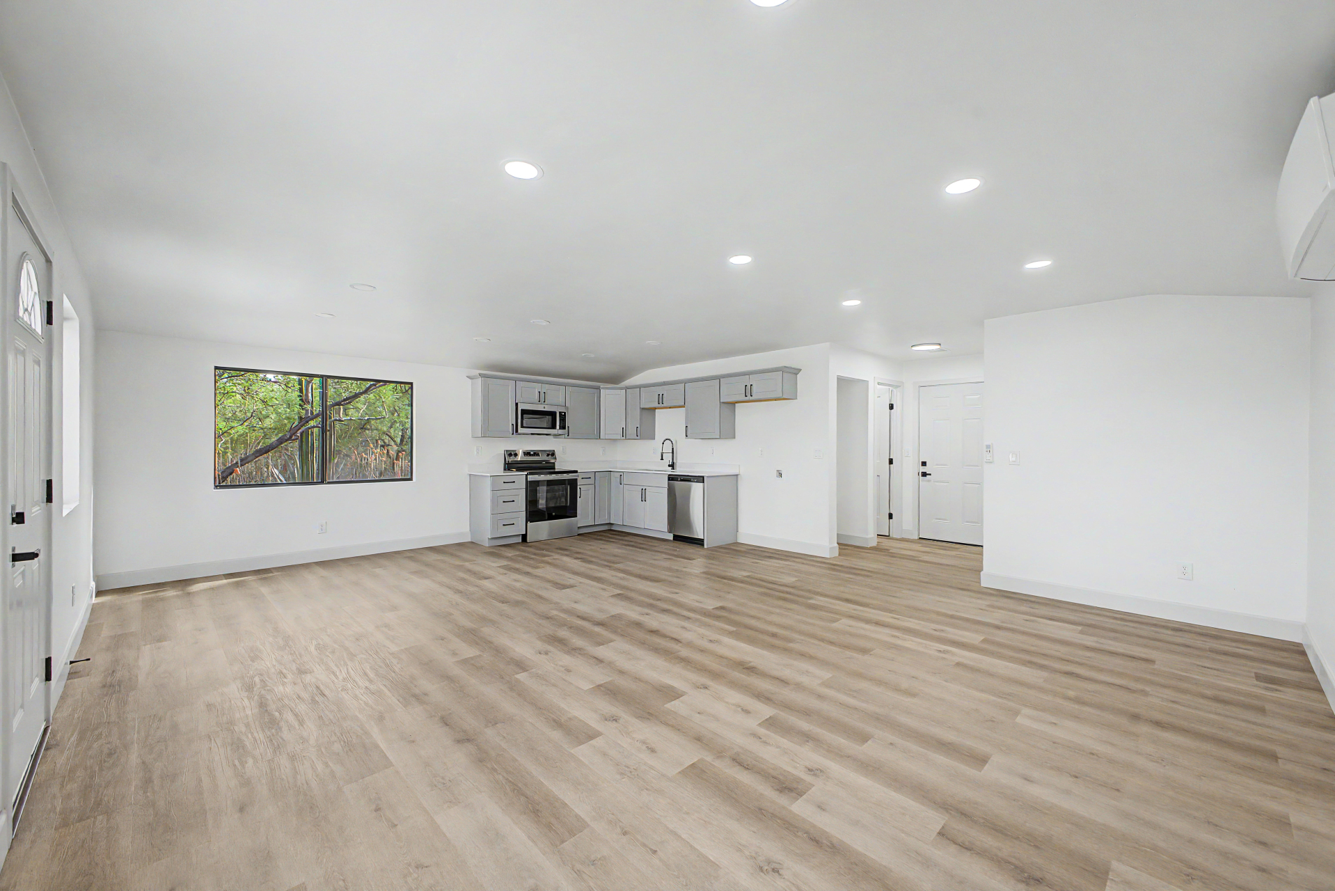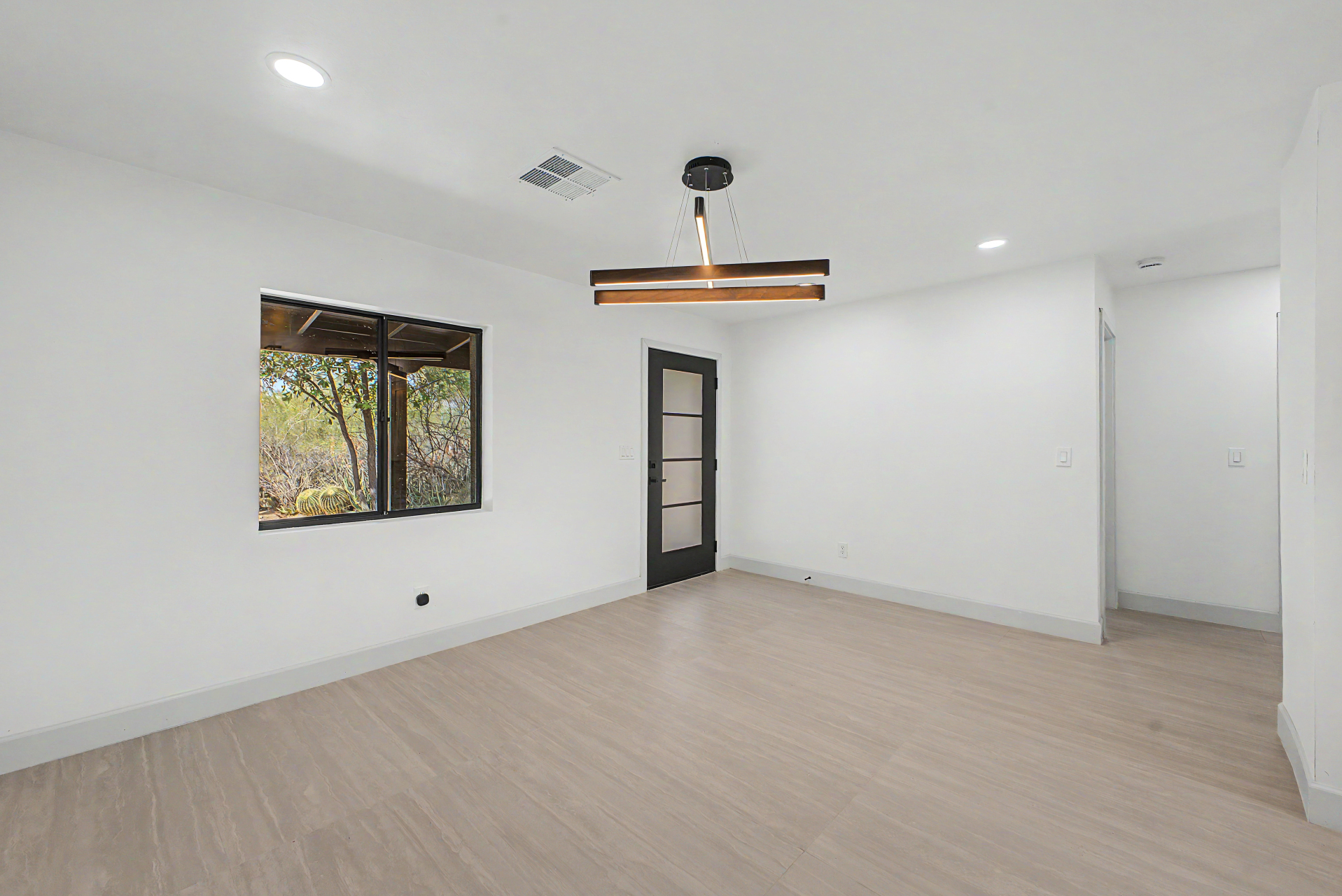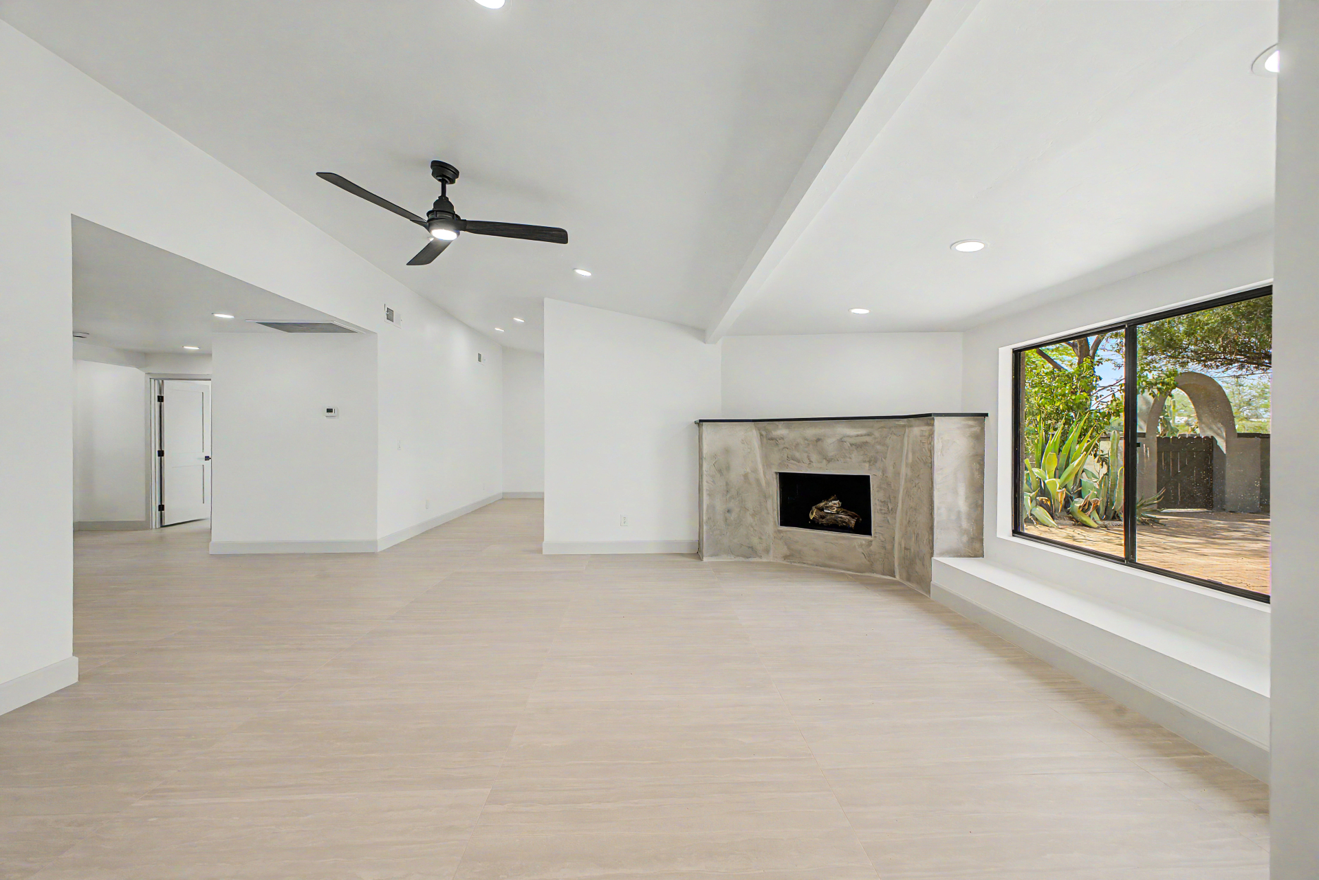 Prepare to be amazed by this beautifully upgraded home, complete w/ solar panels for energy savings! Discover a large living room that sets the stage for gatherings, highlighted by a fireplace. Fresh paint, ceiling fans, wood-look flooring, & recessed lighting create a stylish & inviting atmosphere t/out. Upscale eat-in kitchen boasts abundant cabinetry adorned w/ crown moulding, tile backsplash, stainless steel appliances, quartz counters, & a center island. Spacious main retreat continues to impress w/ exposed beams on the vaulted ceilings, direct outdoor access, an ensuite w/ a designer tile shower, & a walk-in closet. A standout feature of this gem is the fully equipped casita, ideal for guests. Expansive backyard includes a covered patio & a diving pool! A MUST see! Agent/Owner