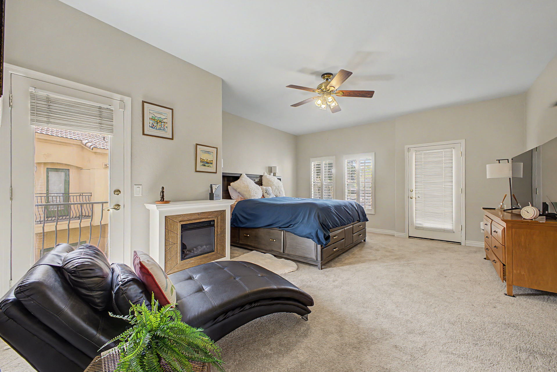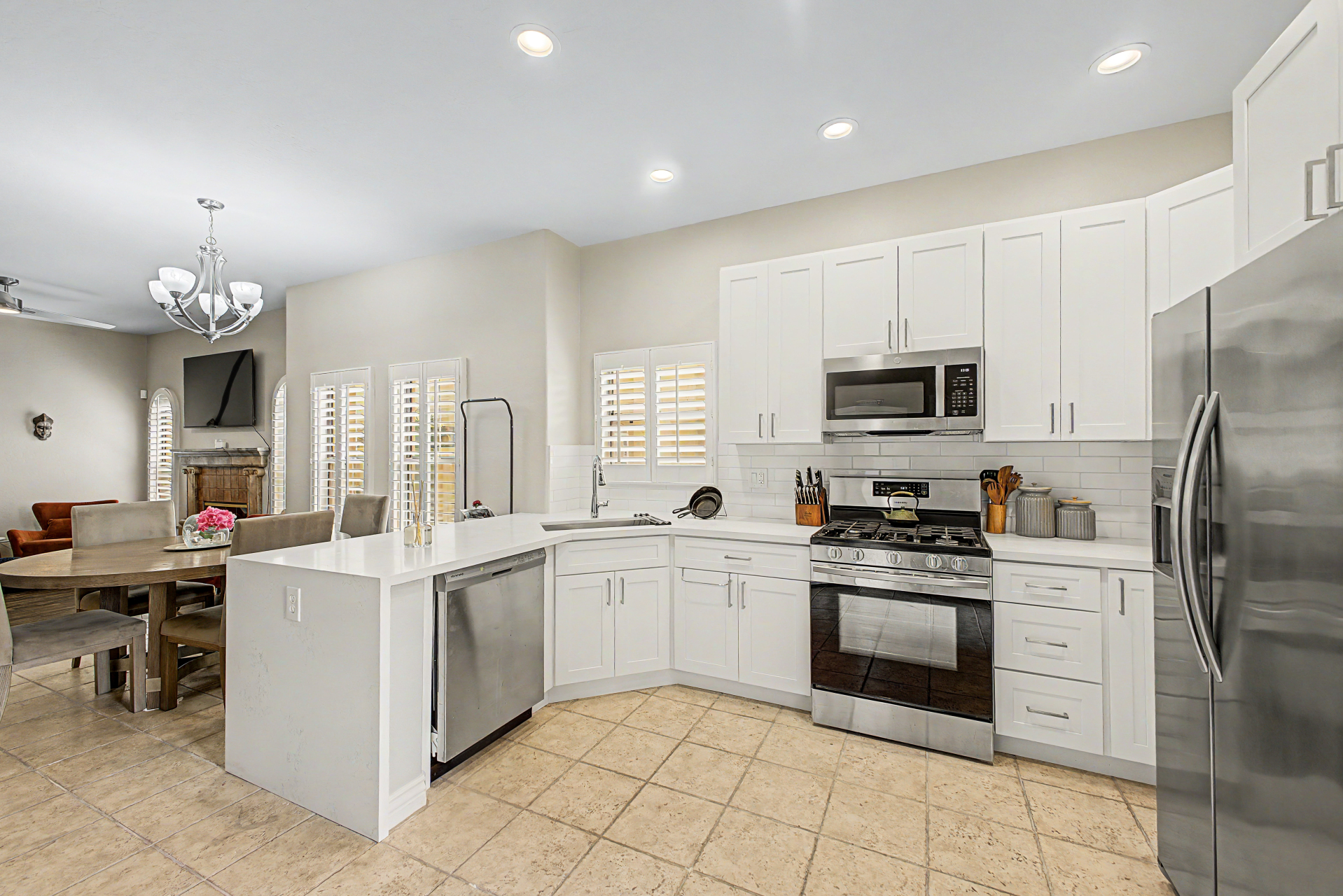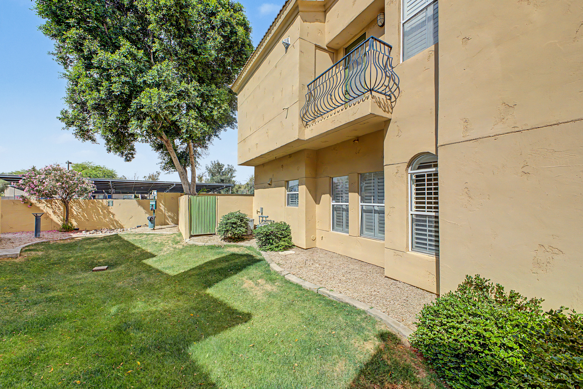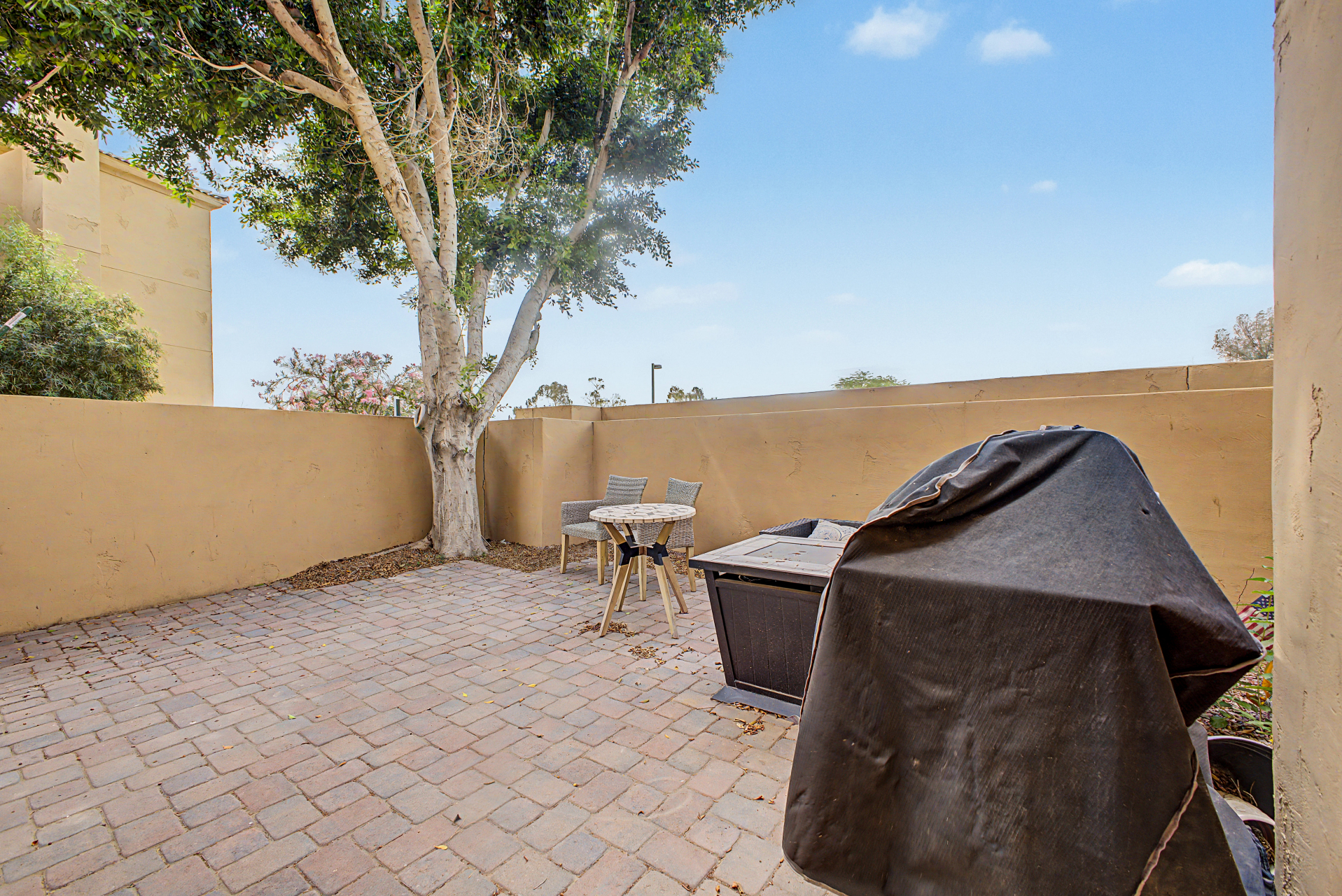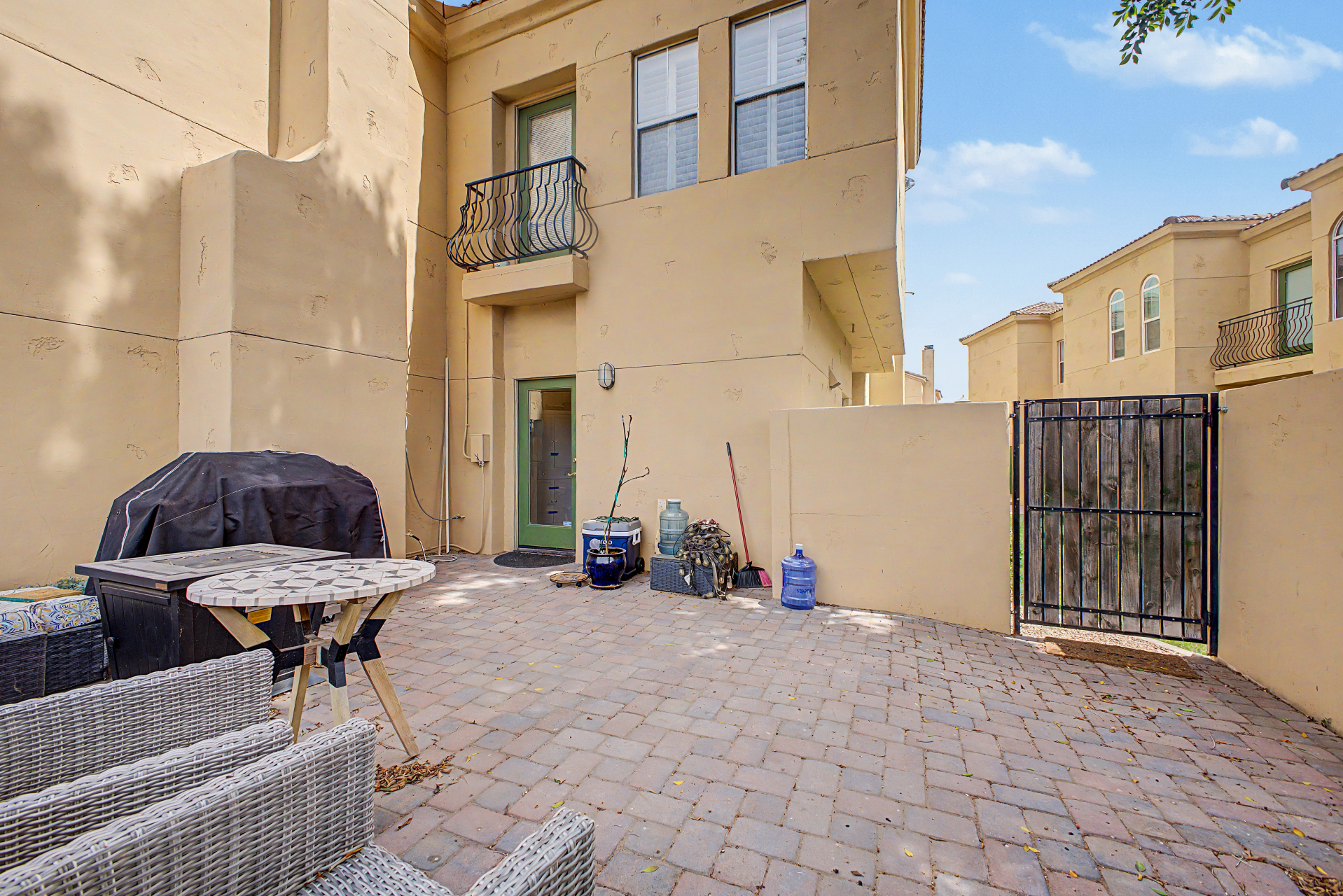 Rare gas cooking & 2-car split garage in gated Tuscany Courts! This bright open floor plan features a 2026 kitchen update with new cabinets & quartz counters. Enjoy plantation shutters, 10ft ceilings, a stone fireplace, and new carpet (2026). The primary suite offers a large walk-in closet, private balcony and expansive bath with double sinks. Move-in ready with a new water heater (2026).The main level's seamless flow leads to a private shady courtyard perfect for relaxing. Upstairs, you will find roomy bedrooms and the laundry area for added convenience. Residents of this gated community enjoy access to the sparkling community pool and spa. Located in the heart of Ahwatukee near South Mountain hiking, shopping, dining, and IKEA. Easy I-10 access. Rentals 30+ days OK!