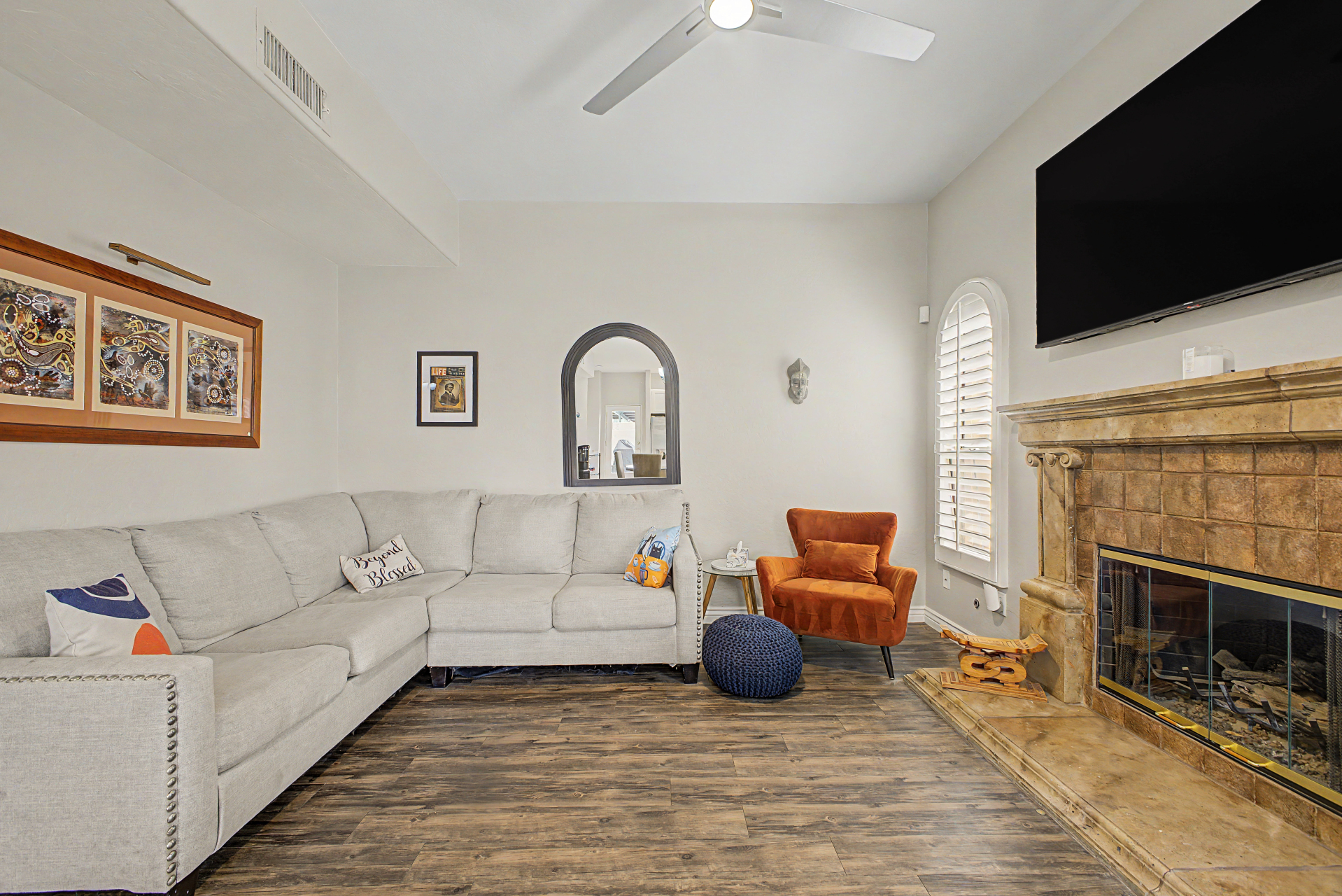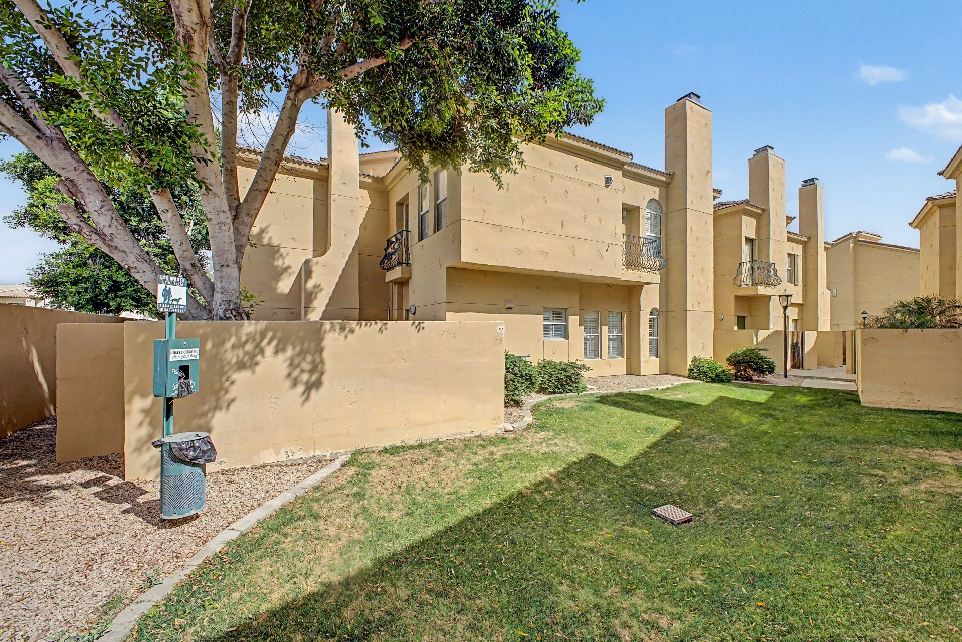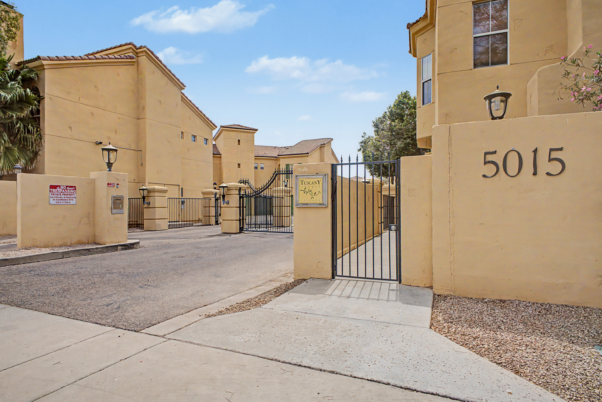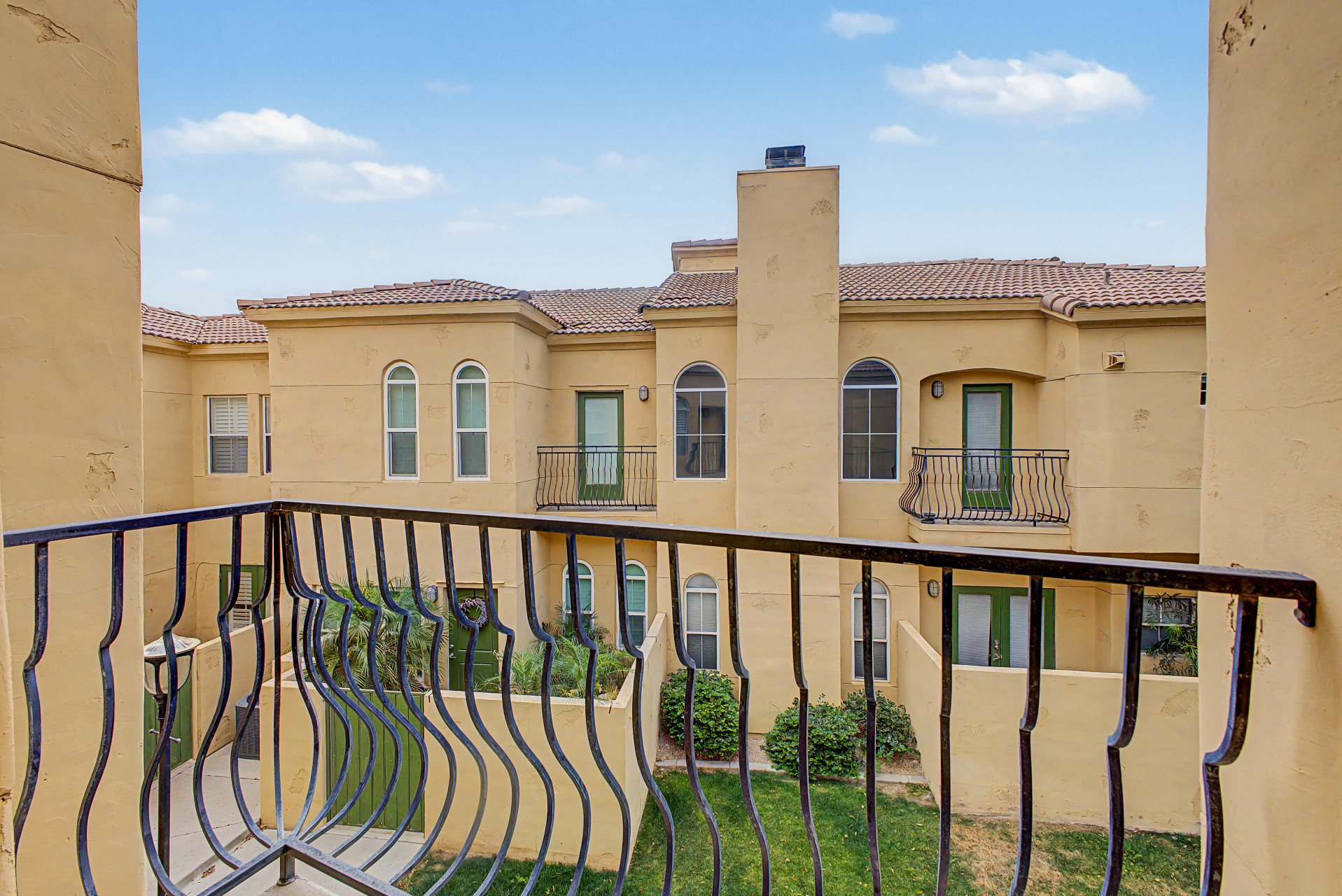 Rare gas cooking & 2-car split garage in gated Tuscany Courts! This bright open floor plan features a 2026 kitchen update with new cabinets & quartz counters. Enjoy plantation shutters, 10ft ceilings, a stone fireplace, and new carpet (2026). The primary suite offers a large walk-in closet, private balcony and expansive bath with double sinks. Move-in ready with a new water heater (2026).The main level's seamless flow leads to a private shady courtyard perfect for relaxing. Upstairs, you will find roomy bedrooms and the laundry area for added convenience. Residents of this gated community enjoy access to the sparkling community pool and spa. Located in the heart of Ahwatukee near South Mountain hiking, shopping, dining, and IKEA. Easy I-10 access. Rentals 30+ days OK!