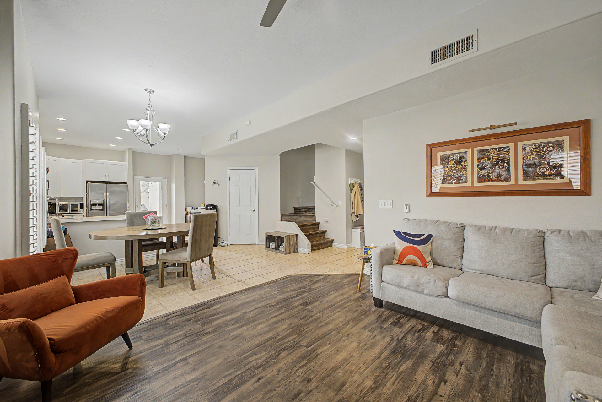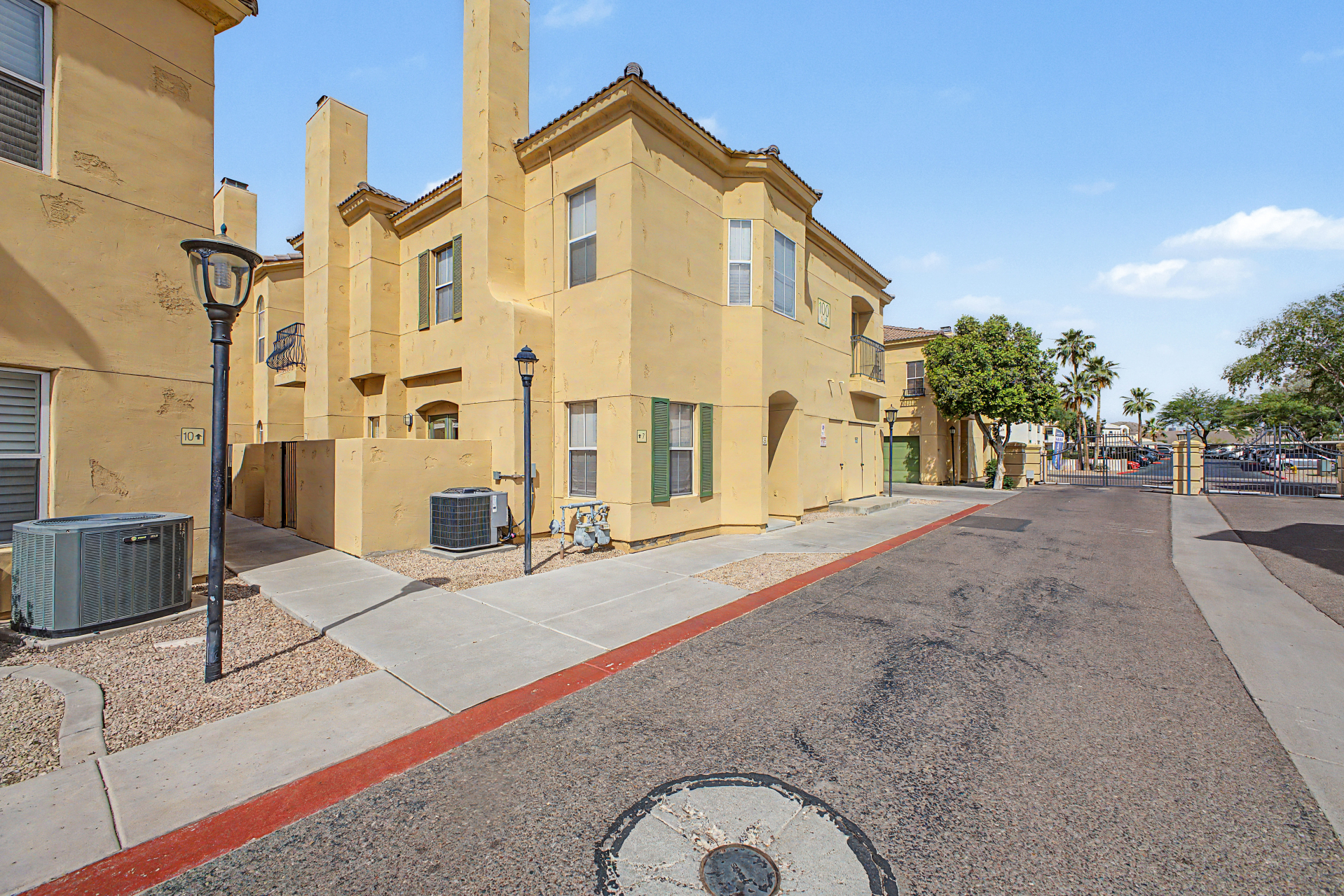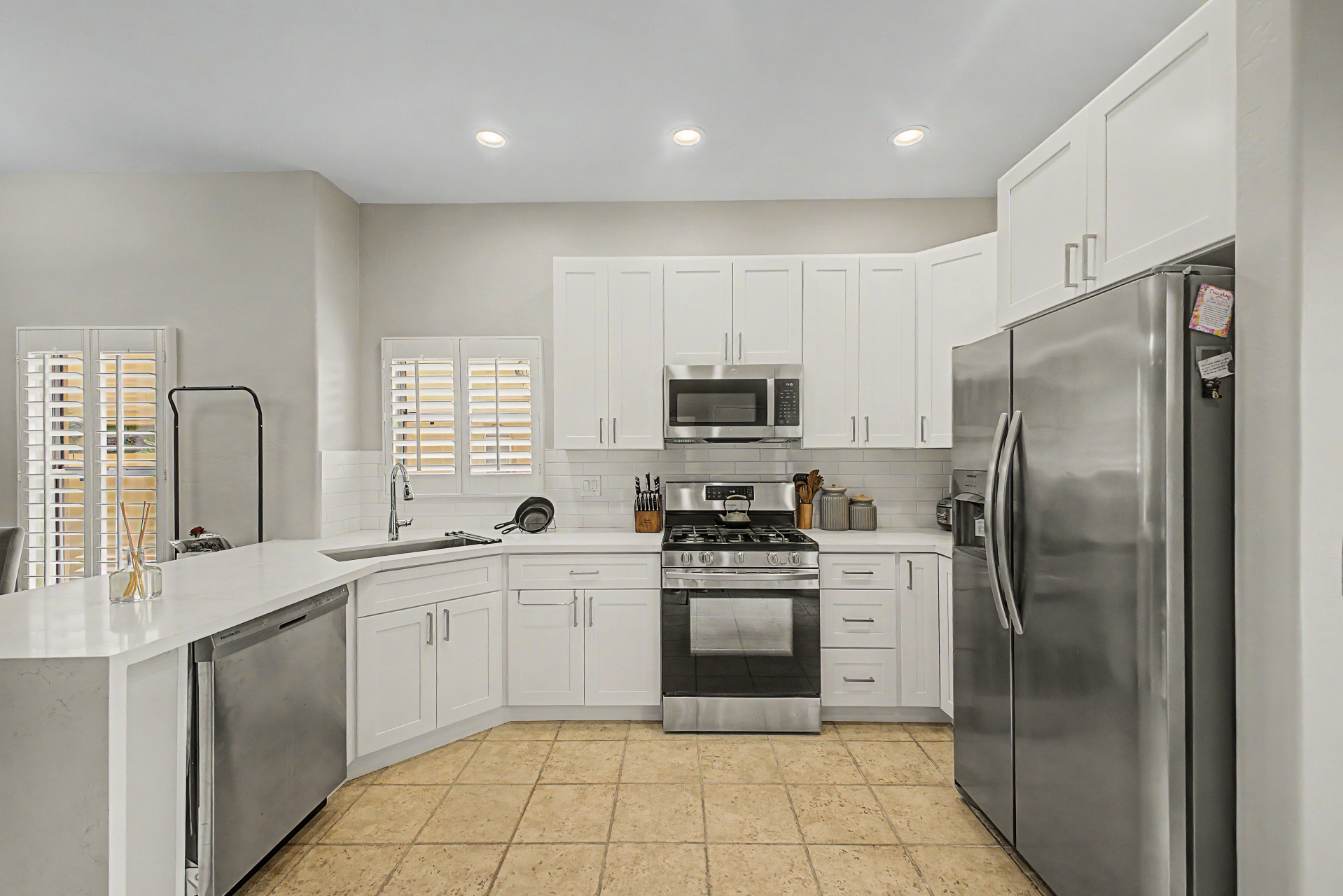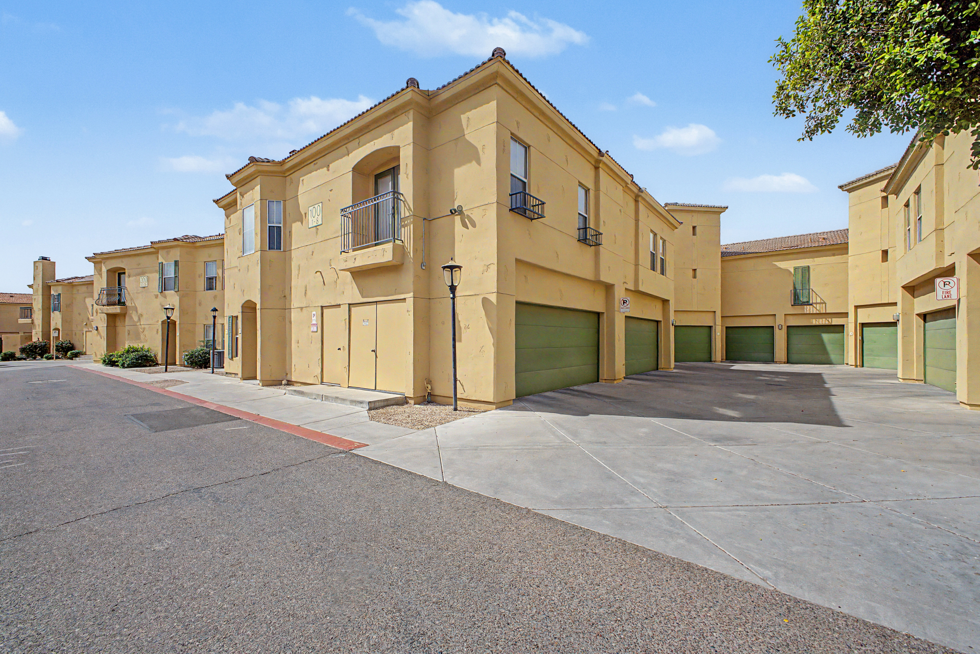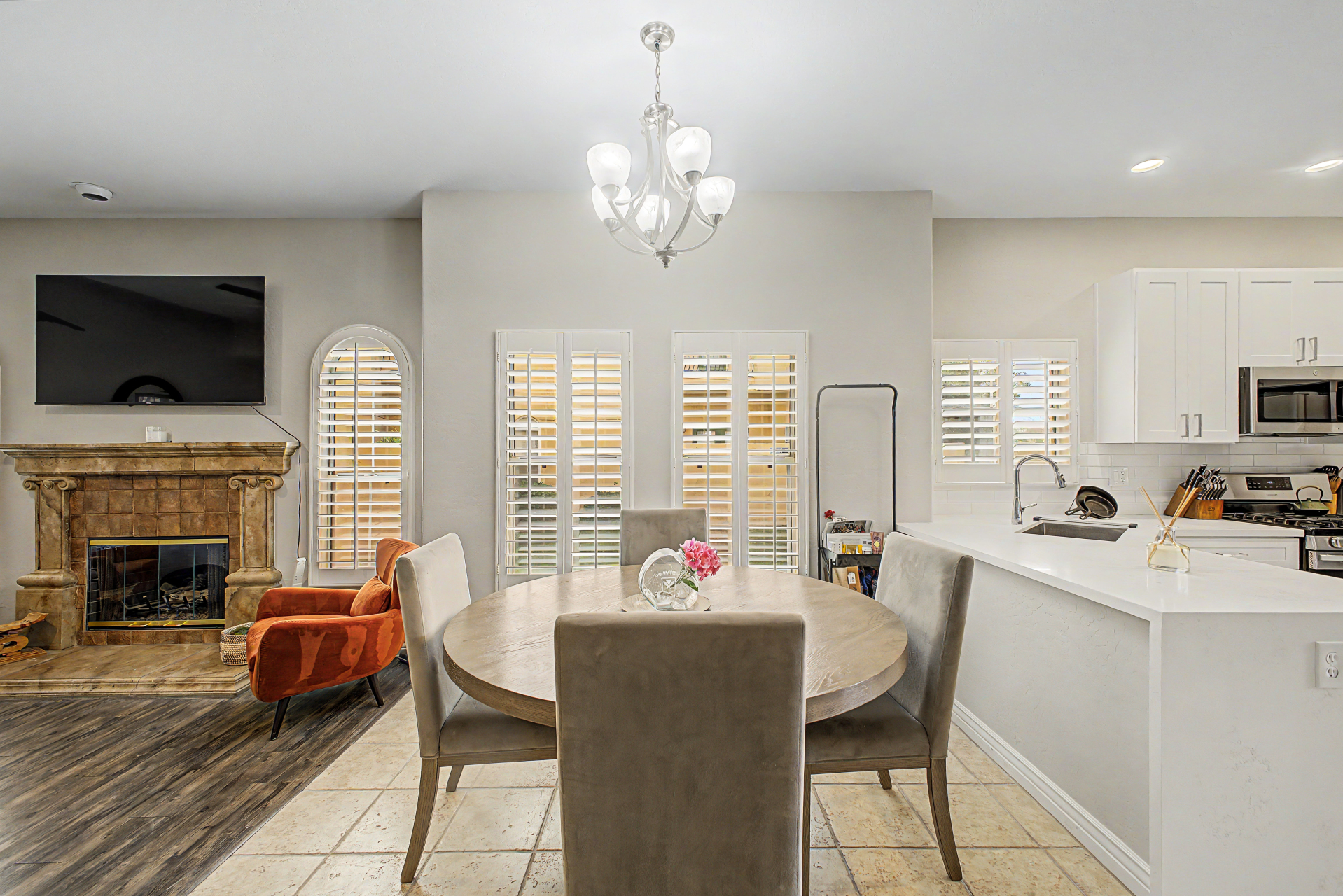 Rare gas cooking & 2-car split garage in gated Tuscany Courts! This bright open floor plan features a 2026 kitchen update with new cabinets & quartz counters. Enjoy plantation shutters, 10ft ceilings, a stone fireplace, and new carpet (2026). The primary suite offers a large walk-in closet, private balcony and expansive bath with double sinks. Move-in ready with a new water heater (2026).The main level's seamless flow leads to a private shady courtyard perfect for relaxing. Upstairs, you will find roomy bedrooms and the laundry area for added convenience. Residents of this gated community enjoy access to the sparkling community pool and spa. Located in the heart of Ahwatukee near South Mountain hiking, shopping, dining, and IKEA. Easy I-10 access. Rentals 30+ days OK!