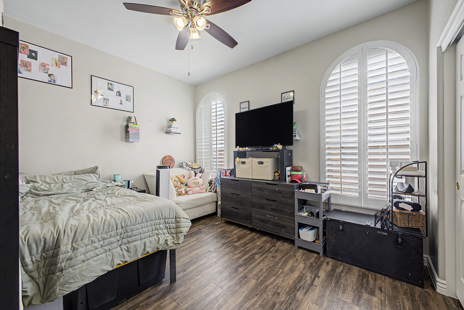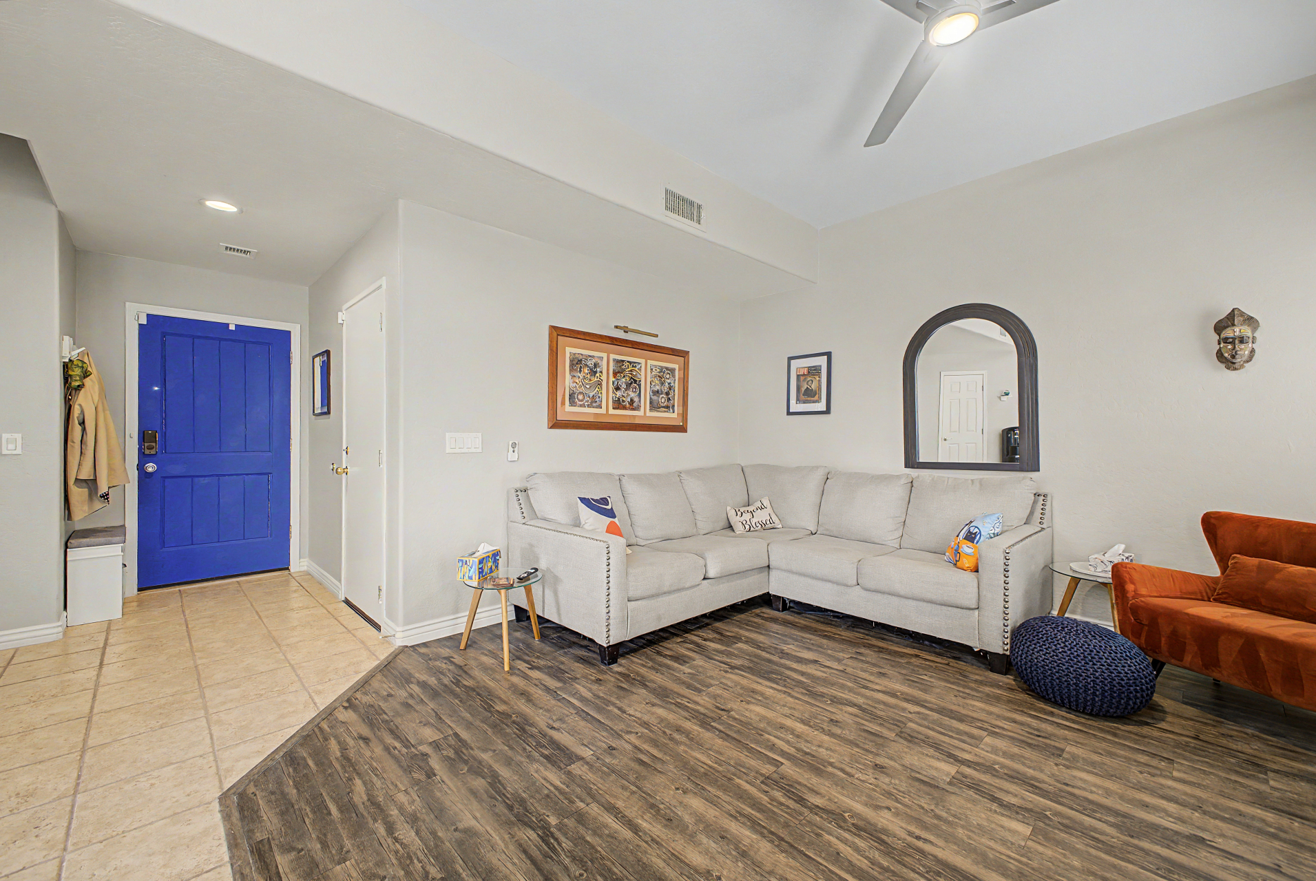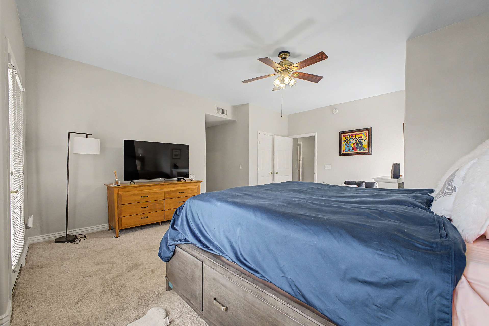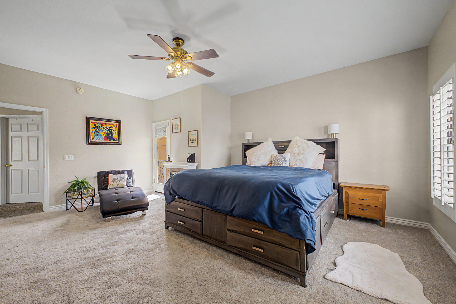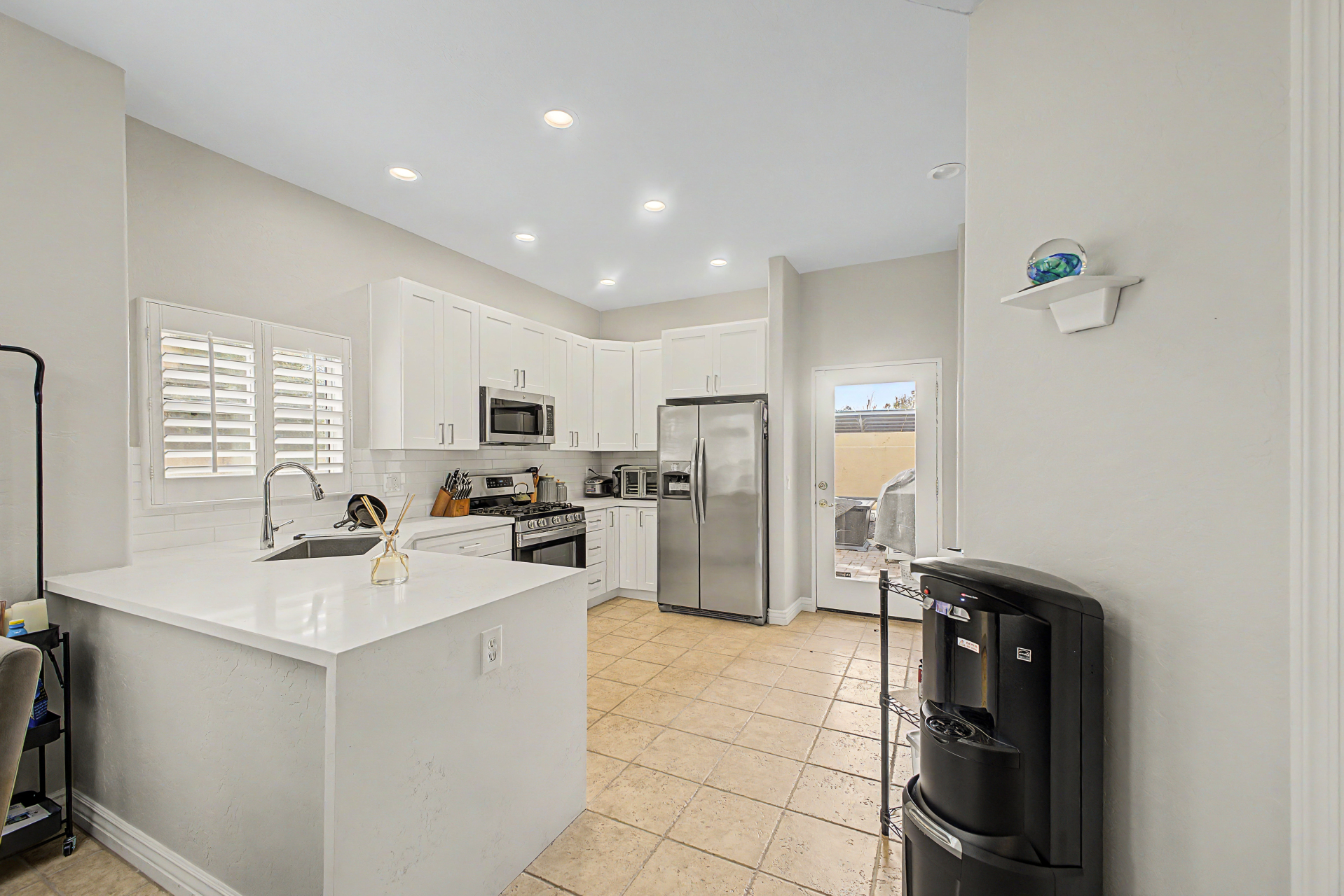 Rare gas cooking & 2-car split garage in gated Tuscany Courts! This bright open floor plan features a 2026 kitchen update with new cabinets & quartz counters. Enjoy plantation shutters, 10ft ceilings, a stone fireplace, and new carpet (2026). The primary suite offers a large walk-in closet, private balcony and expansive bath with double sinks. Move-in ready with a new water heater (2026).The main level's seamless flow leads to a private shady courtyard perfect for relaxing. Upstairs, you will find roomy bedrooms and the laundry area for added convenience. Residents of this gated community enjoy access to the sparkling community pool and spa. Located in the heart of Ahwatukee near South Mountain hiking, shopping, dining, and IKEA. Easy I-10 access. Rentals 30+ days OK!