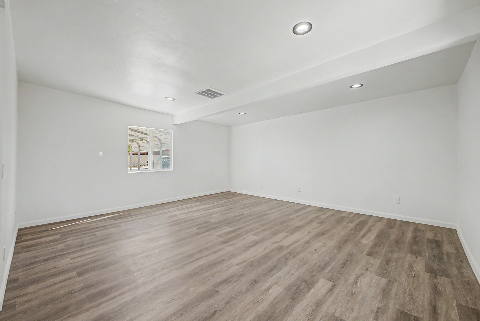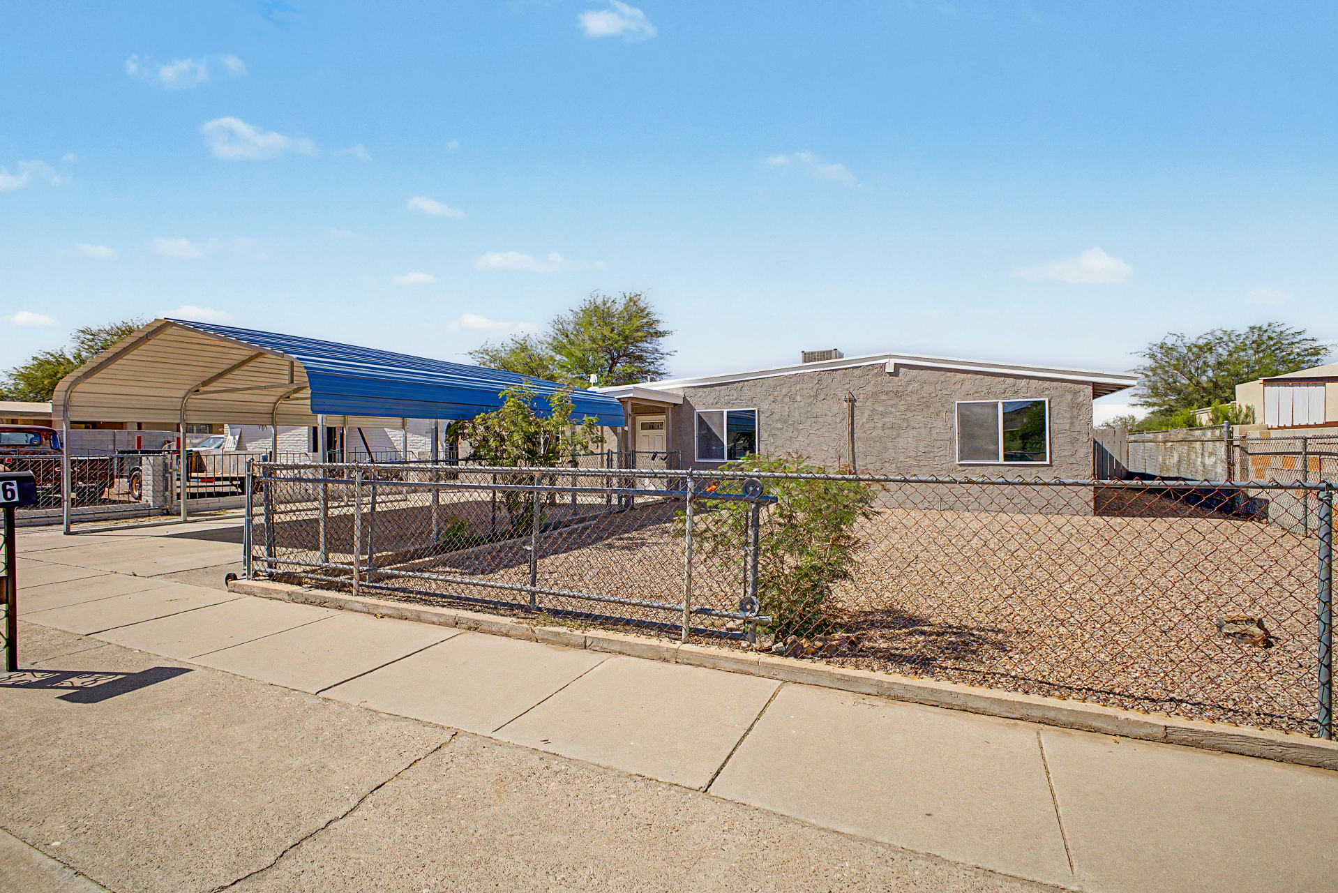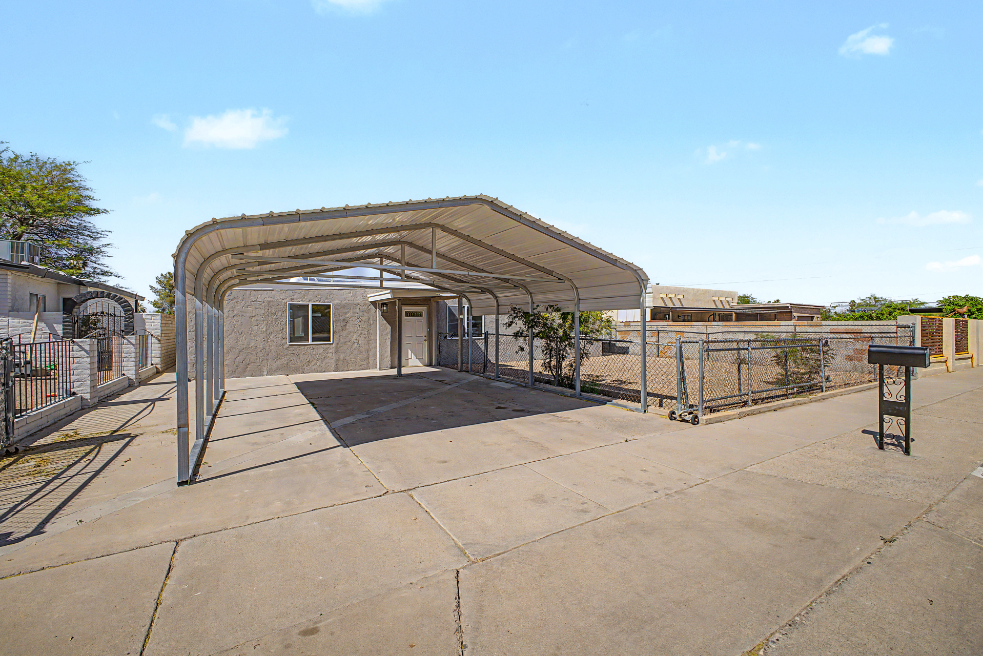 Welcome to this fully gated property! A large front yard & covered carport provide convenience & curb appeal, creating an inviting first impression. Inside, the immaculate interior features wood-style flooring, neutral paint, thick baseboards, & recessed lighting t/out. An oversized living room offers plenty of space to relax, while the bright family/dining area is perfect for everyday living. The galley kitchen showcases rich wood cabinetry, granite counters, & SS microwave. Spacious main bedroom has dual closets & a private bathroom. You'll love the generously sized backyard ready for your personal touch-- envision a garden, outdoor living space, or play area. With no neighbors behind & convenient alley access, you'll enjoy extra privacy & flexibility. A MUST see!