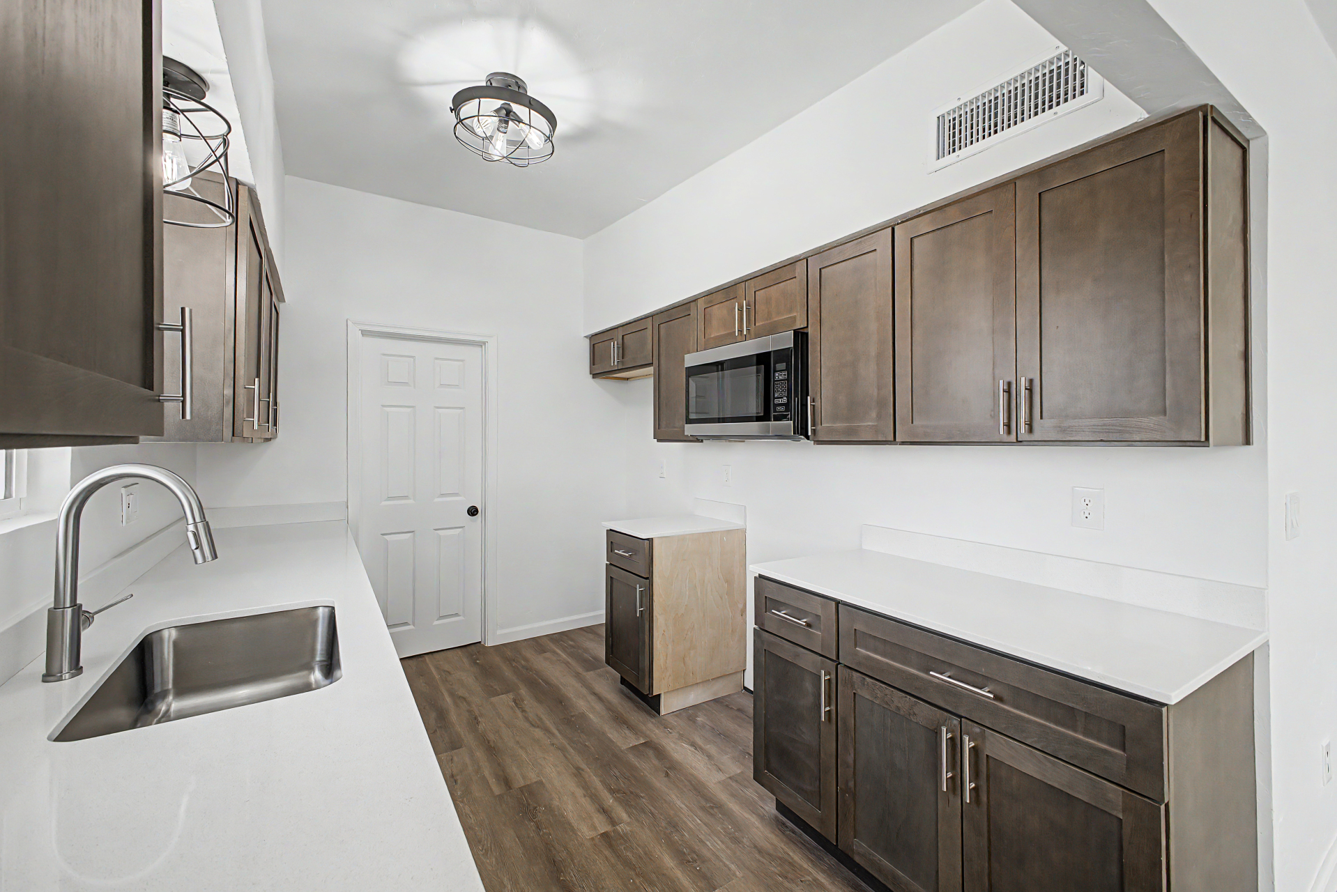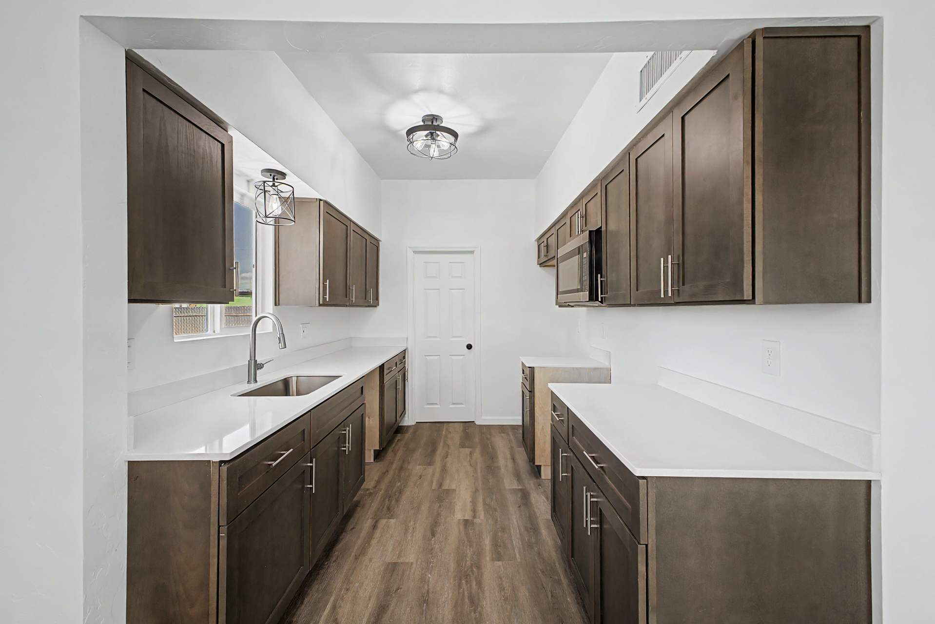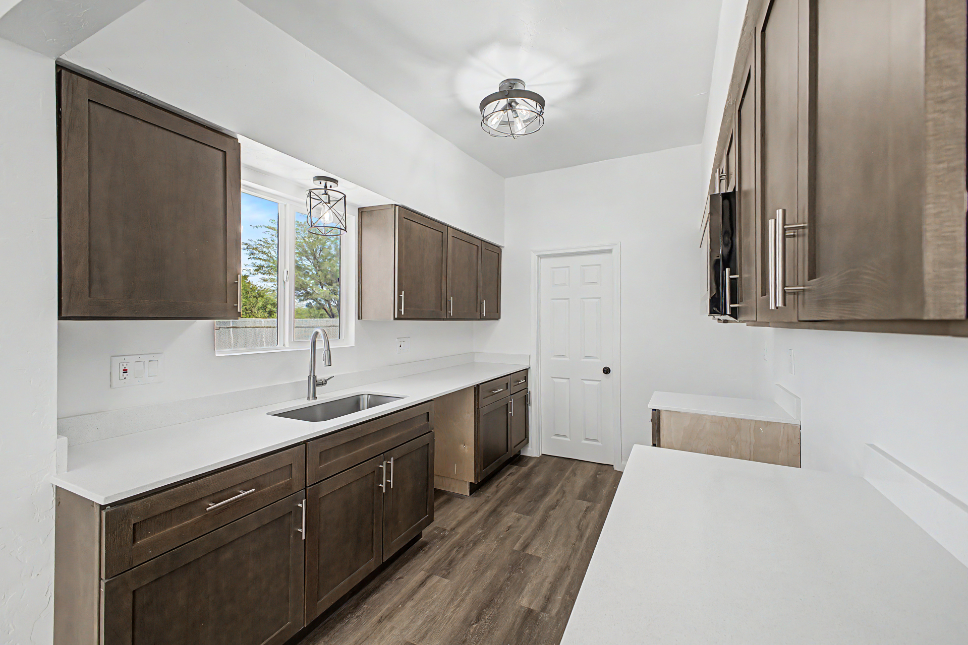 Welcome to this fully gated property! A large front yard & covered carport provide convenience & curb appeal, creating an inviting first impression. Inside, the immaculate interior features wood-style flooring, neutral paint, thick baseboards, & recessed lighting t/out. An oversized living room offers plenty of space to relax, while the bright family/dining area is perfect for everyday living. The galley kitchen showcases rich wood cabinetry, granite counters, & SS microwave. Spacious main bedroom has dual closets & a private bathroom. You'll love the generously sized backyard ready for your personal touch-- envision a garden, outdoor living space, or play area. With no neighbors behind & convenient alley access, you'll enjoy extra privacy & flexibility. A MUST see!