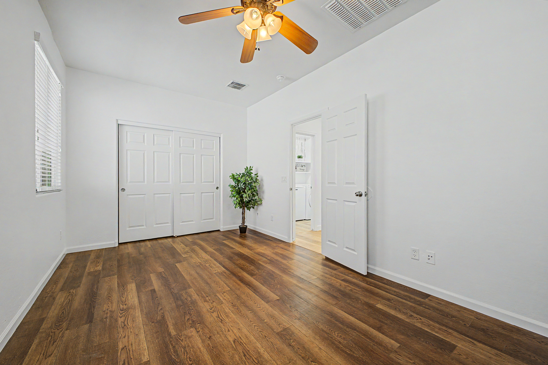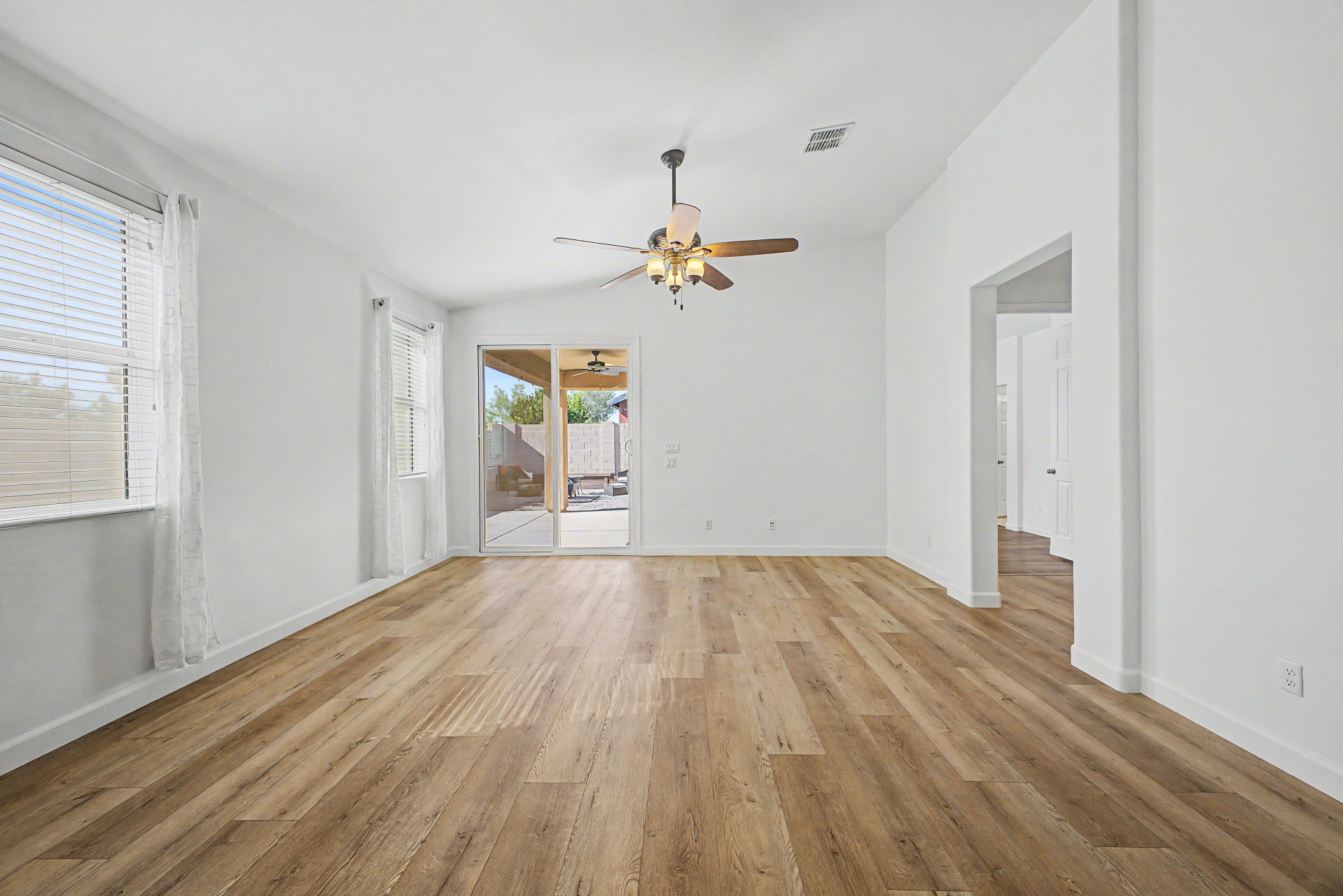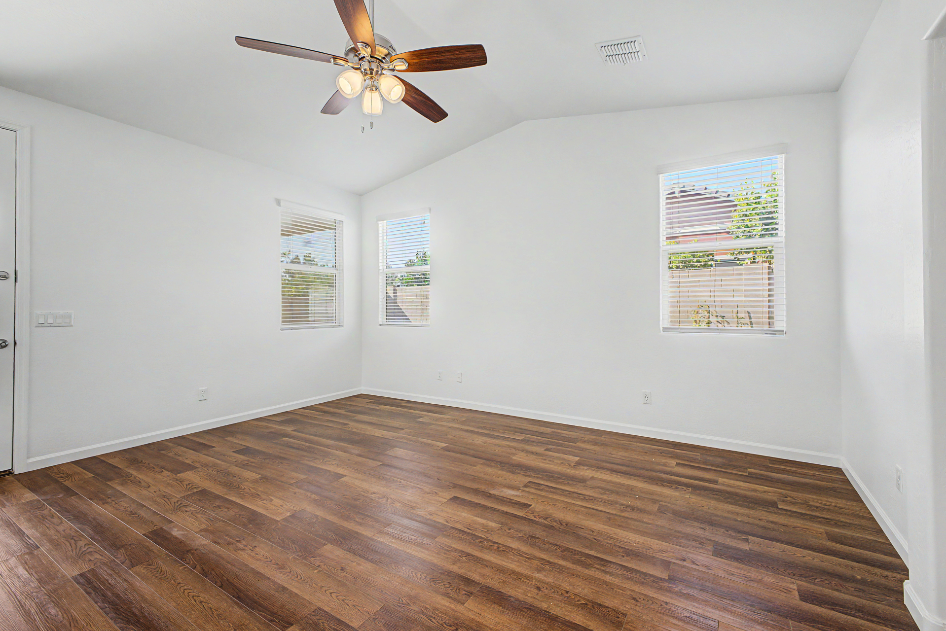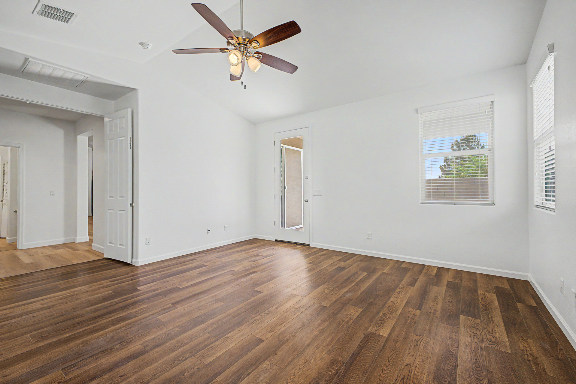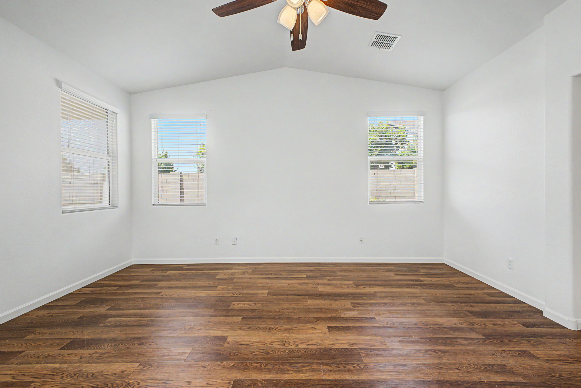 Home, Sweet Home! This beautiful 4 bed, 3 full bath property in Desert Place at Morrison Ranch is Move In Ready! Nestled on a premium corner lot & directly across from Desert Place Park! You'll love the new SS gas range w/5th burner griddle & warming oven, new microwave, new smoke & CO2 detectors, Fresh interior paint, LVP floors installed in 2024, backyard bistro lights, raised planter beds, perfect fire pit w/pavers & rock, EZ care artificial turf & citrus trees! The spacious kitchen has lots of wood cabinets, new hardware, new pull down faucet, filtered water dispenser, plenty of counter space, breakfast bar, large pantry & overlooks the great room! Enjoy your primary retreat with walk-in closet & private exit to the patio! Multiple windows offer natural light to enjoy throughout your