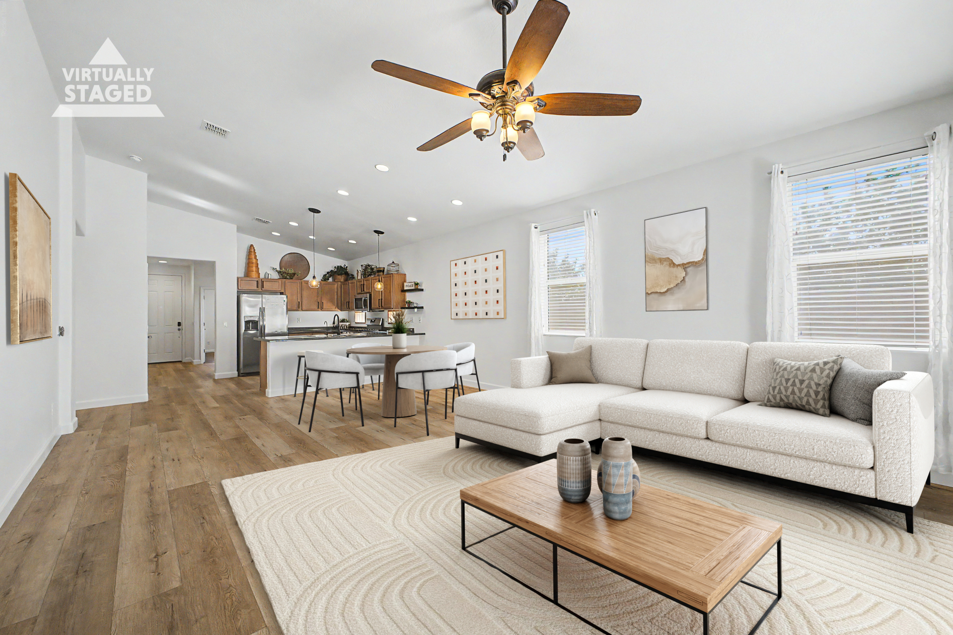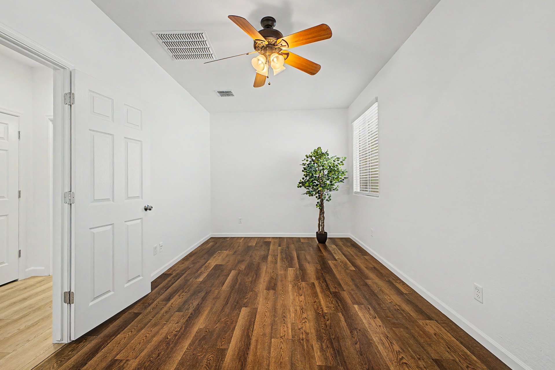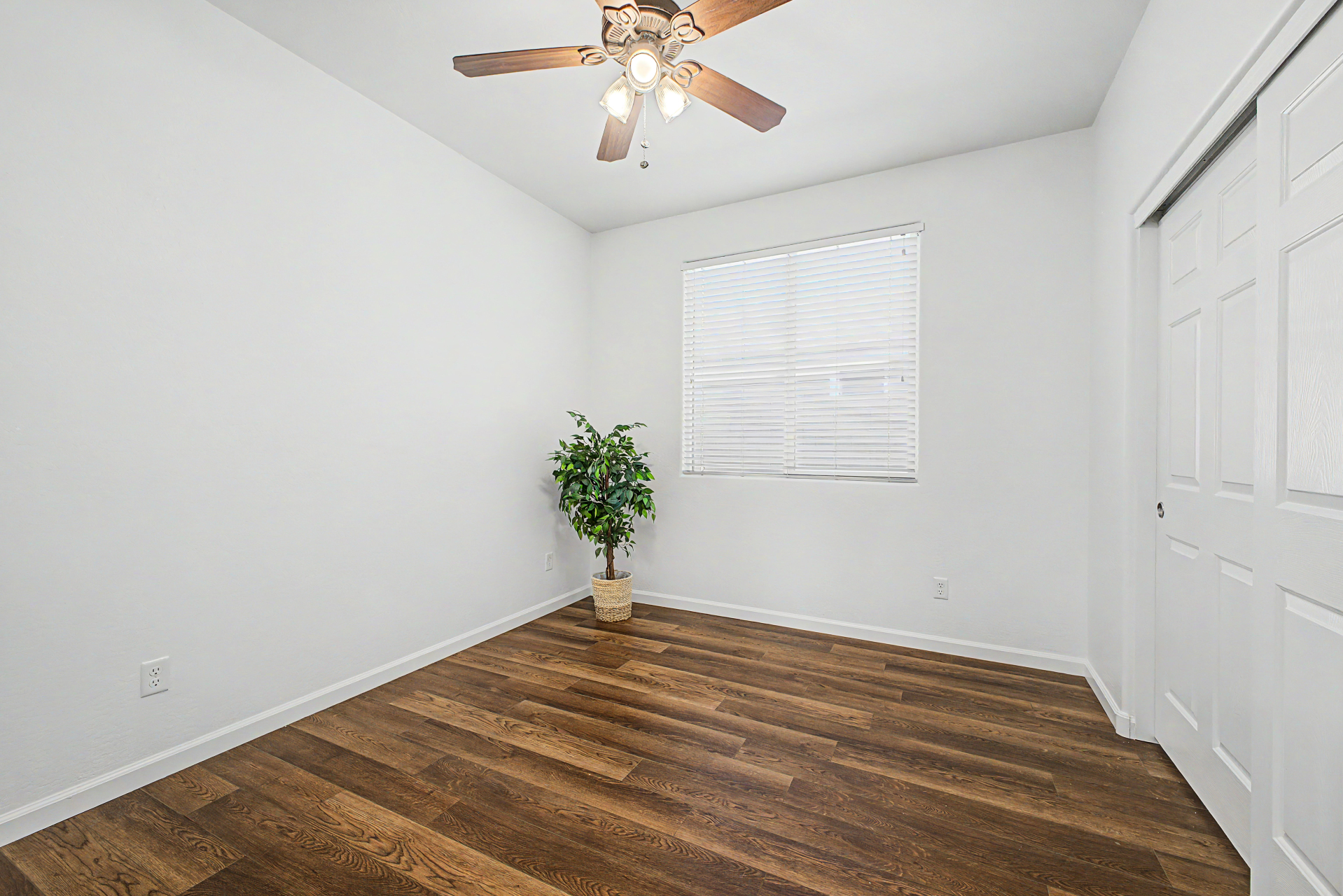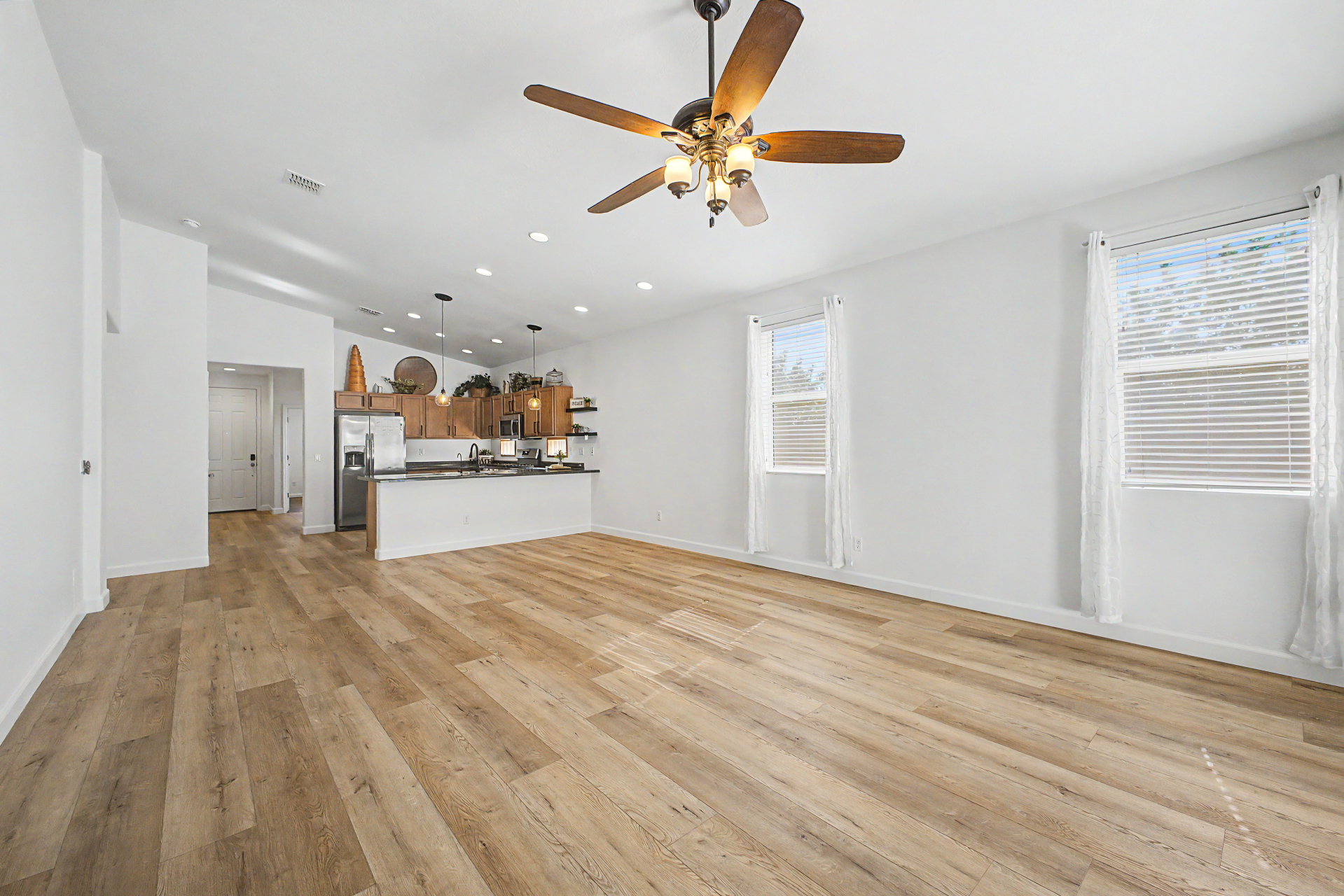 Home, Sweet Home! This beautiful 4 bed, 3 full bath property in Desert Place at Morrison Ranch is Move In Ready! Nestled on a premium corner lot & directly across from Desert Place Park! You'll love the new SS gas range w/5th burner griddle & warming oven, new microwave, new smoke & CO2 detectors, Fresh interior paint, LVP floors installed in 2024, backyard bistro lights, raised planter beds, perfect fire pit w/pavers & rock, EZ care artificial turf & citrus trees! The spacious kitchen has lots of wood cabinets, new hardware, new pull down faucet, filtered water dispenser, plenty of counter space, breakfast bar, large pantry & overlooks the great room! Enjoy your primary retreat with walk-in closet & private exit to the patio! Multiple windows offer natural light to enjoy throughout your