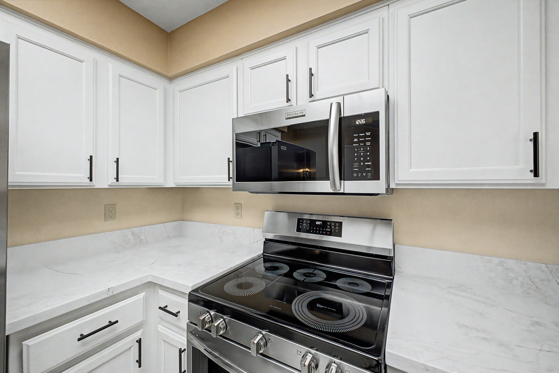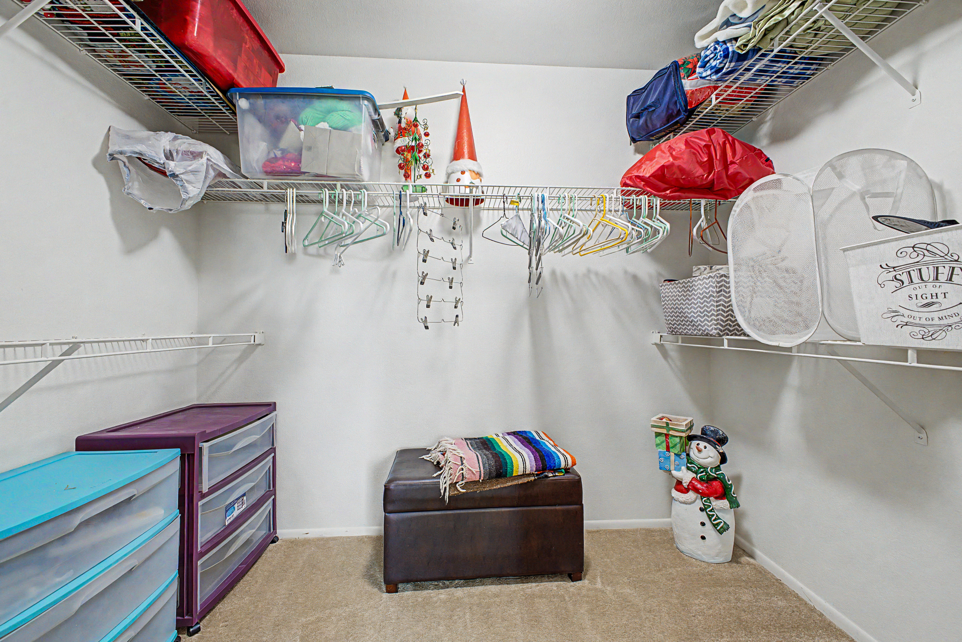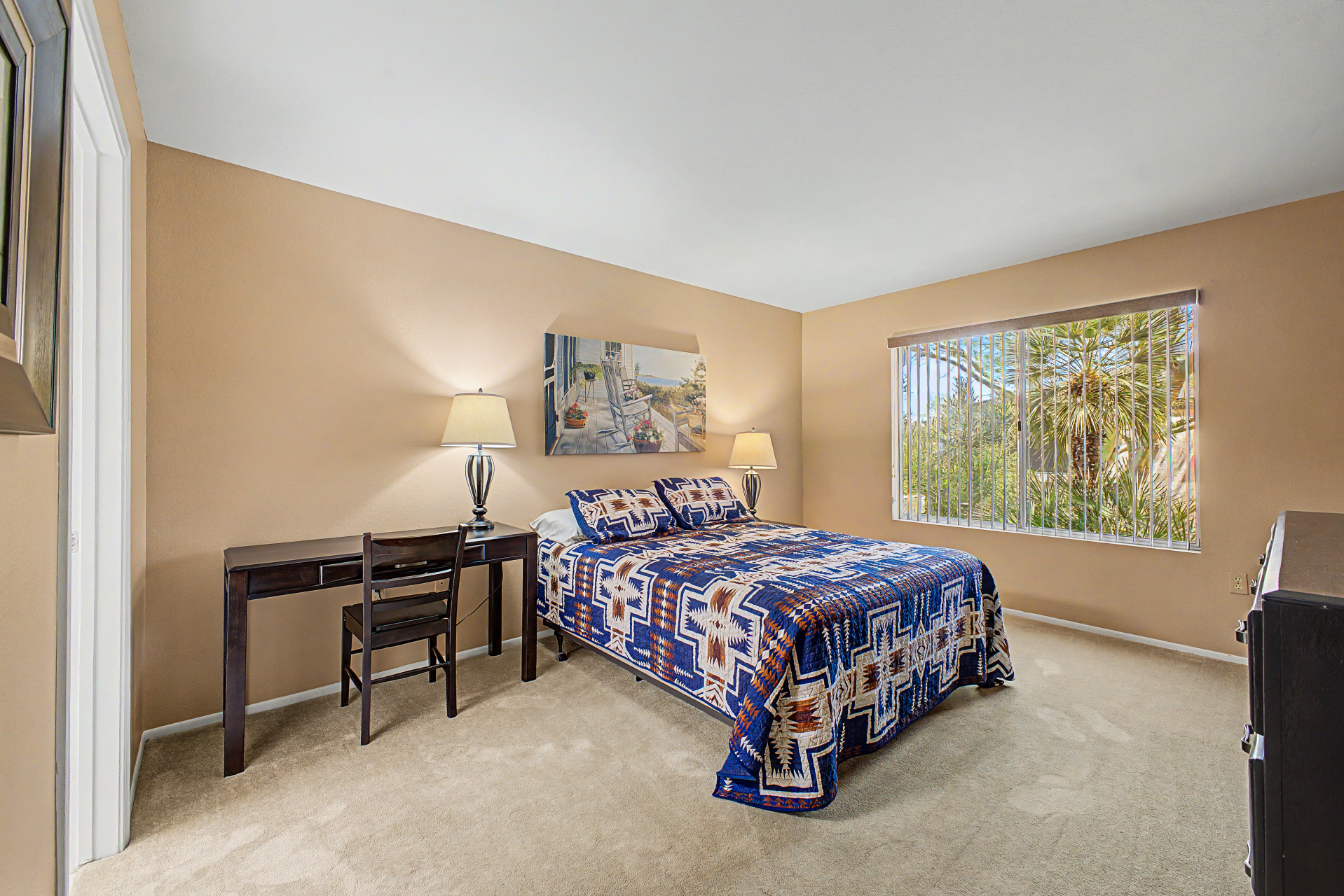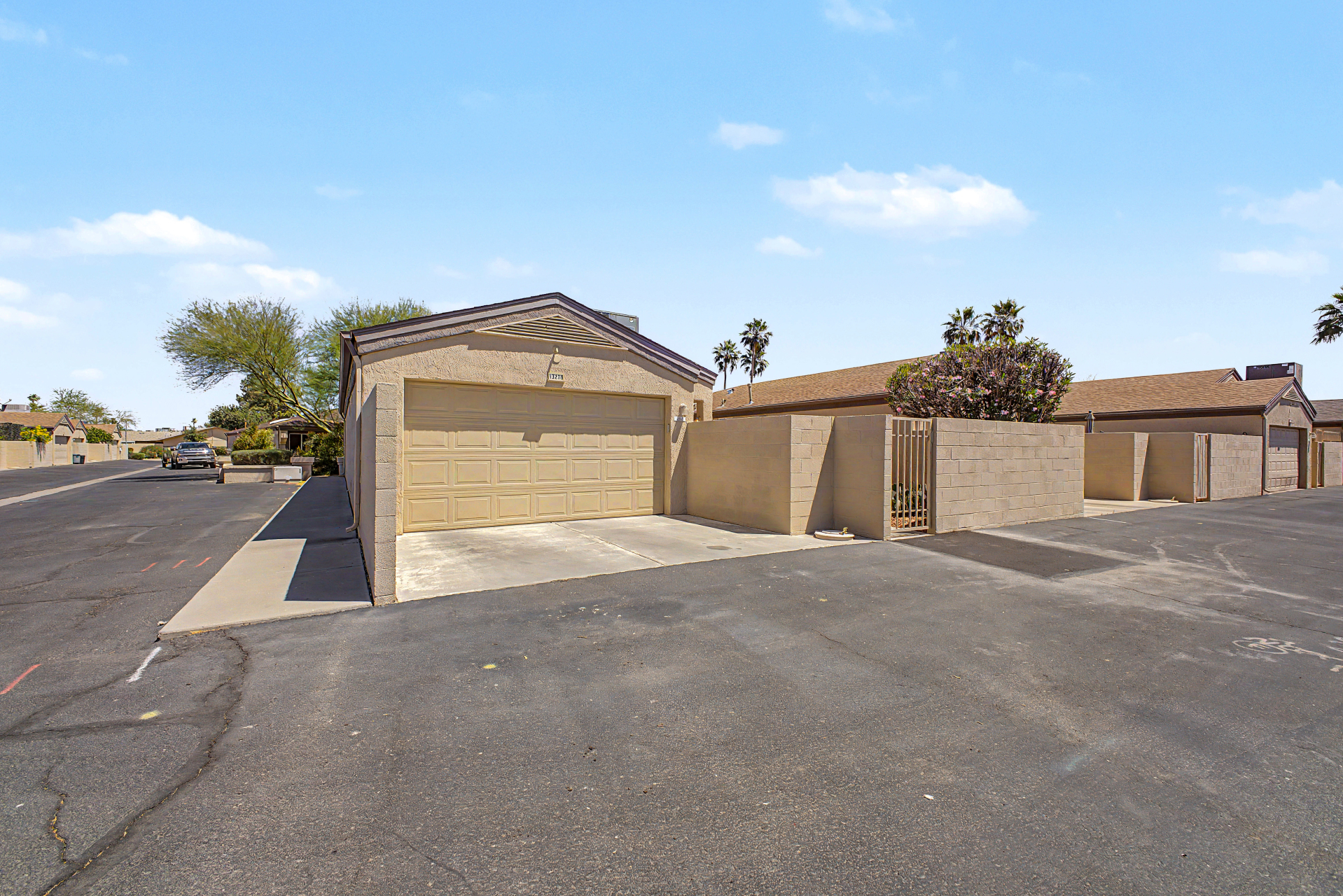 Welcome to this inviting Mojave model featuring a bright, open kitchen with white cabinetry, quartz countertops, stainless steel appliances, and a convenient breakfast bar overlooking the living area. The spacious primary suite offers plenty of room to relax, while the additional bedrooms provide flexibility for family, guests, or a home office. The home boasts updated bathrooms, including a generous guest bath with a large vanity and shower/tub combo. You'll also appreciate the inside laundry room and ample storage throughout, including a well-organized walk-in closet with shelving. Step outside to enjoy your private backyard oasis, complete with a covered patio and low-maintenance desert landscaping with mature plants, cacti, and colorful accents--perfect for entertaining.