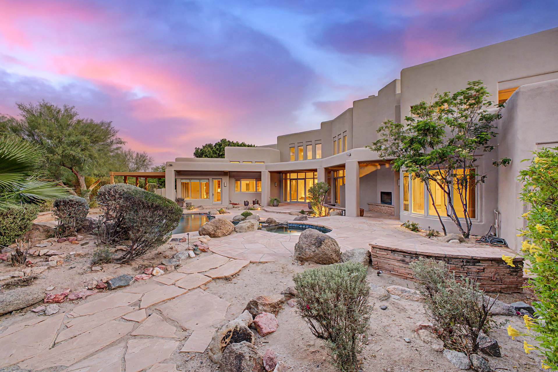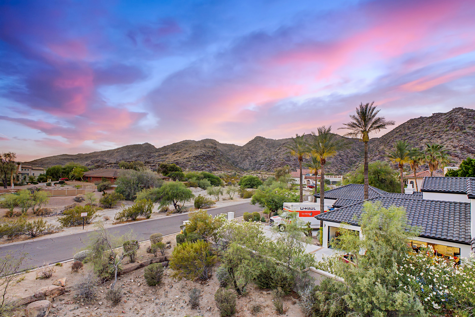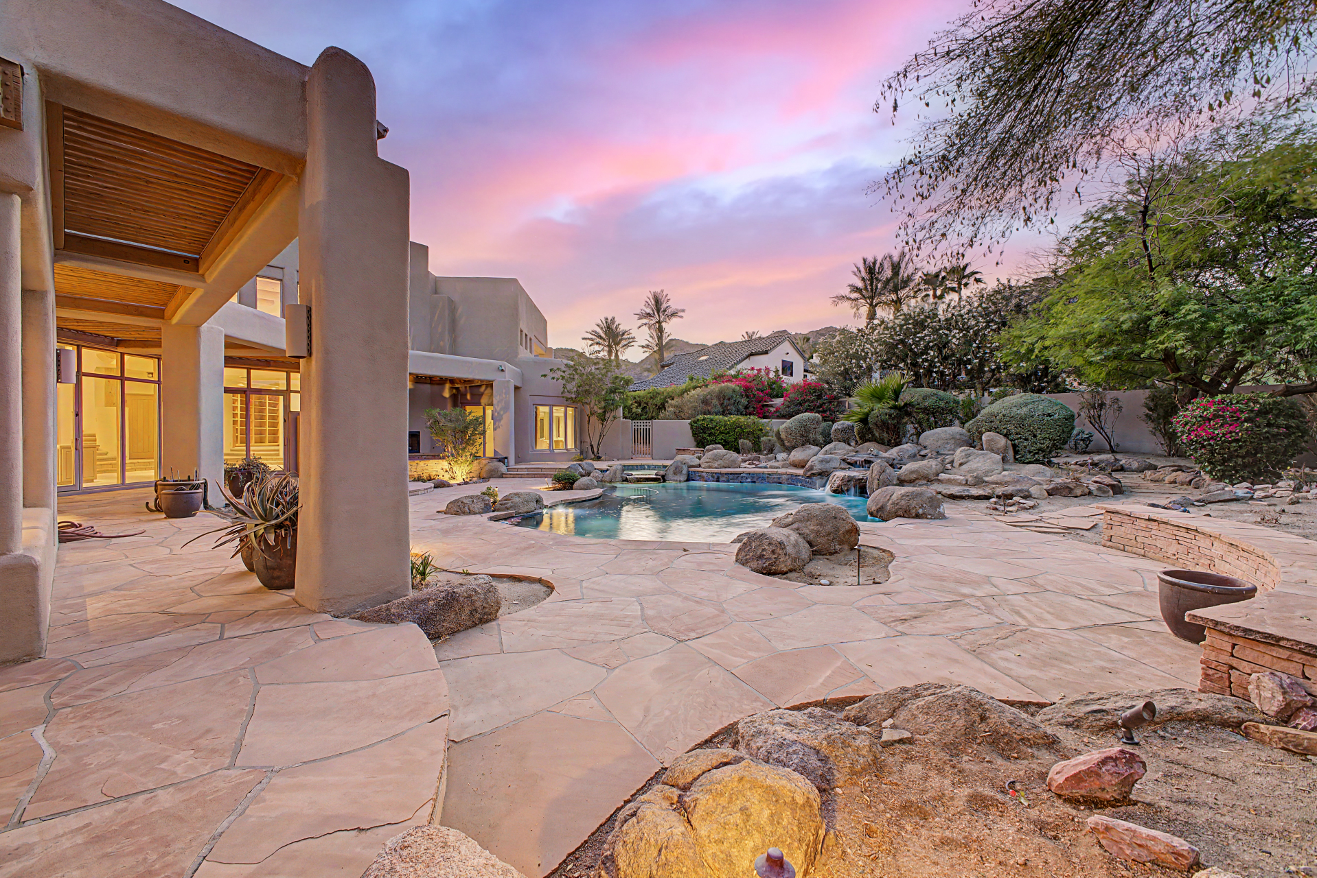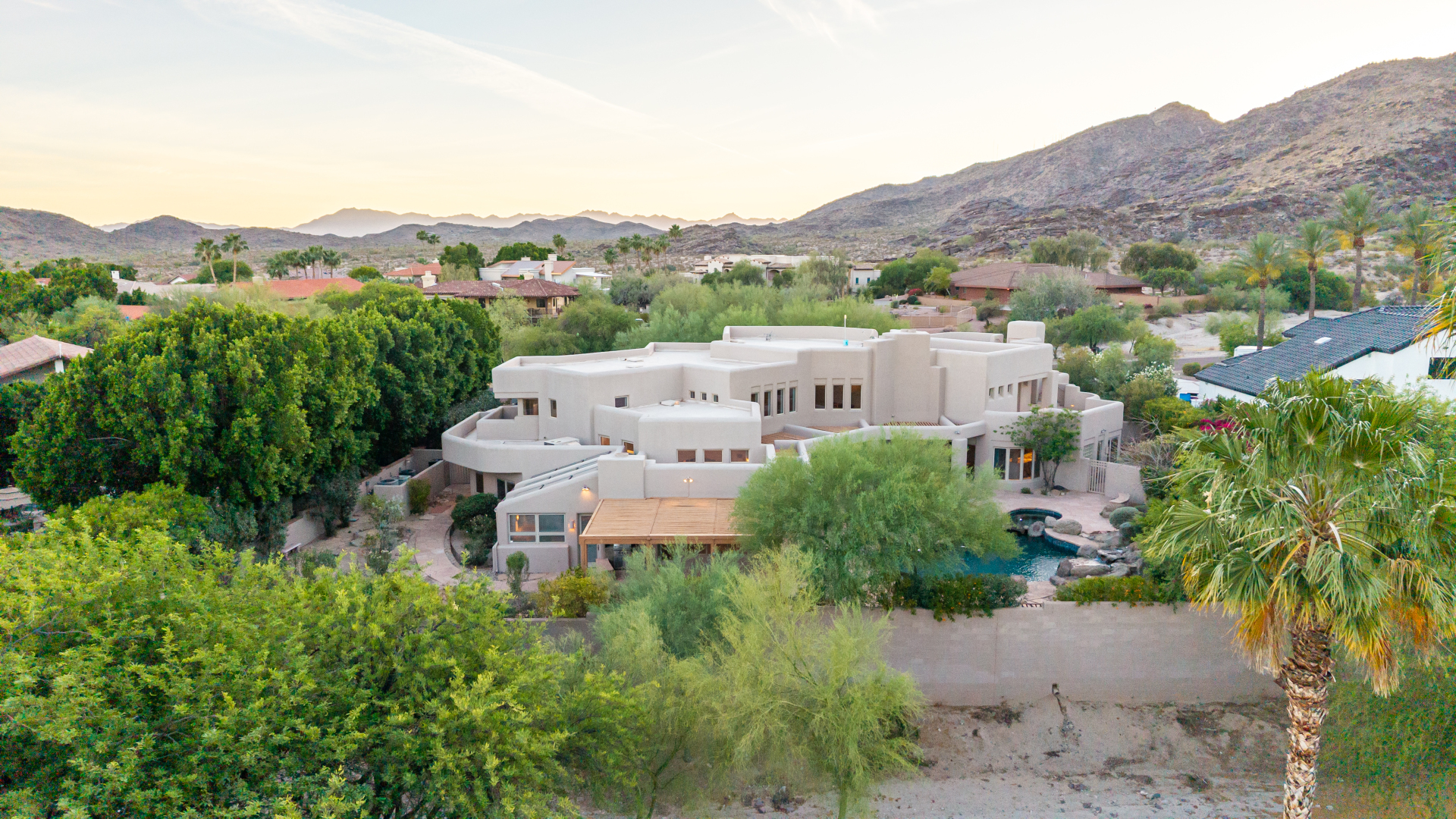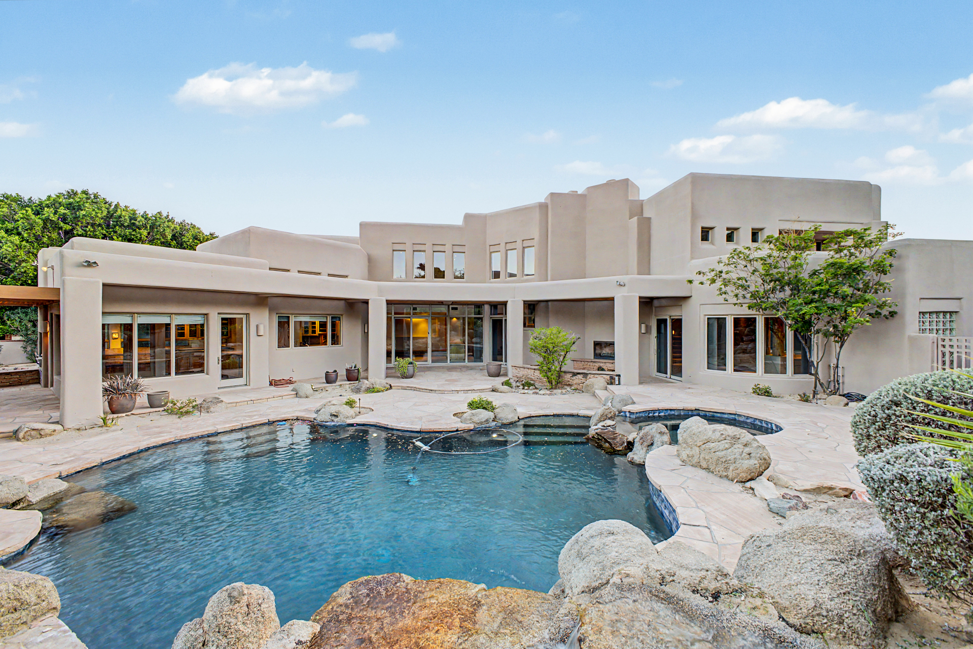 Ahwatukee Custom Estates finest and most private location on Montezuma Ct with amazing views!. This 6509 square foot home has 5 bedrooms, 3.5 bathrooms, pebble tech pool/spa, oversized 3 car garage and sits directly across from the South Mountain preserve and mountain trails. Large eat-in kitchen with 2 sinks, Sub Zero refrigerator, two wine refrigerators and large walk-in pantry. Primary bedroom is downstairs with large walk-in closet full of built-ins, its own entertainment loft with wet bar and balcony. Also, its own private patio and separate exit to resort backyard. Two more bedrooms downstairs and two upstairs. Don't forget to notice the different private patios and balcony's around the house. Tons of storage in the home and garage. Original owner who has architectural plans.