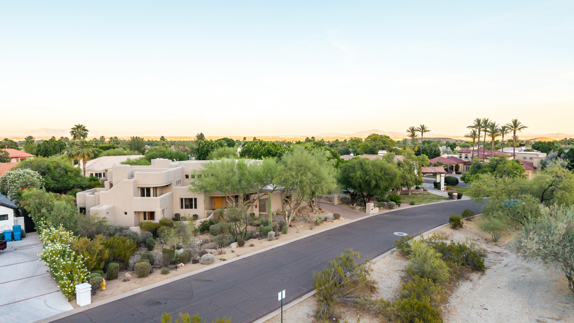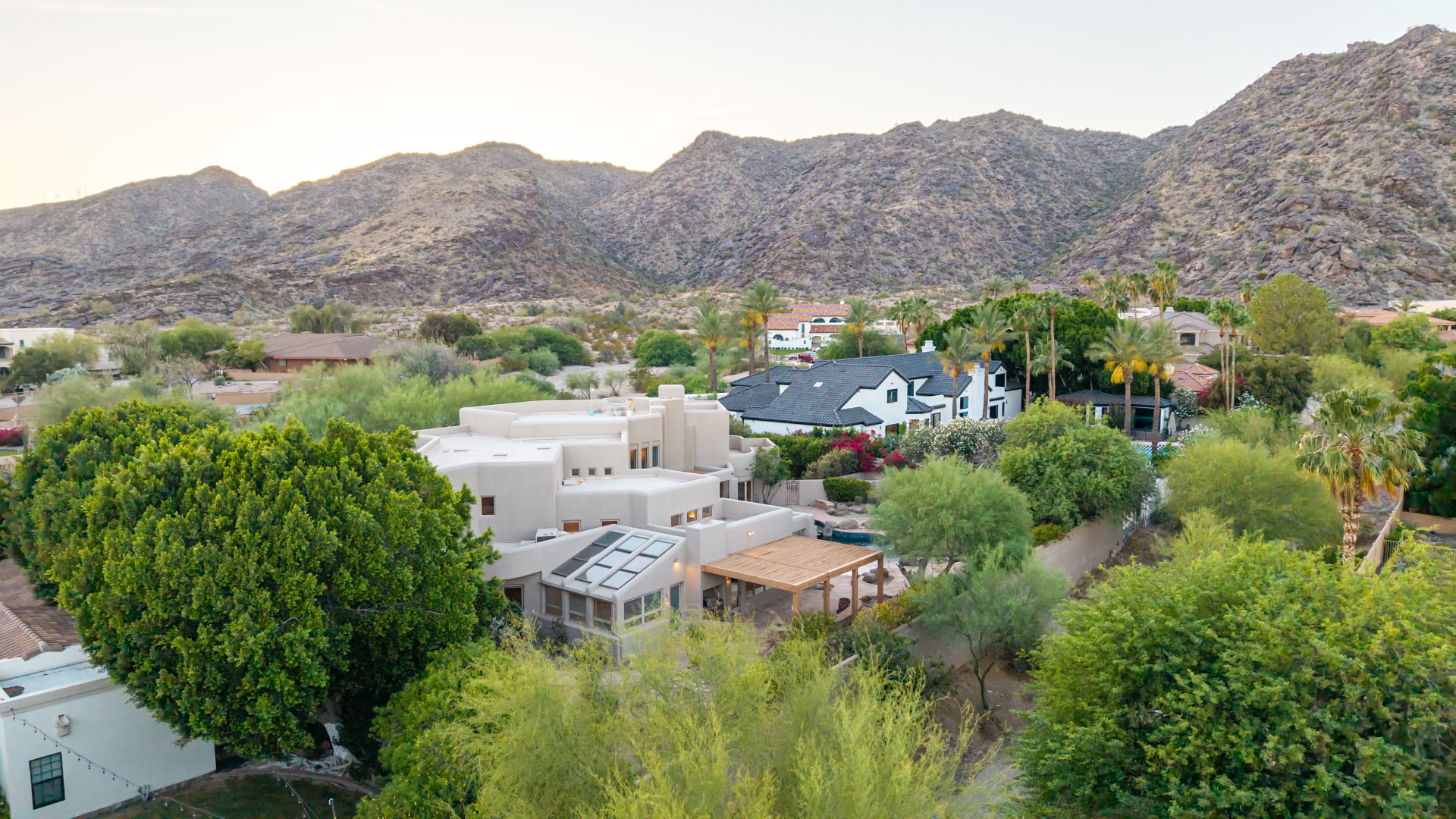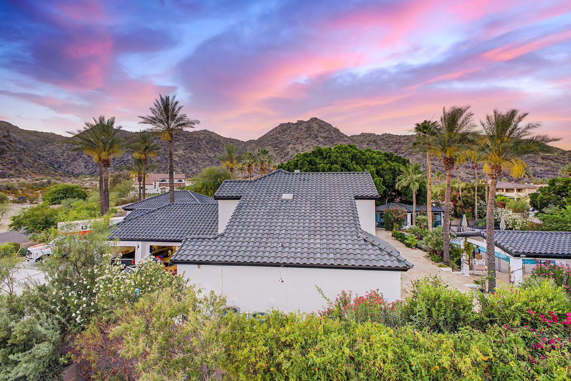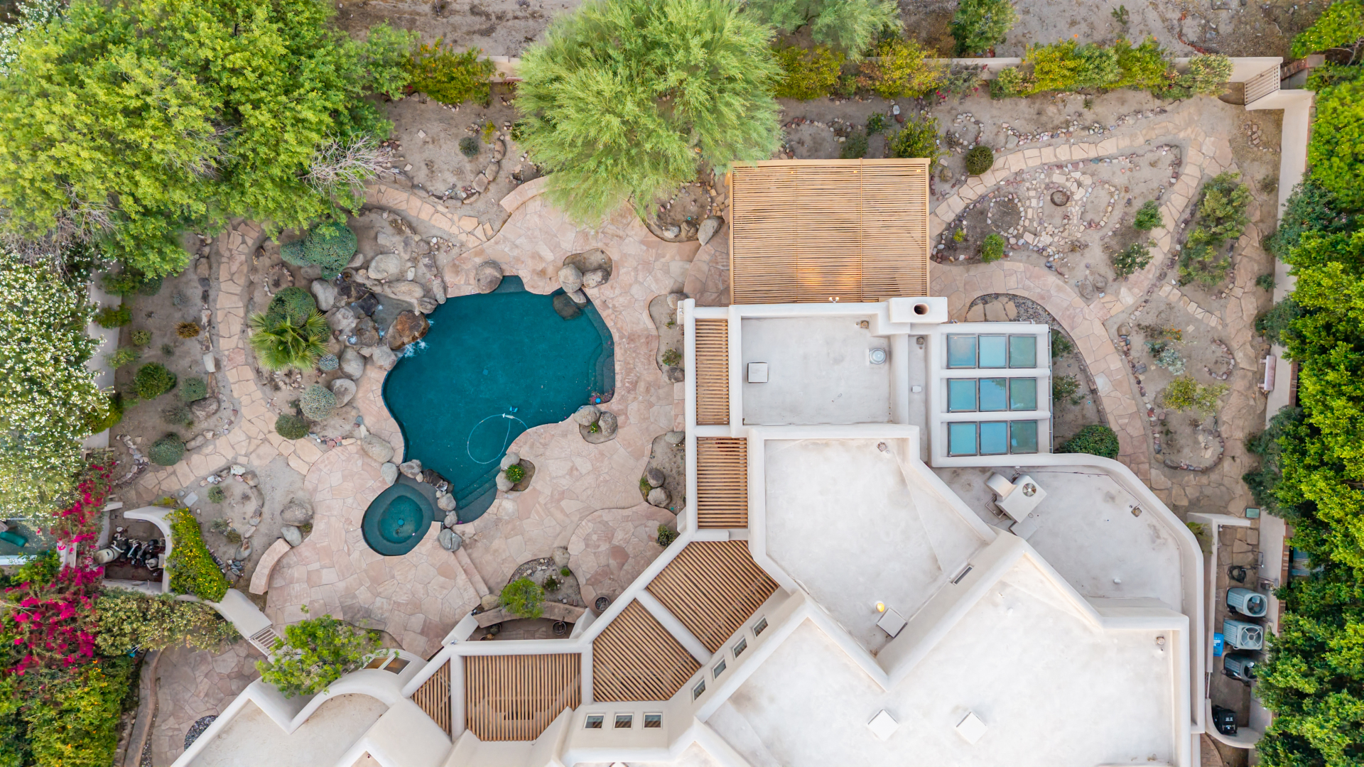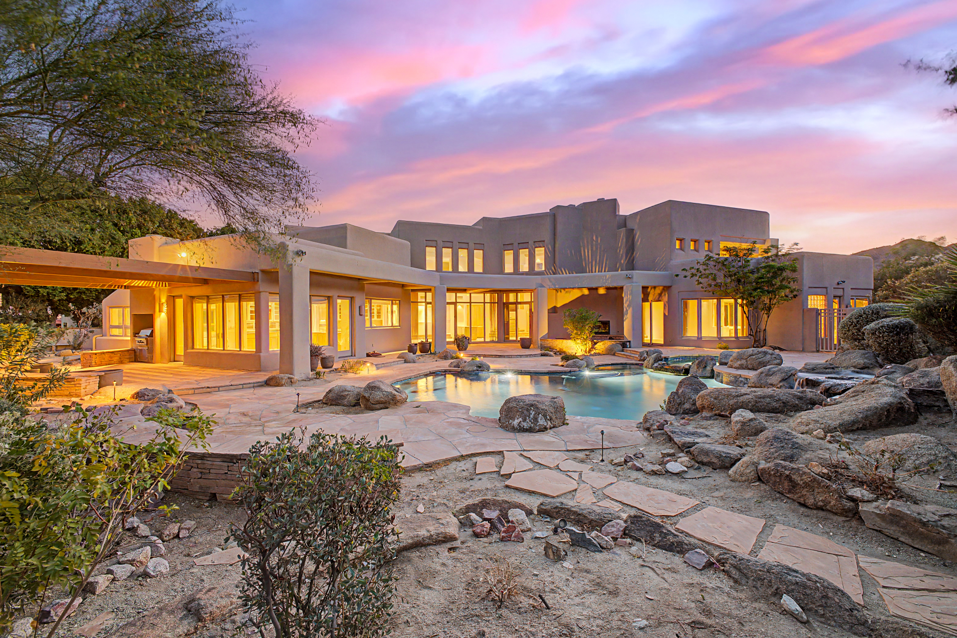 Ahwatukee Custom Estates finest and most private location on Montezuma Ct with amazing views!. This 6509 square foot home has 5 bedrooms, 3.5 bathrooms, pebble tech pool/spa, oversized 3 car garage and sits directly across from the South Mountain preserve and mountain trails. Large eat-in kitchen with 2 sinks, Sub Zero refrigerator, two wine refrigerators and large walk-in pantry. Primary bedroom is downstairs with large walk-in closet full of built-ins, its own entertainment loft with wet bar and balcony. Also, its own private patio and separate exit to resort backyard. Two more bedrooms downstairs and two upstairs. Don't forget to notice the different private patios and balcony's around the house. Tons of storage in the home and garage. Original owner who has architectural plans.