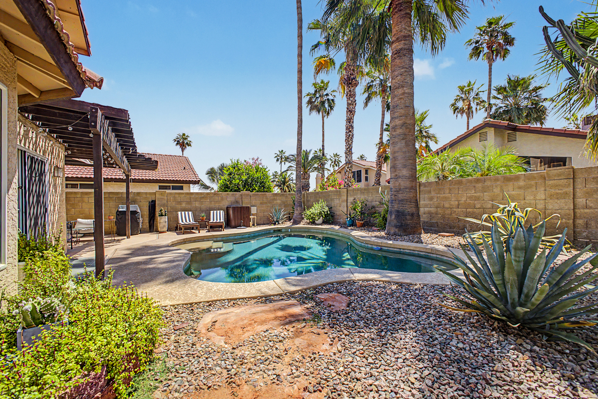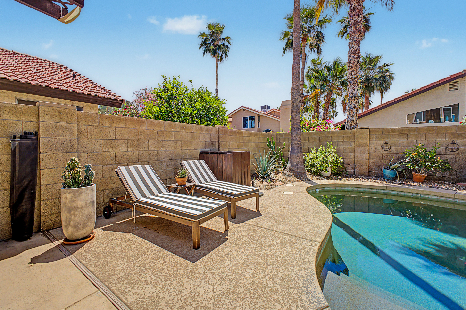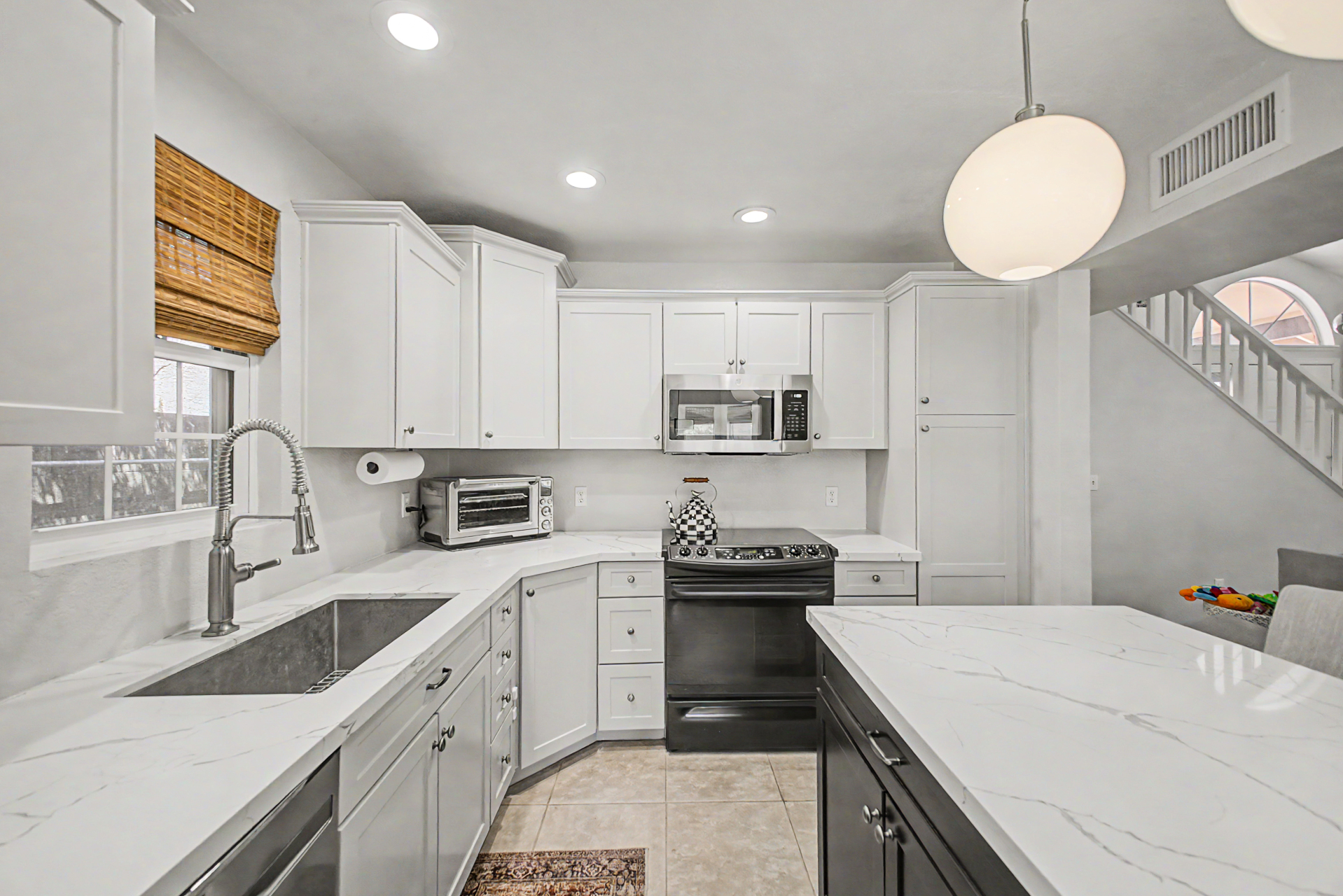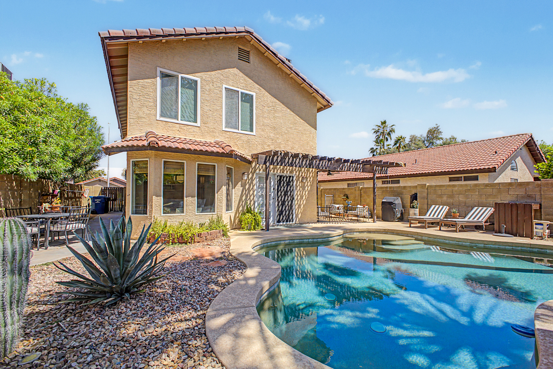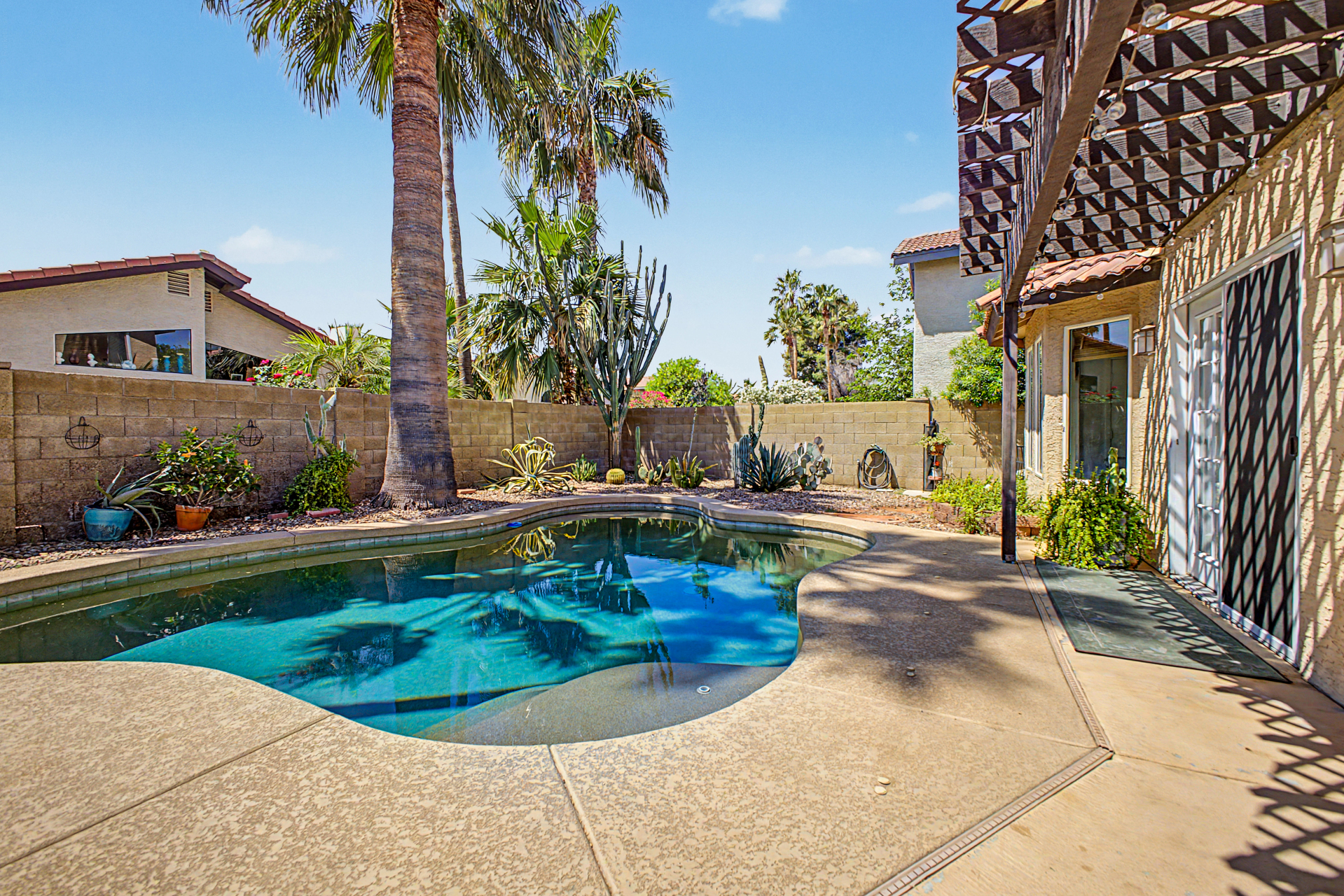 Wow! Come and see this beautifully remodeled home in an amazing location! This 3 bed/2.5 bath with a pool includes a nice remodeled eat-in kitchen with island, white cabinets, quartz counters, built-in micro, pantry and SS appliances. French doors lead to resort backyard with pebble tech diving pool. All bathrooms have been remodeled with tile showers, fixtures and soft close toilets. Don't miss the over sized primary bedroom and walk in closet! Other updates include light fixtures/dimmers, tile floors, new HVAC installed in 2023, new hot water heater 2024, new dishwasher 2023, new microwave 2026. Most windows replaced in the recent past. HOA takes care of the front yard! Community pool, parks and pickle ball! Close to all freeways, Mall and excellent schools. To show is to sell!