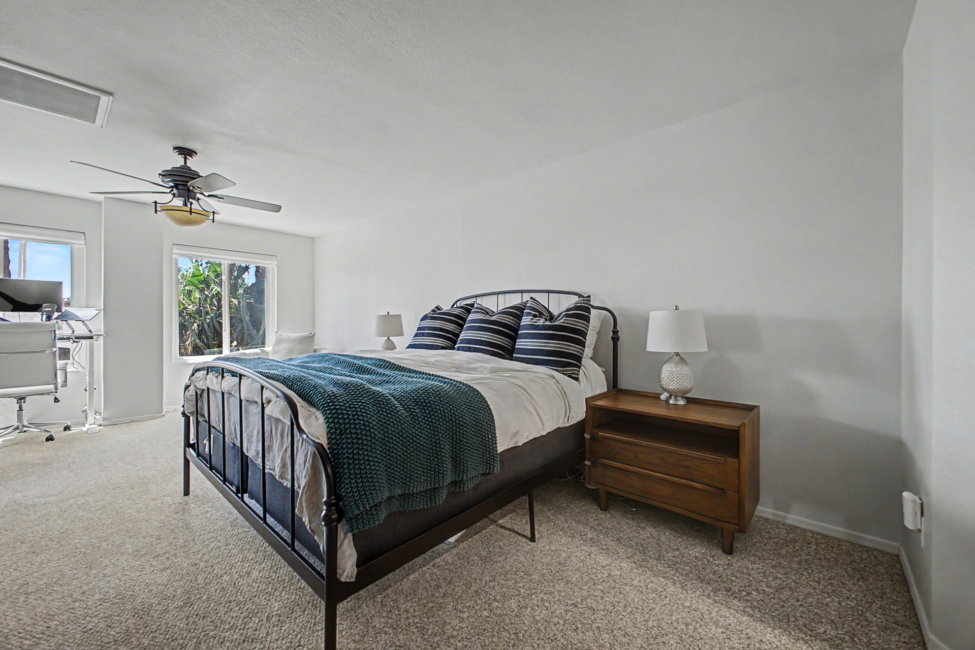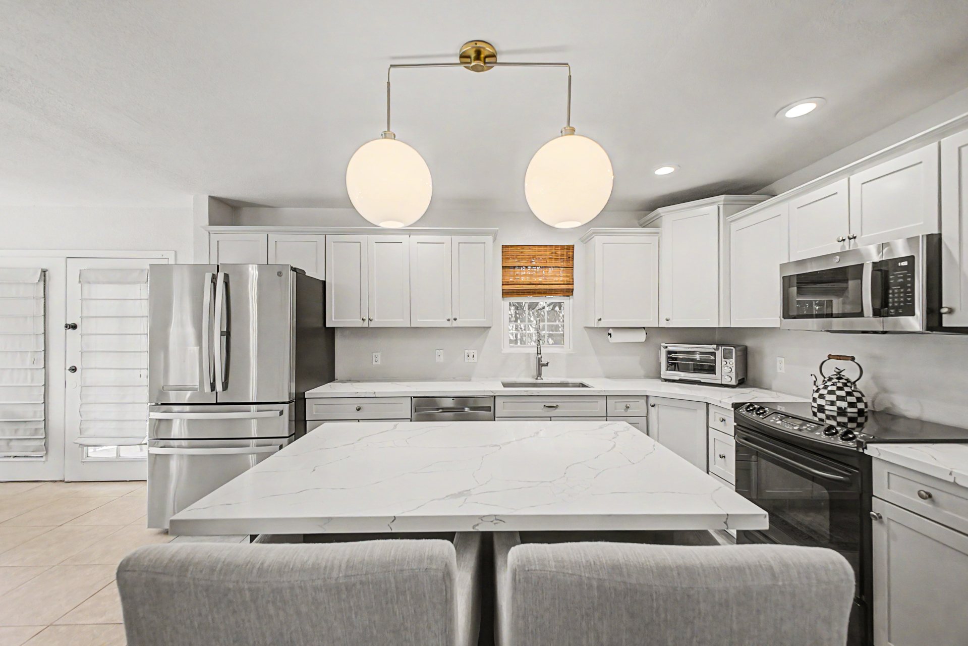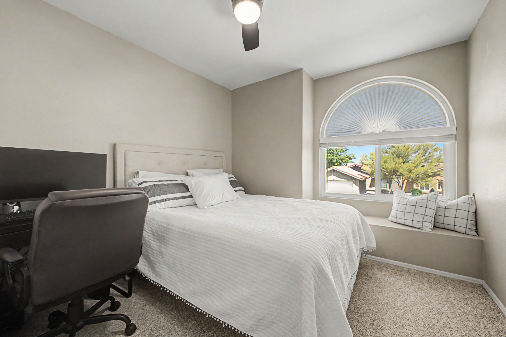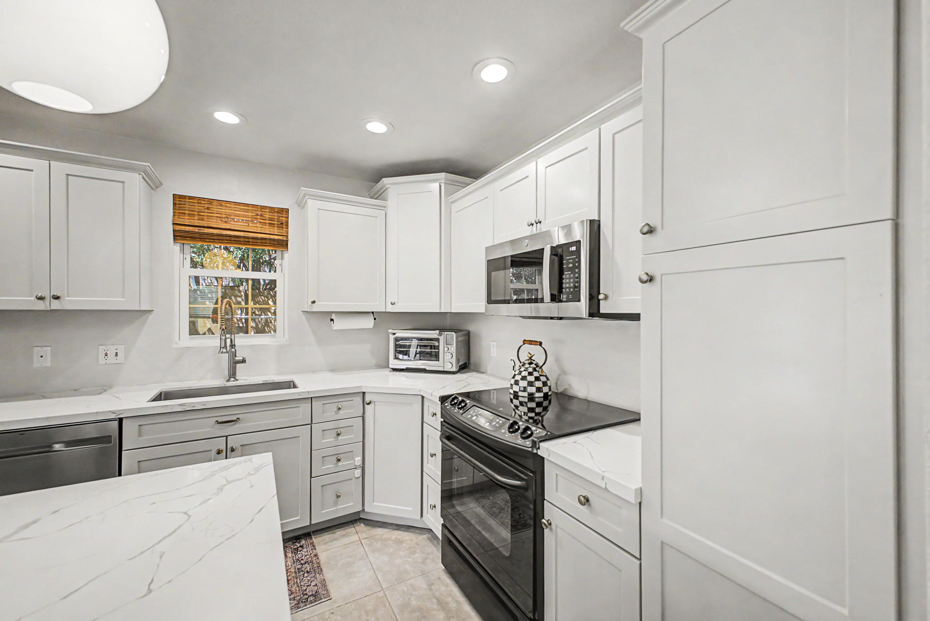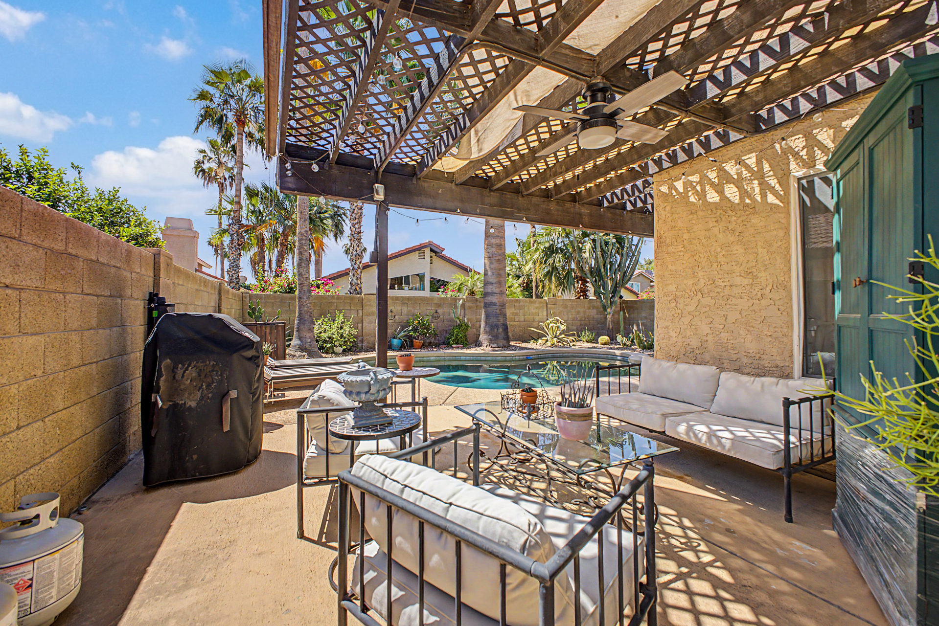 Wow! Come and see this beautifully remodeled home in an amazing location! This 3 bed/2.5 bath with a pool includes a nice remodeled eat-in kitchen with island, white cabinets, quartz counters, built-in micro, pantry and SS appliances. French doors lead to resort backyard with pebble tech diving pool. All bathrooms have been remodeled with tile showers, fixtures and soft close toilets. Don't miss the over sized primary bedroom and walk in closet! Other updates include light fixtures/dimmers, tile floors, new HVAC installed in 2023, new hot water heater 2024, new dishwasher 2023, new microwave 2026. Most windows replaced in the recent past. HOA takes care of the front yard! Community pool, parks and pickle ball! Close to all freeways, Mall and excellent schools. To show is to sell!