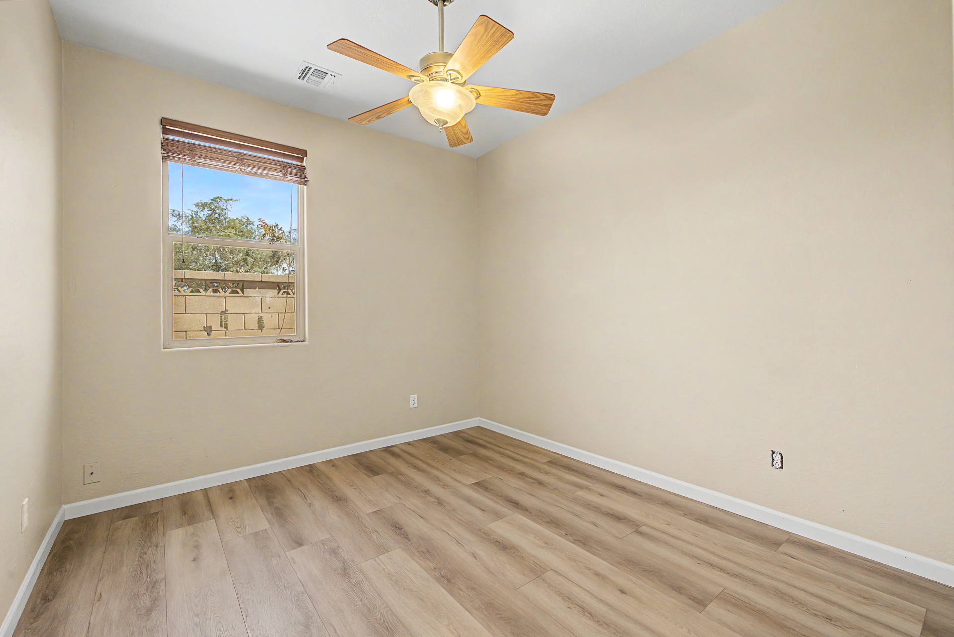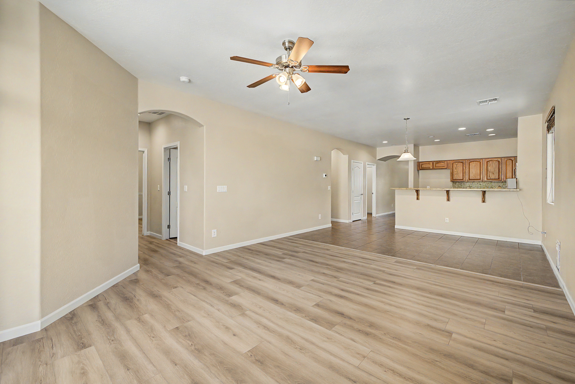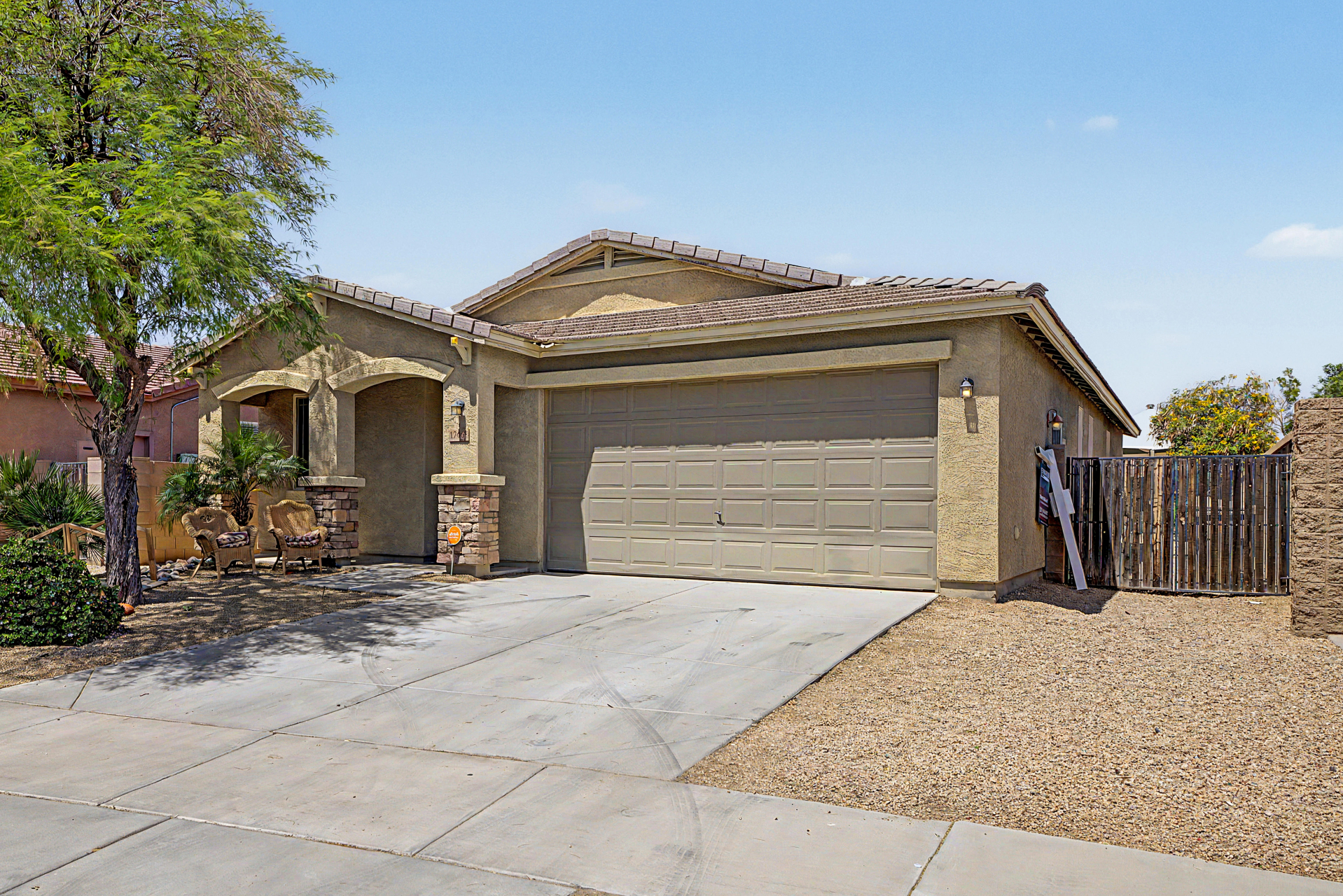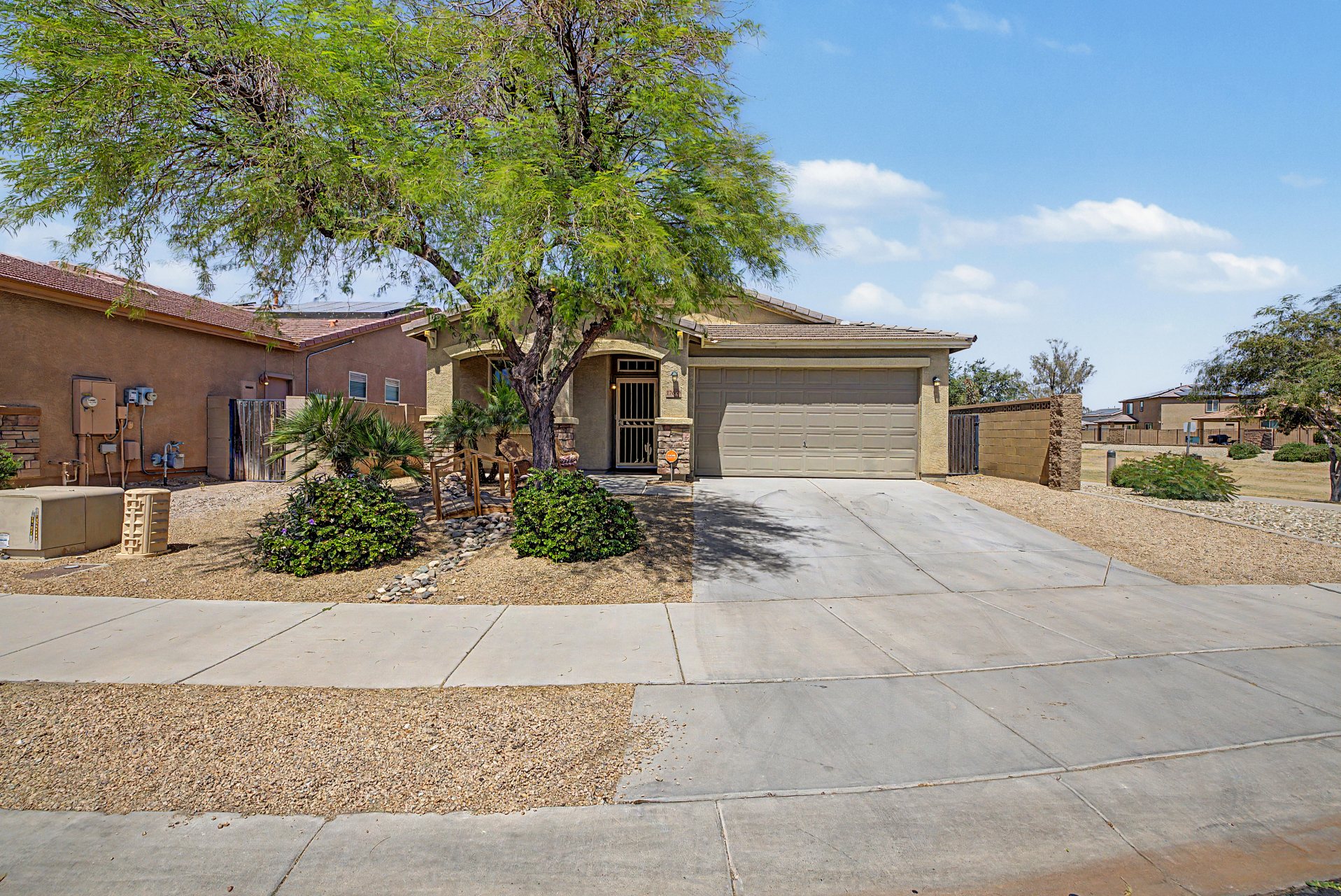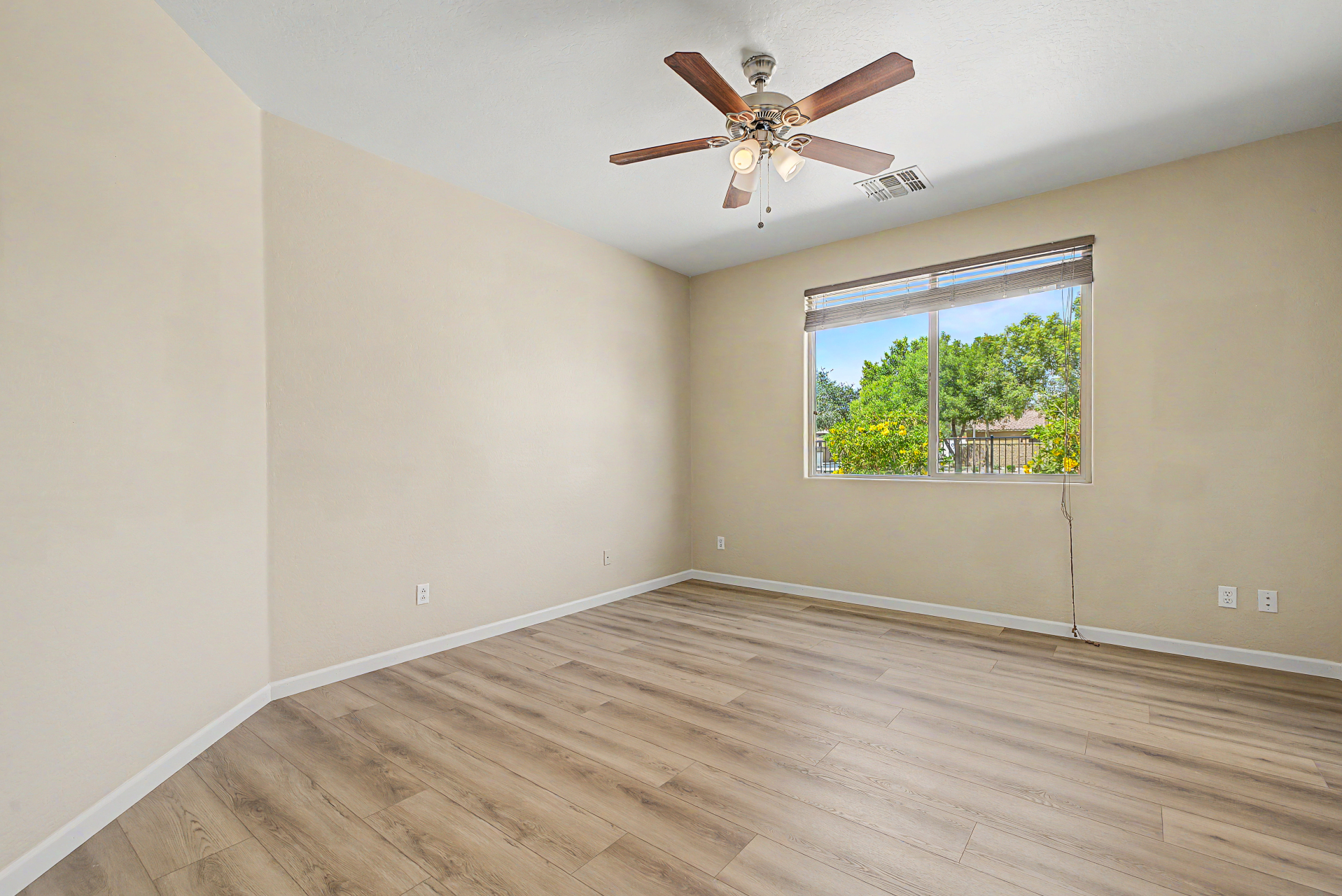 Beautifully situated on a premium corner lot, this home offers added privacy with a single-story property on the left and a greenbelt on the right. Enjoy serene outdoor living from the back patio overlooking a view fence and lush park setting. Inside, you'll find a bright and open layout featuring picture windows that bring in abundant natural light. The kitchen is well-appointed with stainless steel appliances, upgraded granite countertops, attractive cabinetry, a breakfast bar, and a pantry--perfect for both everyday living and entertaining. The home features ceramic tile flooring in the main living areas, along with recently updated laminate flooring (installed 4/2/2026) in the bedrooms and hallway. The desirable split floor plan offers privacy, with the primary suite and one secondary bedroom on one side of the home, and two additional bedrooms on the opposite side connected by a convenient Jack & Jill bathroom.