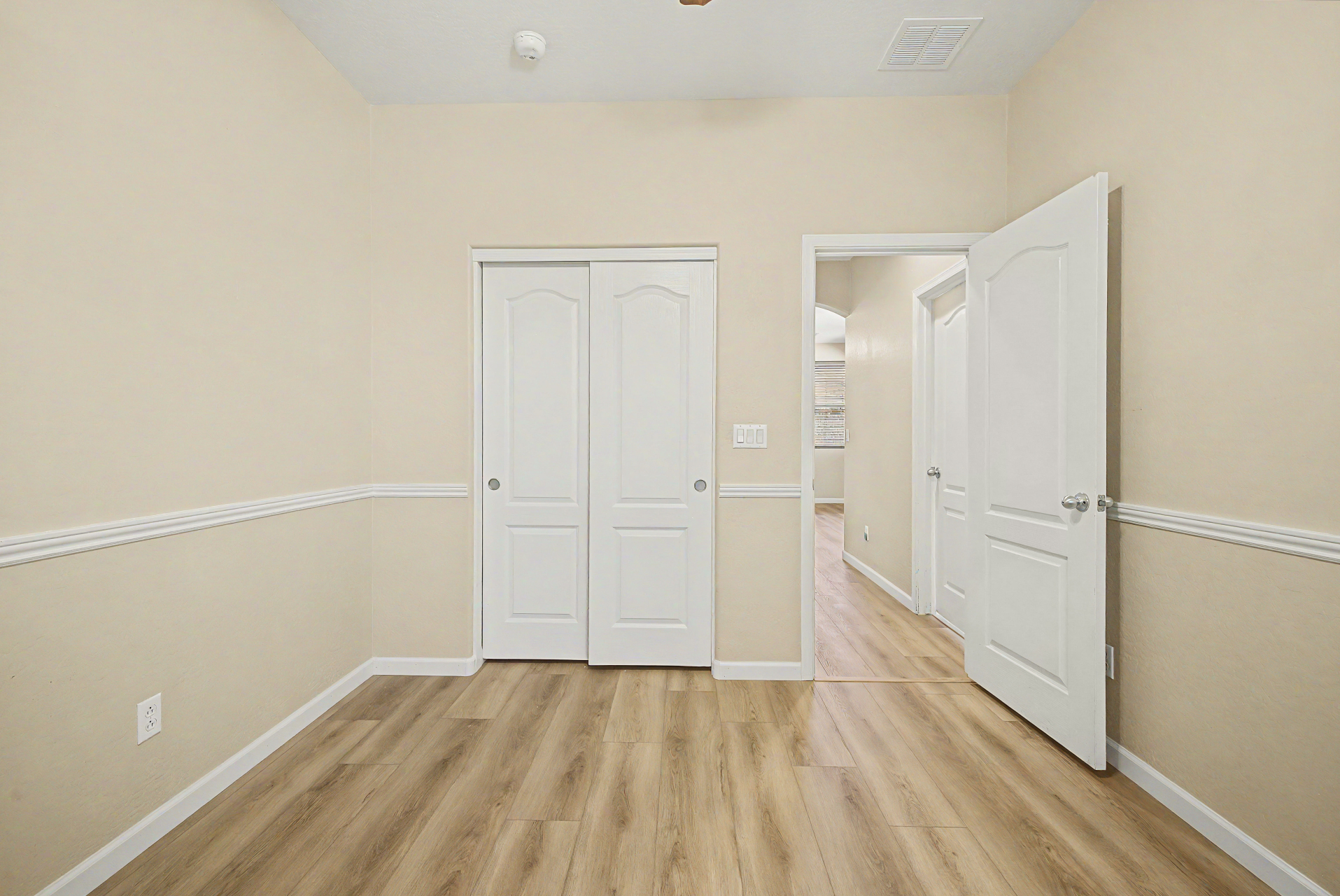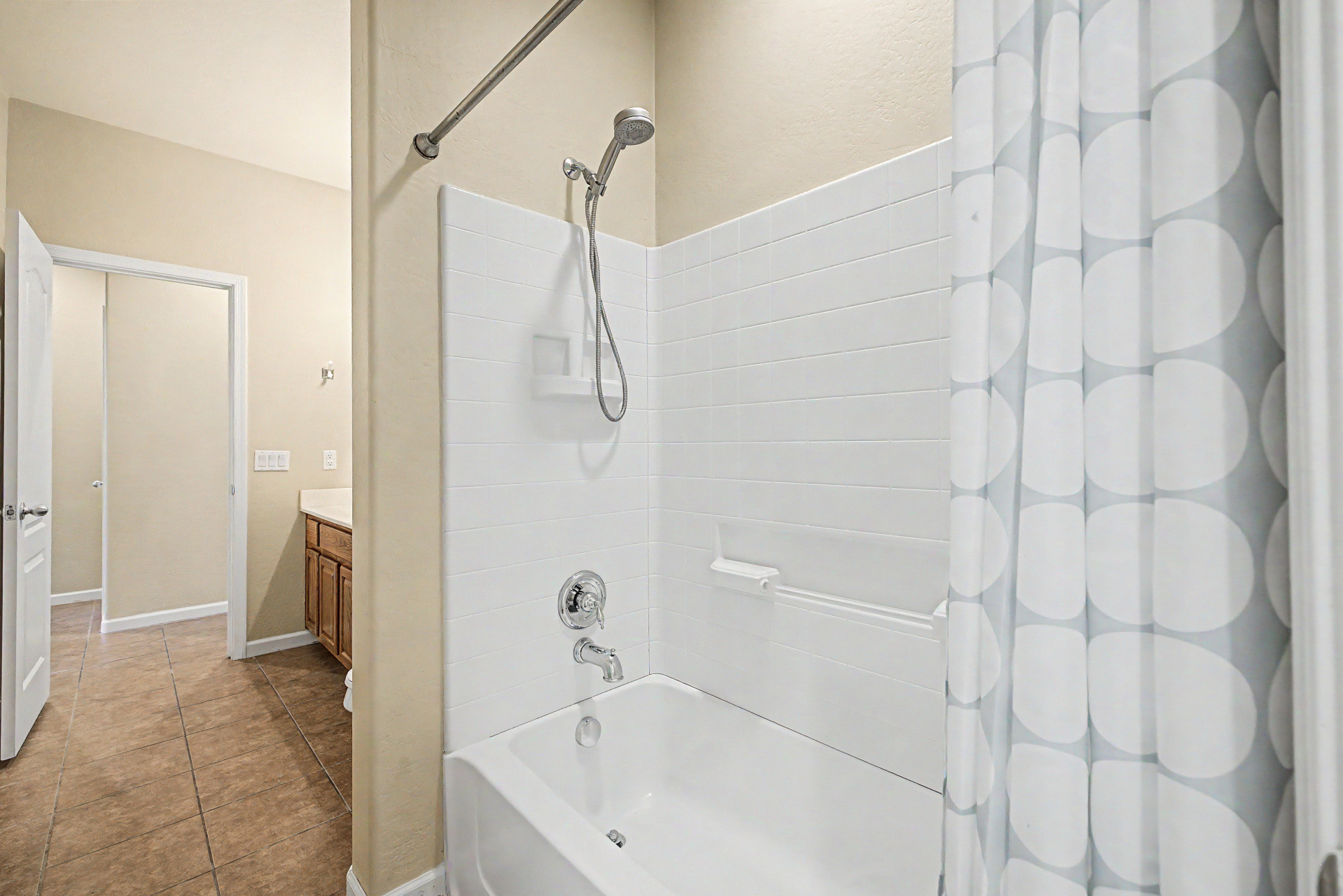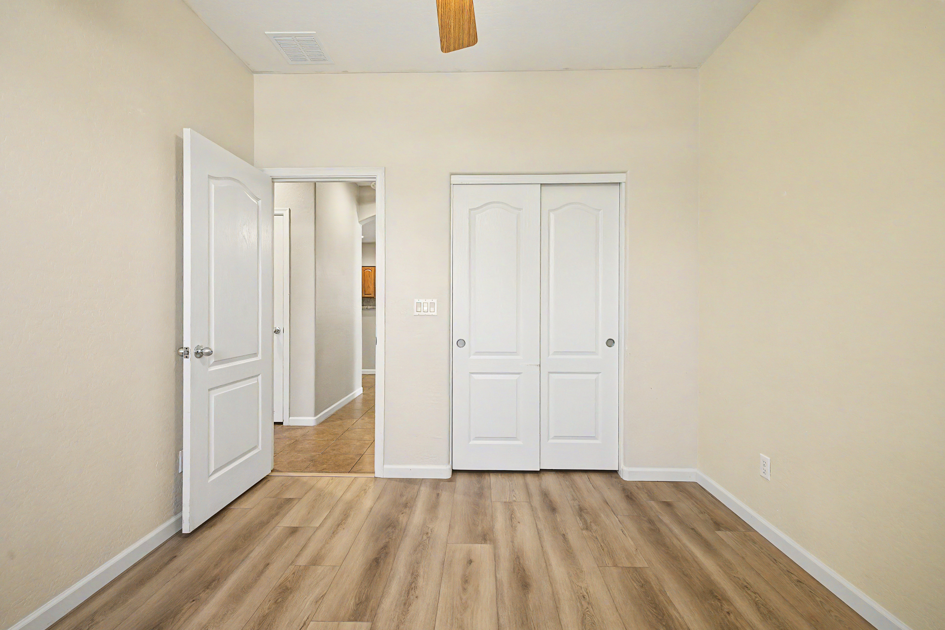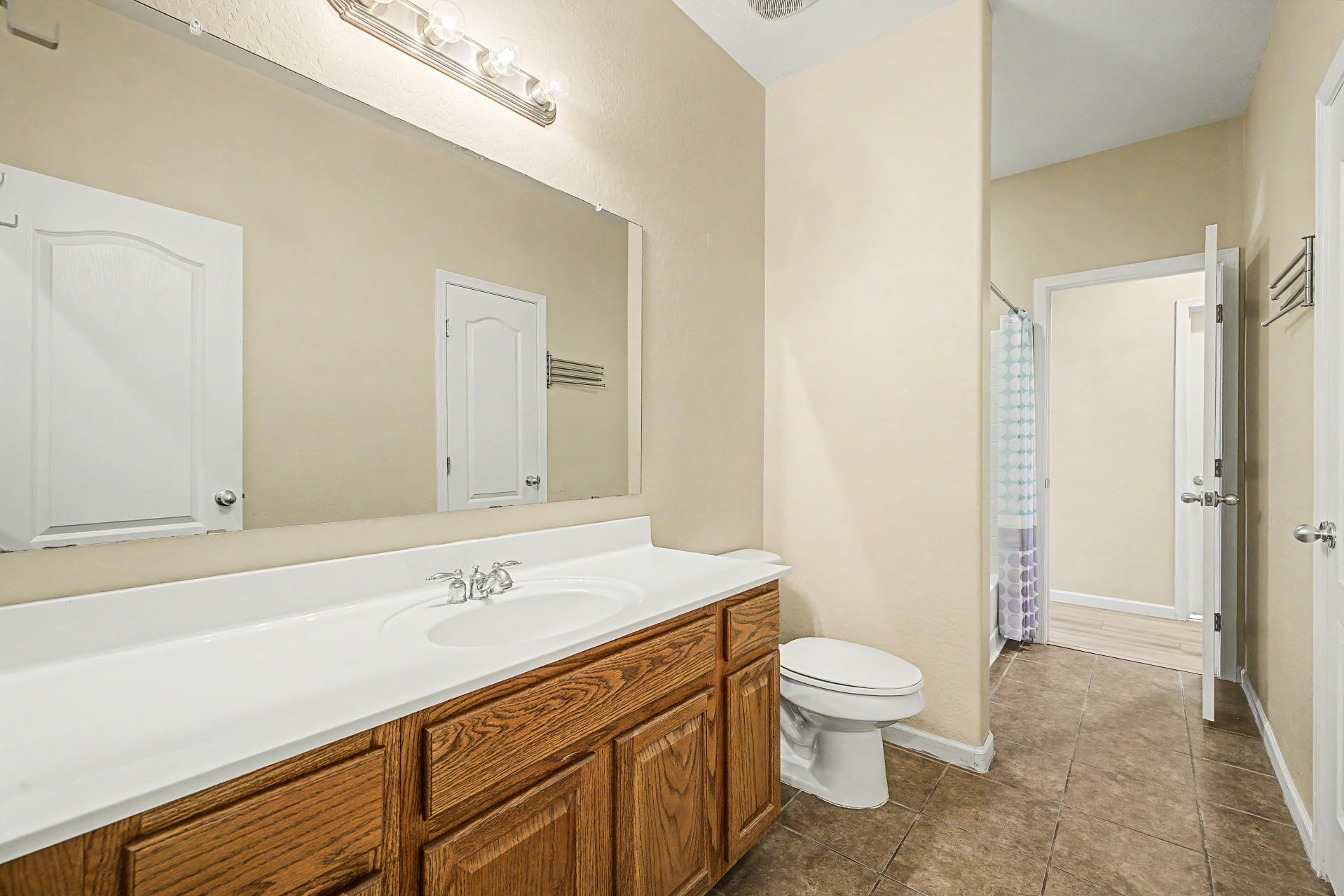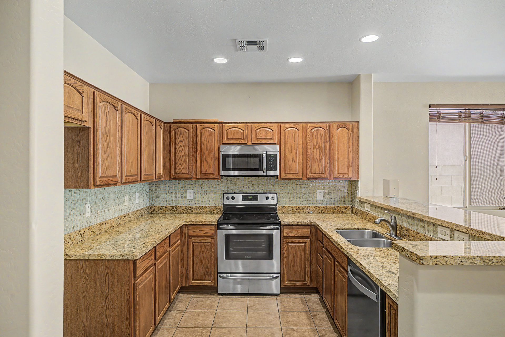 Beautifully situated on a premium corner lot, this home offers added privacy with a single-story property on the left and a greenbelt on the right. Enjoy serene outdoor living from the back patio overlooking a view fence and lush park setting. Inside, you'll find a bright and open layout featuring picture windows that bring in abundant natural light. The kitchen is well-appointed with stainless steel appliances, upgraded granite countertops, attractive cabinetry, a breakfast bar, and a pantry--perfect for both everyday living and entertaining. The home features ceramic tile flooring in the main living areas, along with recently updated laminate flooring (installed 4/2/2026) in the bedrooms and hallway. The desirable split floor plan offers privacy, with the primary suite and one secondary bedroom on one side of the home, and two additional bedrooms on the opposite side connected by a convenient Jack & Jill bathroom.