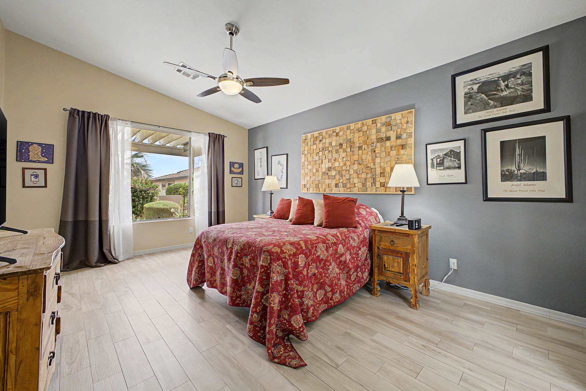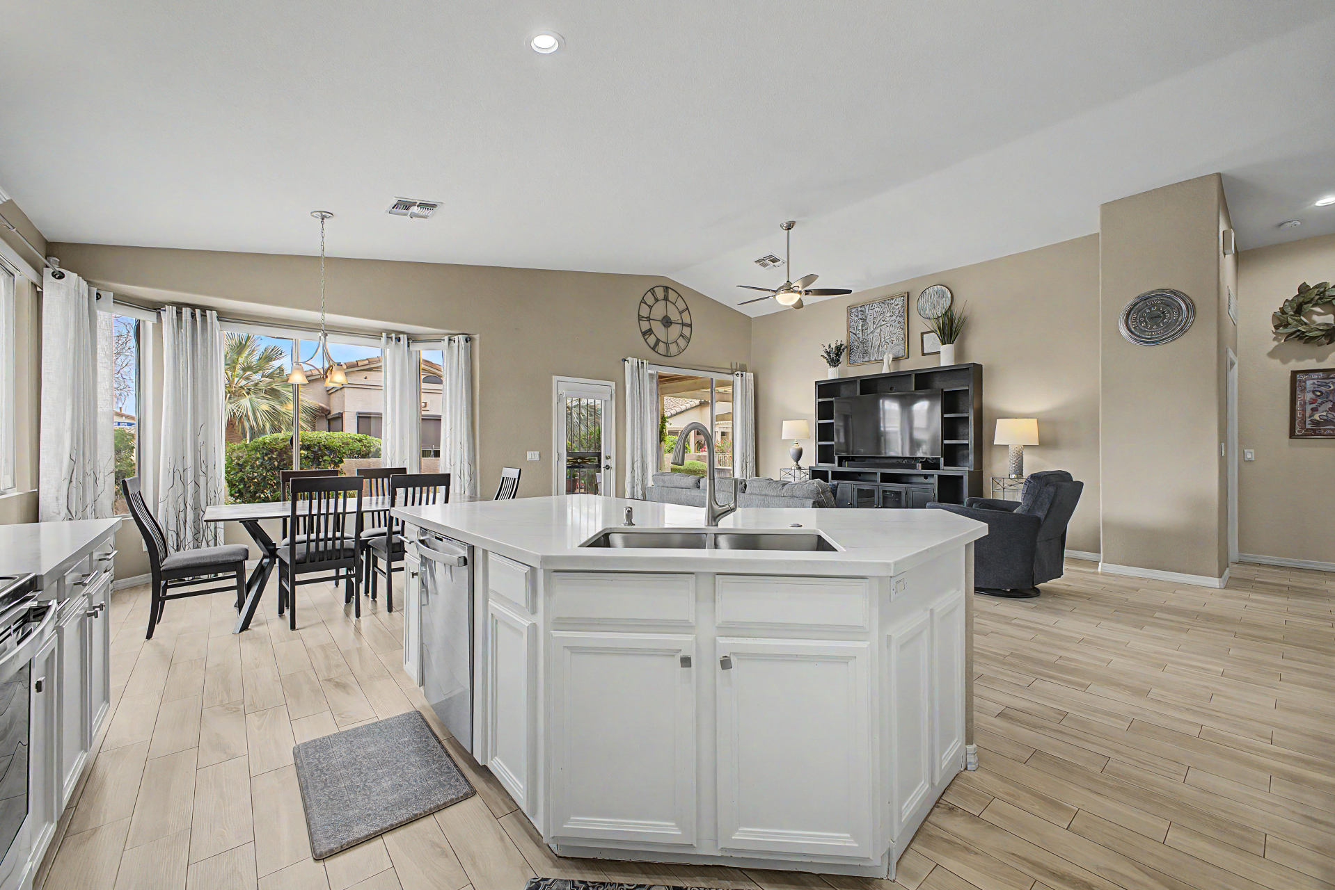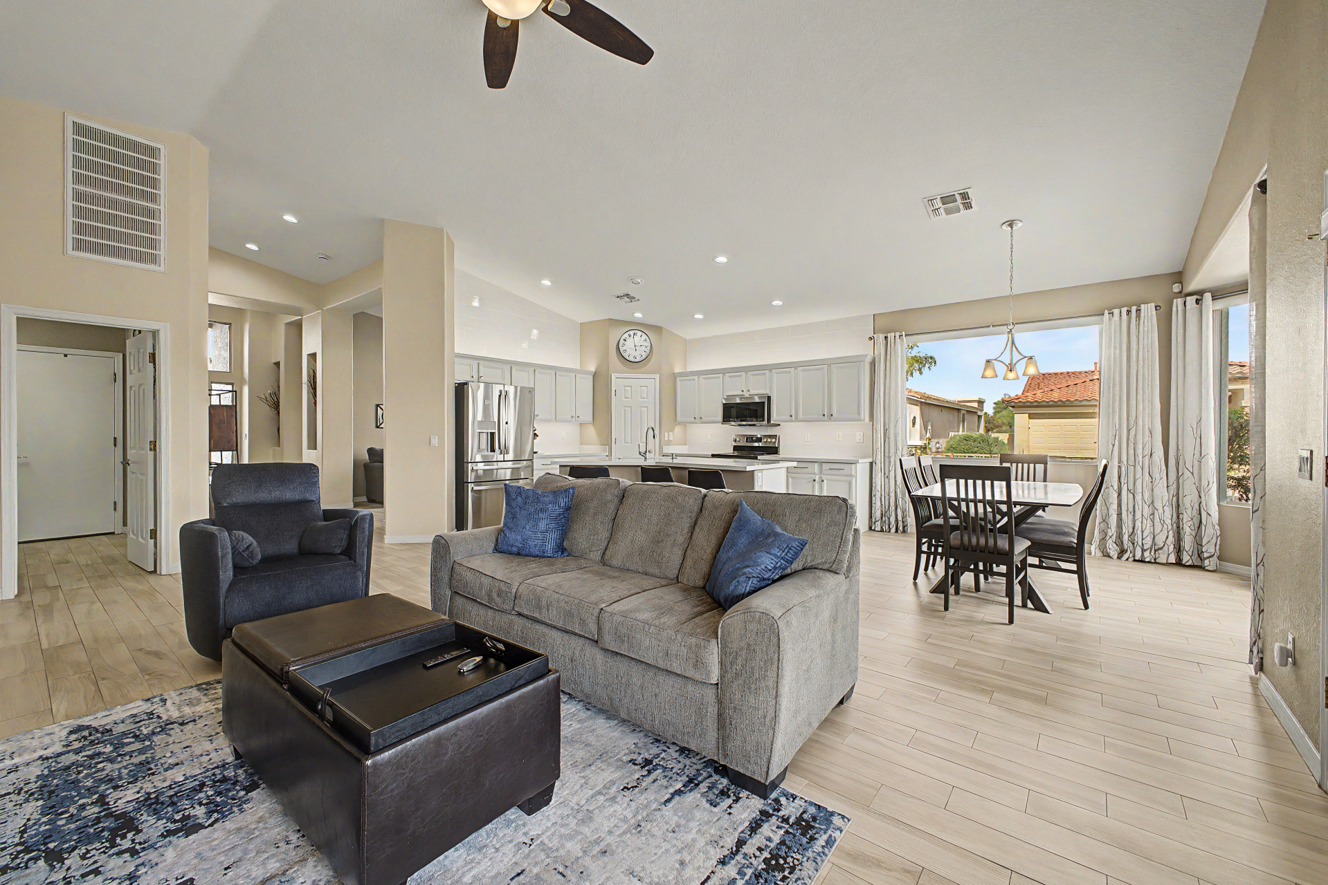 Charming single-story home in the sought-after Trilogy at Power Ranch! This gem sits on a desirable corner lot, offering 2 bedrooms plus den, 2 bathrooms, & a 2-car garage. Inside, you'll find inviting living spaces with wood-look flooring, abundant natural light, vaulted ceilings promoting an airy feel, & two-tone paint. The gourmet kitchen features plentiful storage cabinetry, tile backsplash, elegant quartz countertops, GE Profile SS appliances, & island. The den offers privacy and flexibility, working great as an office or creative area. Enjoy a good night's rest in the main retreat, a bathroom with dual sinks & separate shower/tub. Out back, you'll have a cozy covered patio with pavers, perfect for morning coffee, & ample seating space with a serene landscape Furnishing are negotiable.