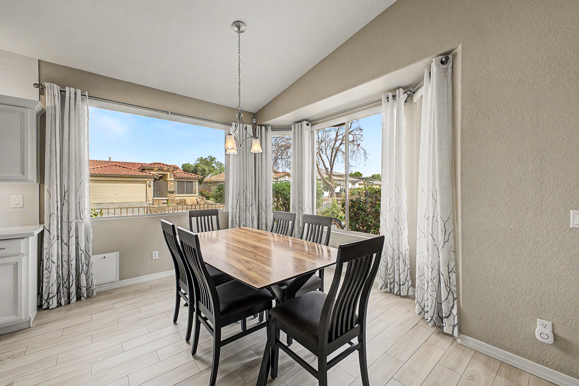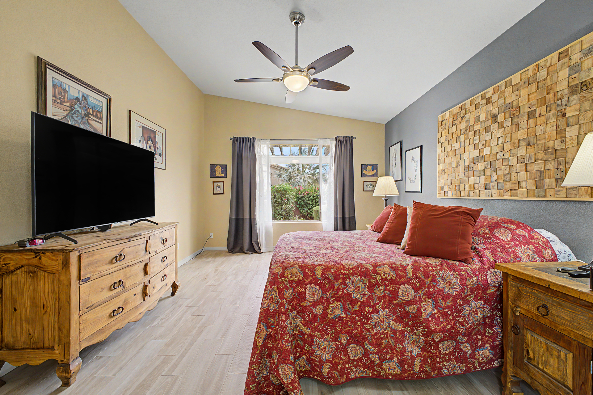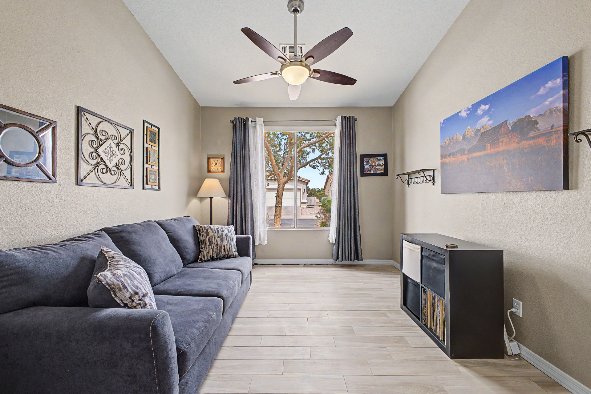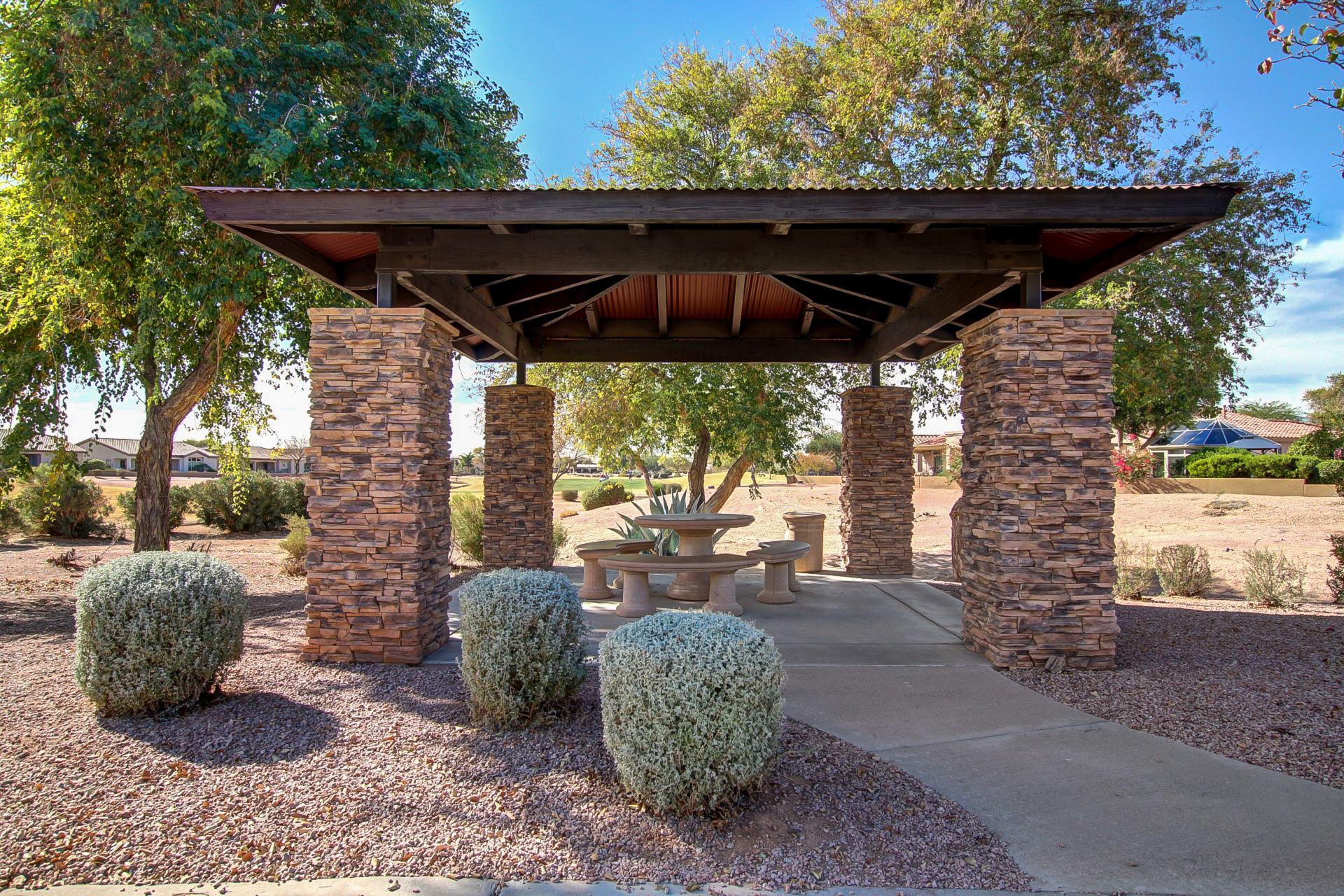 Charming single-story home in the sought-after Trilogy at Power Ranch! This gem sits on a desirable corner lot, offering 2 bedrooms plus den, 2 bathrooms, & a 2-car garage. Inside, you'll find inviting living spaces with wood-look flooring, abundant natural light, vaulted ceilings promoting an airy feel, & two-tone paint. The gourmet kitchen features plentiful storage cabinetry, tile backsplash, elegant quartz countertops, GE Profile SS appliances, & island. The den offers privacy and flexibility, working great as an office or creative area. Enjoy a good night's rest in the main retreat, a bathroom with dual sinks & separate shower/tub. Out back, you'll have a cozy covered patio with pavers, perfect for morning coffee, & ample seating space with a serene landscape Furnishing are negotiable.