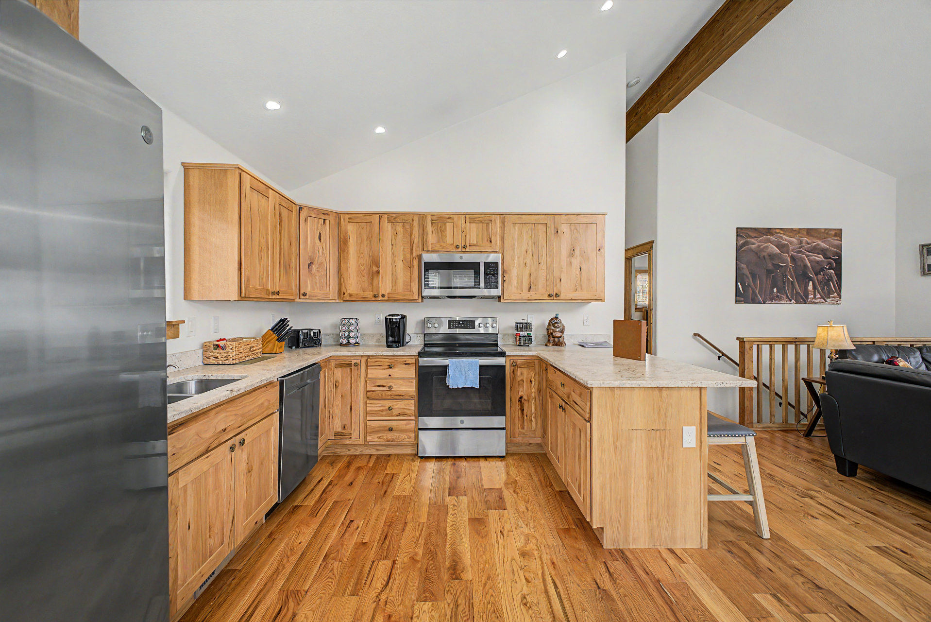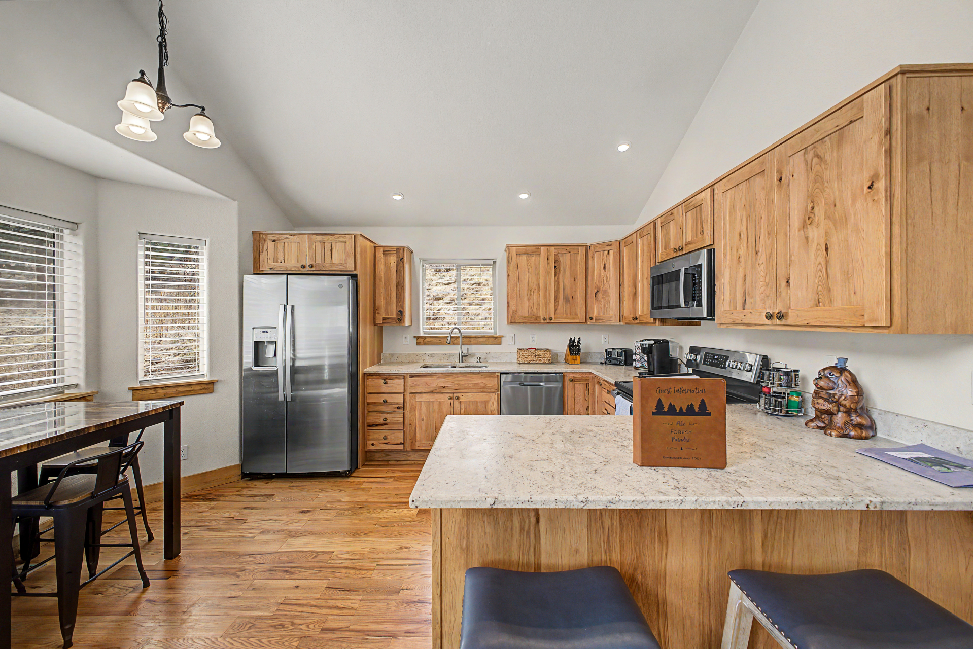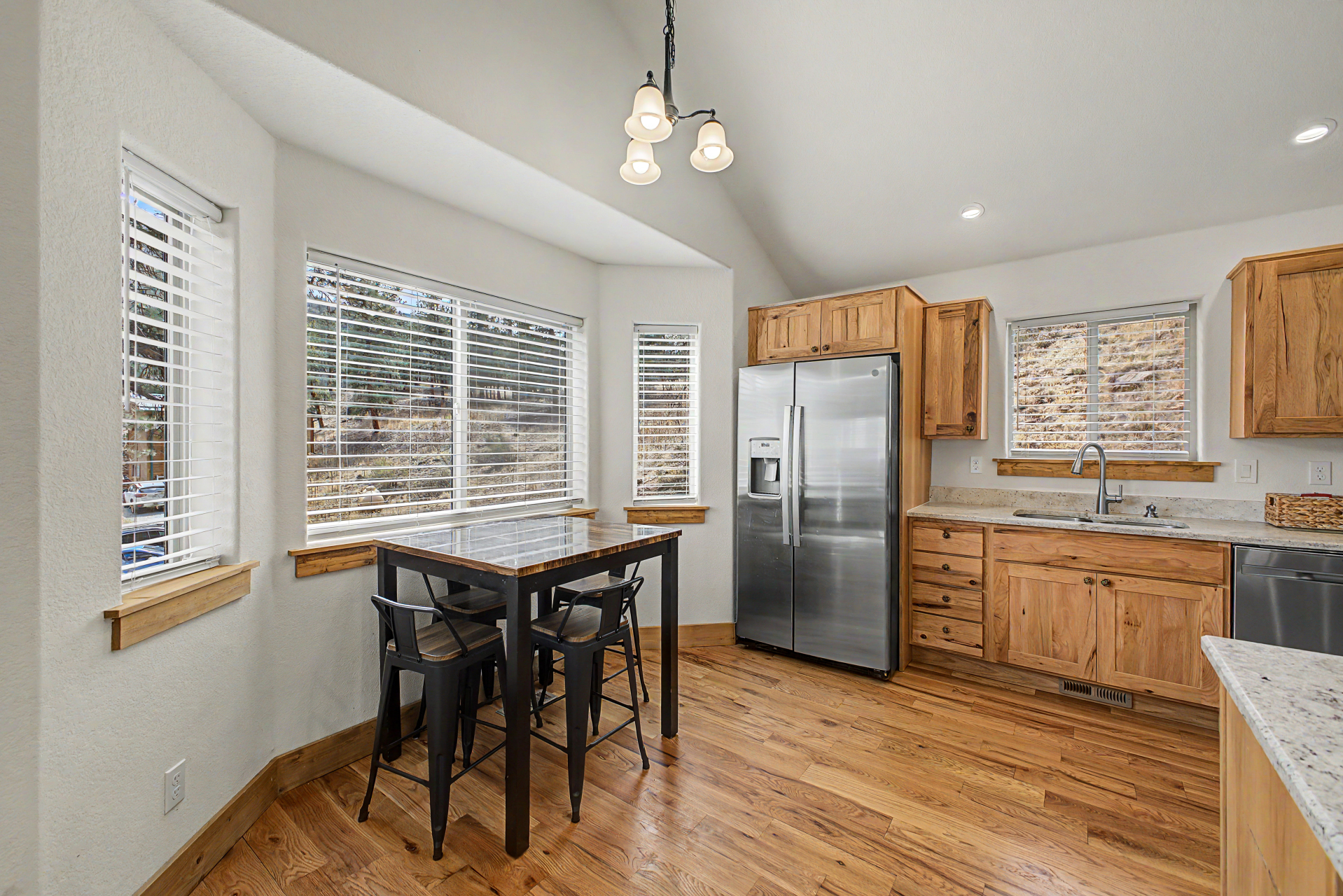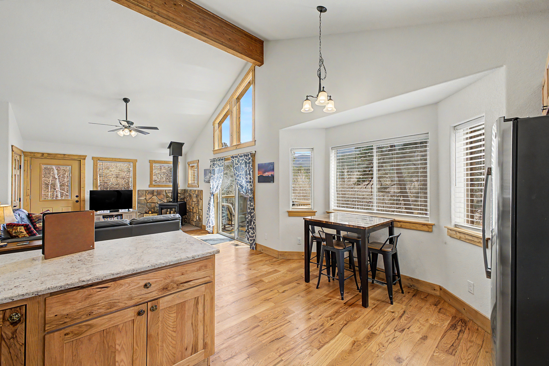 Check out this beautiful 3 bed, 2 bath property now for sale in Singleton Estates! Nestled on an oversized 1 acre lot w/fantastic mountain, it's sure to be the home for you! Come inside to discover a spacious open concept featuring vaulted ceilings w/exposed beams, wood-look flooring neutral palette throughout, and a wood-burning stove to keep you warm during the cold winter months. The eat-in kitchen comes equipped w/ample cabinetry, granite counters, recessed lighting, stainless steel appliances, a peninsula w/a breakfast bar, and a breakfast nook by the dining area. Cozy bedrooms w/soft carpet promise you and your loved ones a good night's sleep! Let's not forget about the large basement family room w/walk out access. Also including a lovely deck where you can sit back and enjoy a quiet evening surrounded by the nature, this home is a true gem! Act now before it's gone!